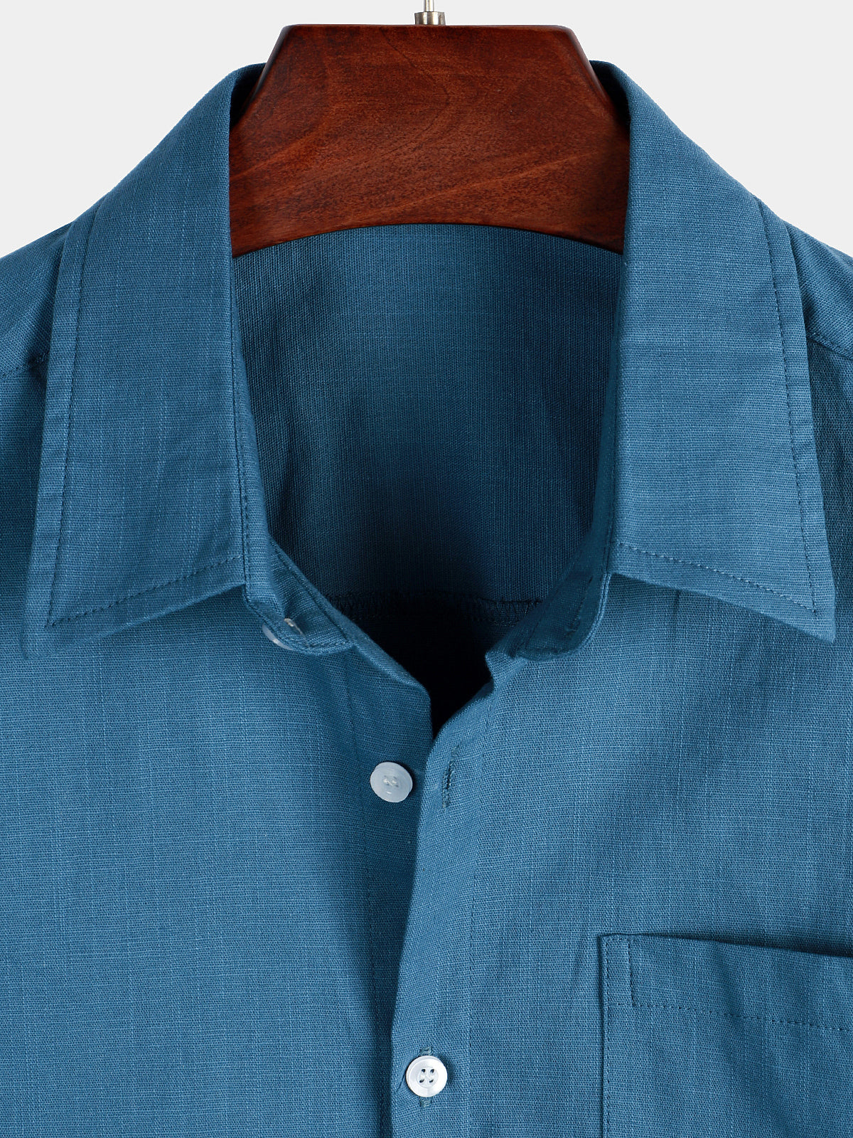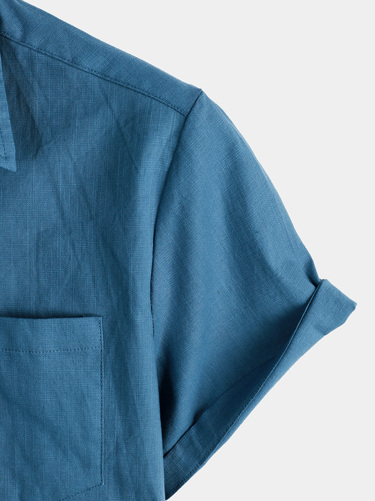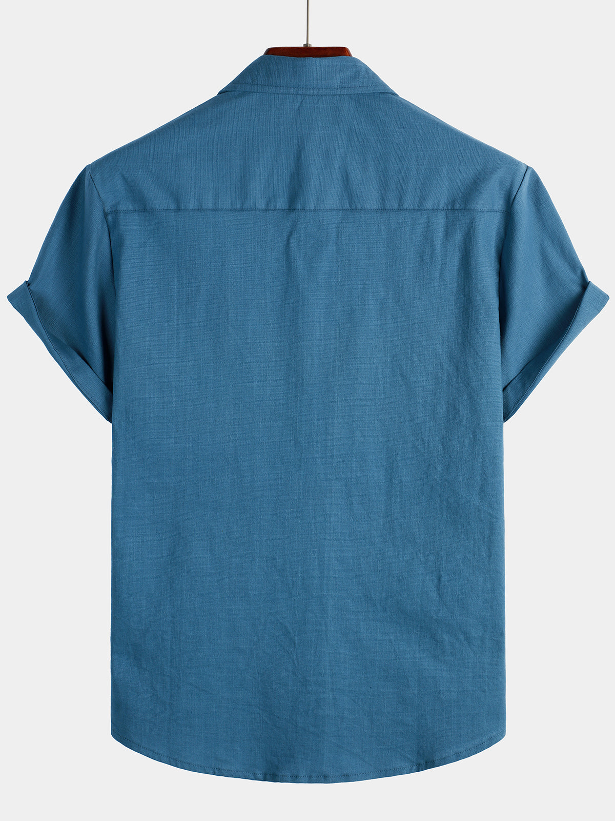 Herren Lässiges Kurzarmhemd mit Leinen Baumwolle Navy Blau