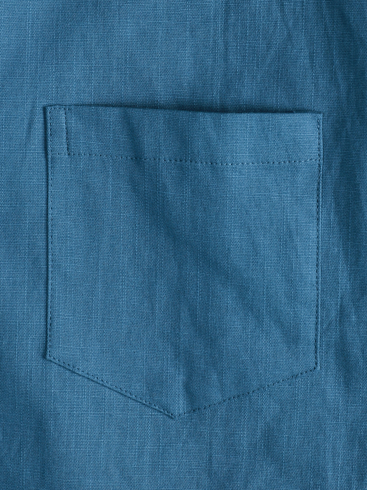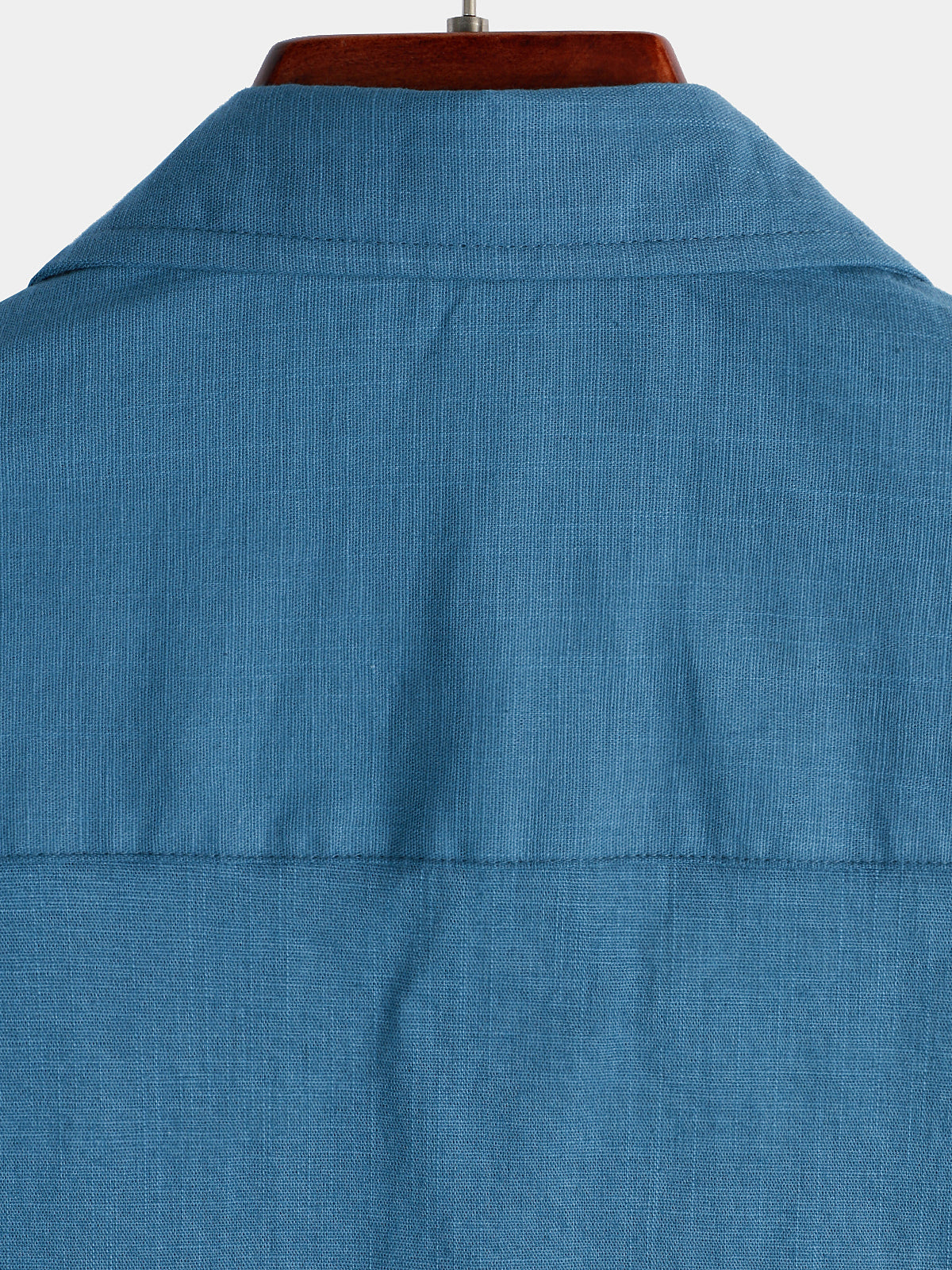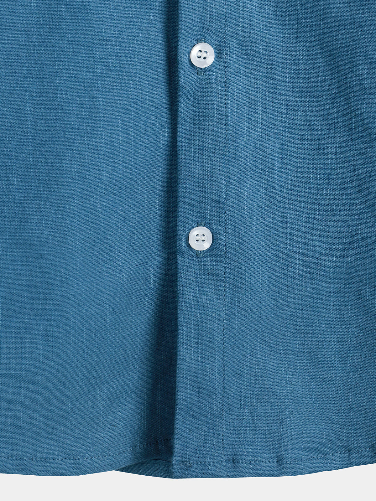 Herren Lässiges Kurzarmhemd mit Leinen Baumwolle Navy Blau