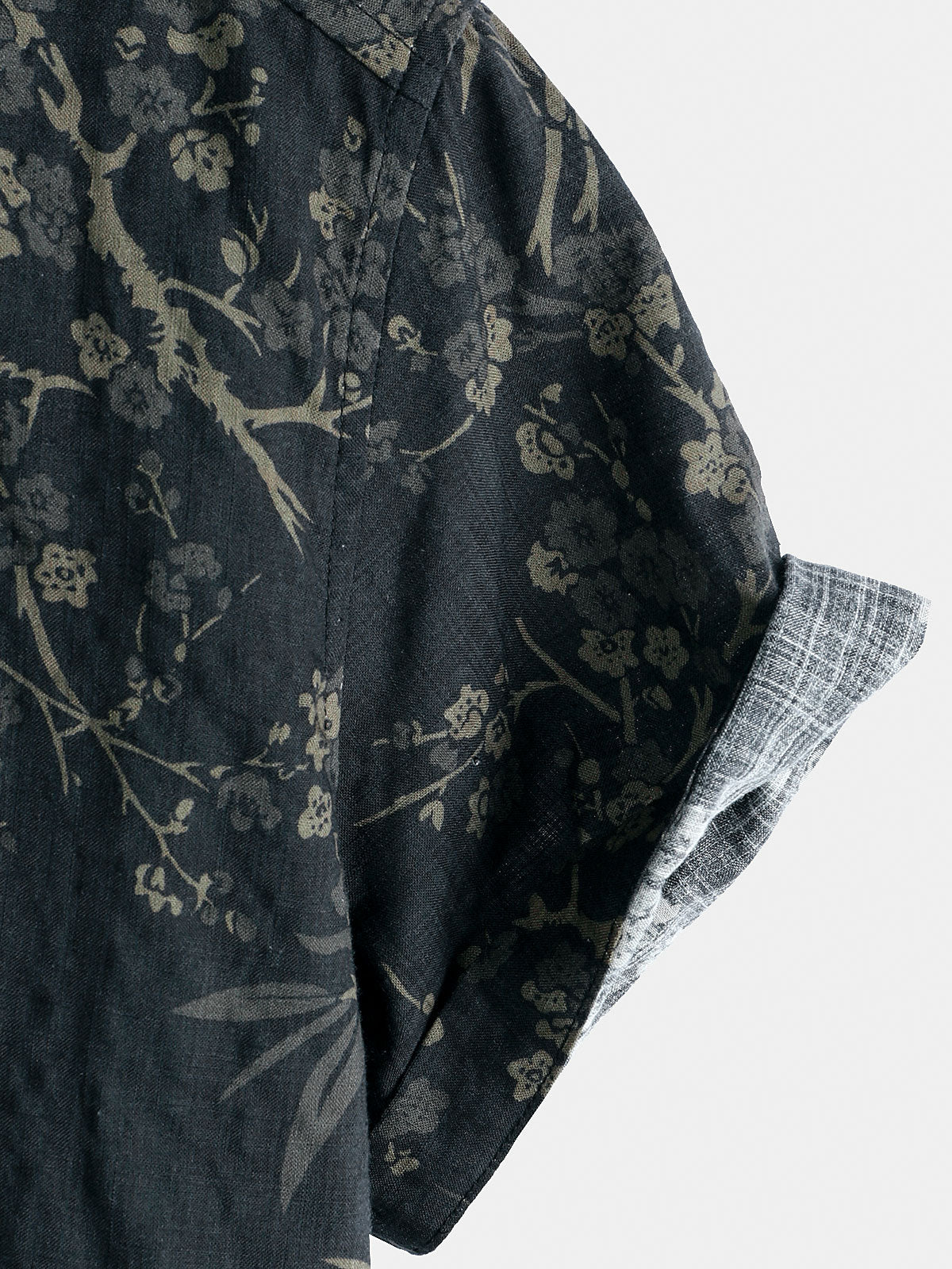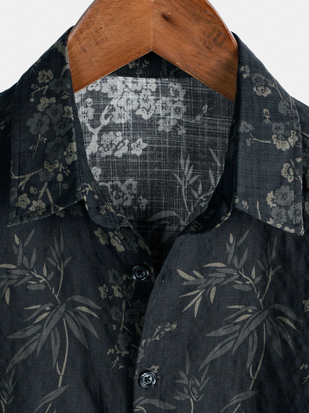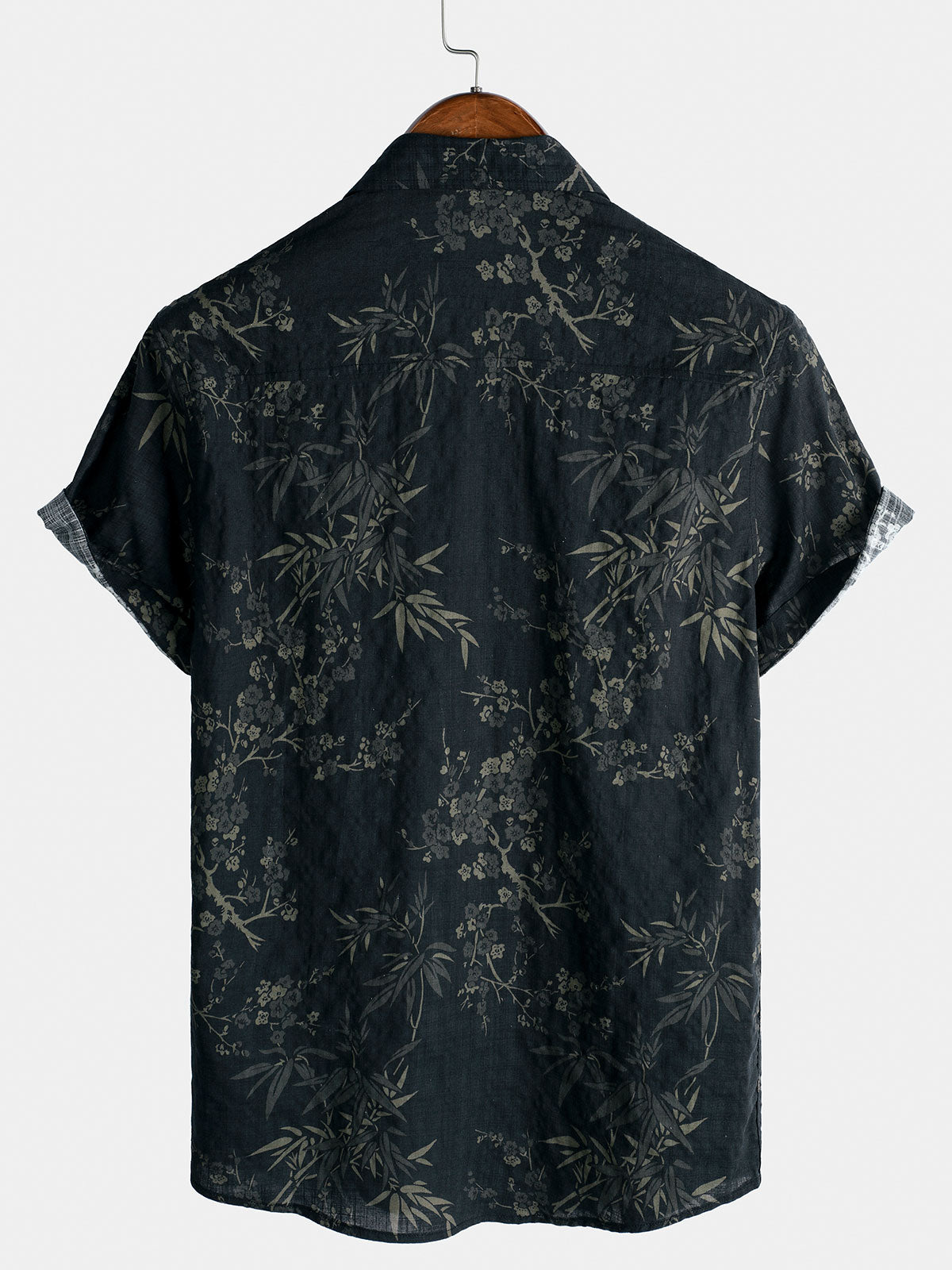 Herren Lässiges Kurzarmhemd aus Baumwolle Schwarz