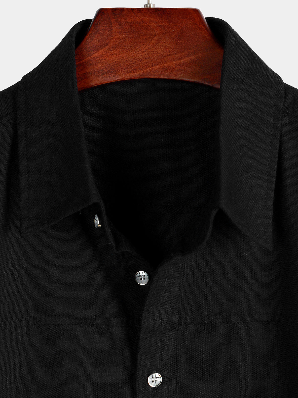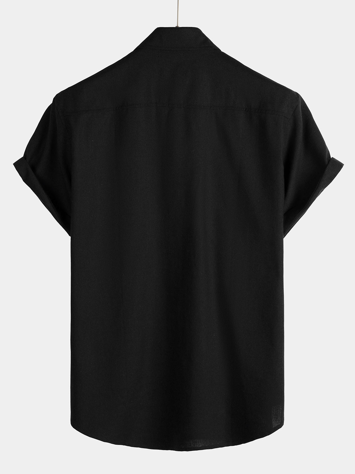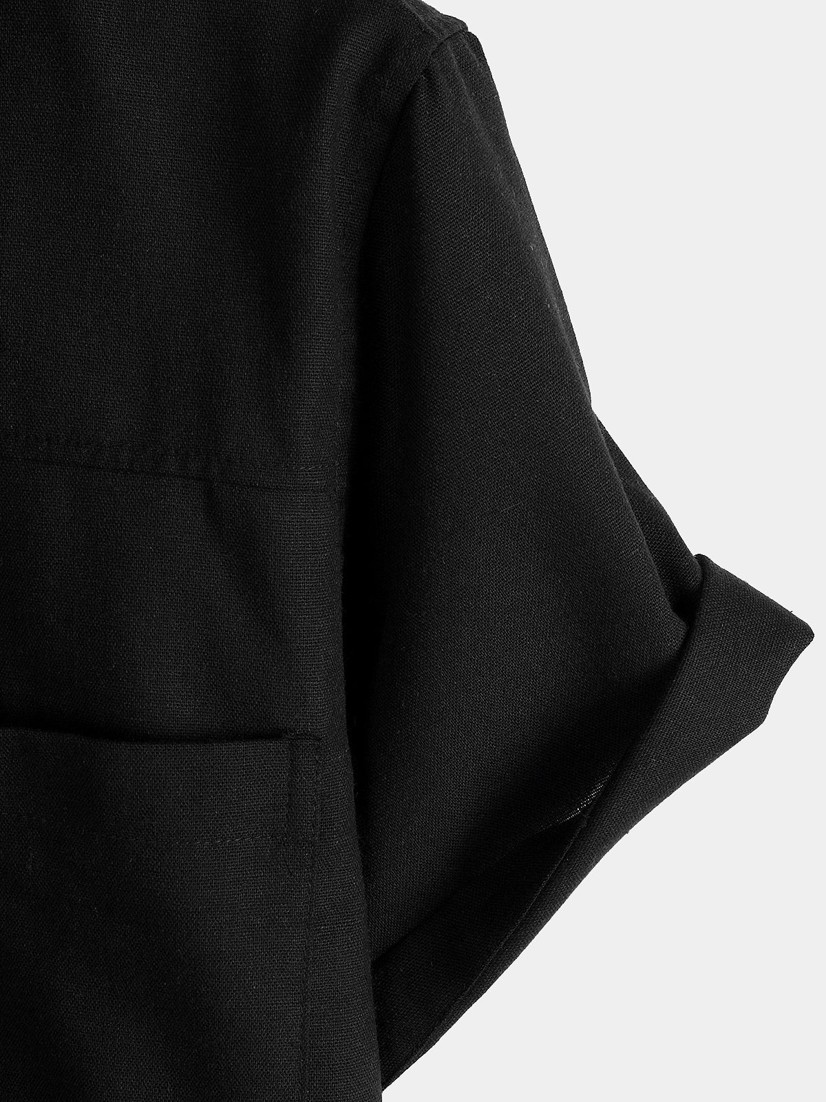Herren Kurzärmliges Hemd aus Baumwolle Leinen mit Taschen