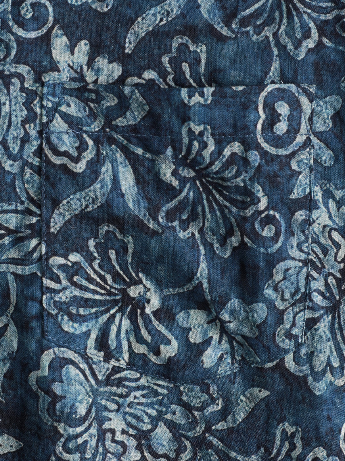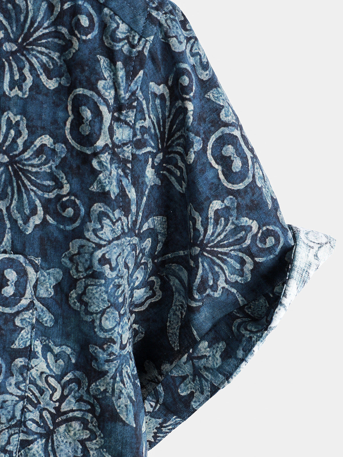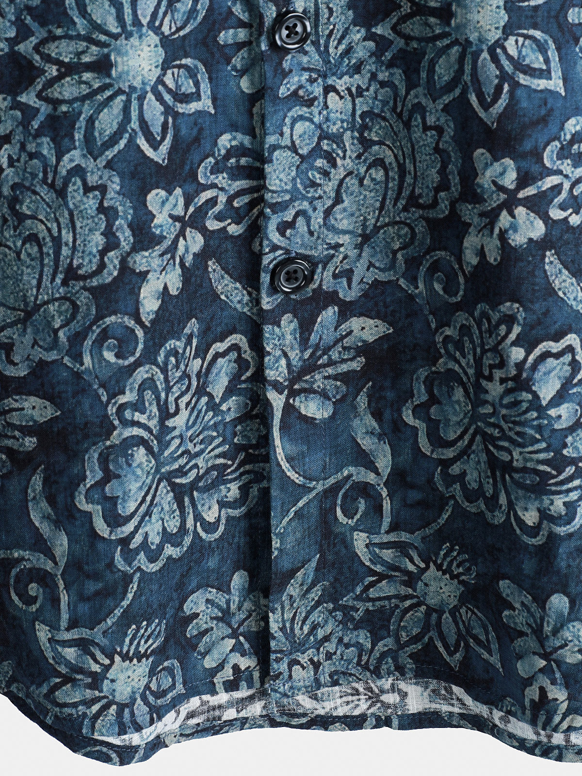 Herren Kurzärmliges Blumenmuster Baumwolle Hawaiihemd Blau