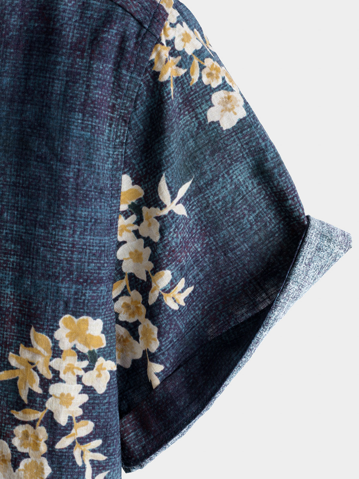 Herren Lässiges Kurzarmhemd mit Blumenmuster