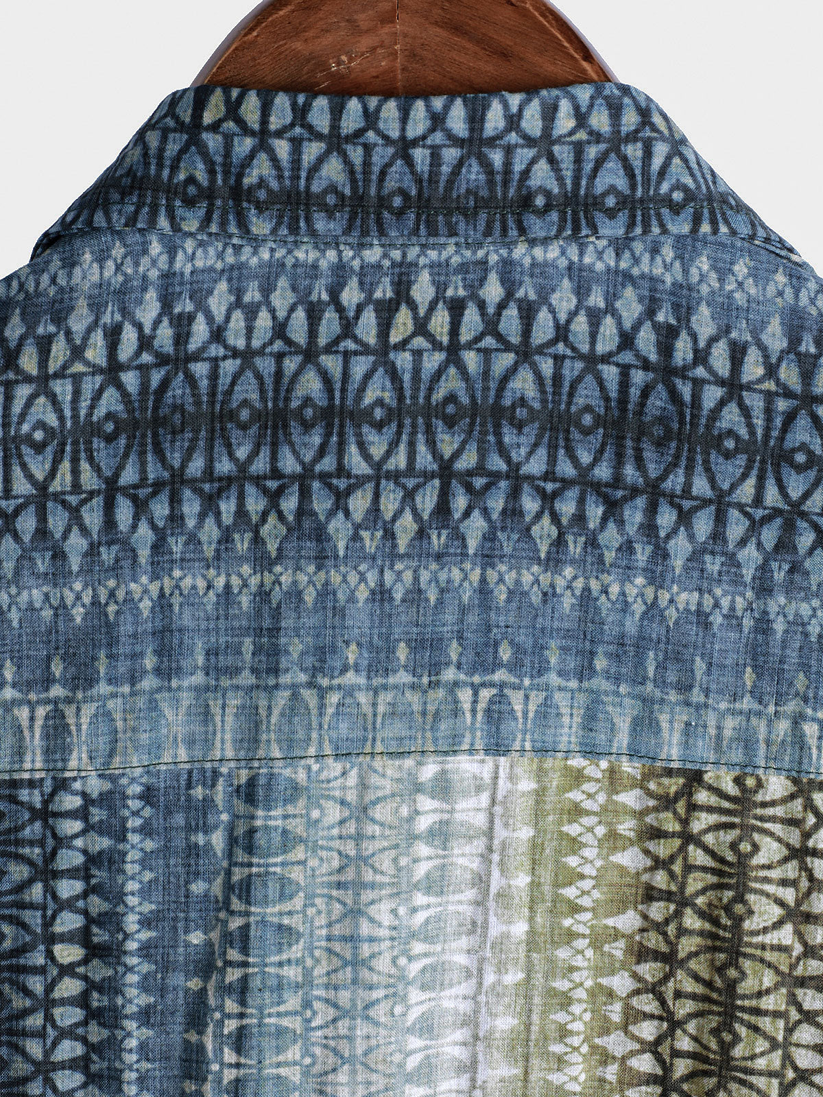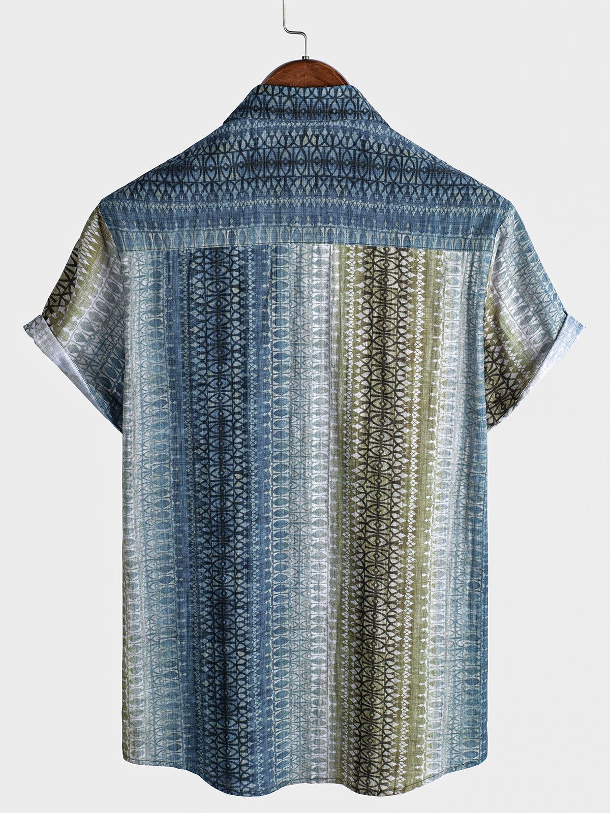 Herren Kurzarmhemd mit Retro Farbverlauf und Streifenmuster