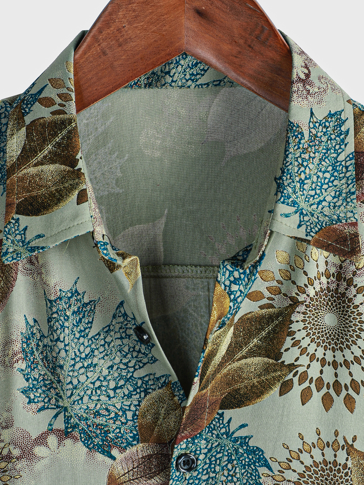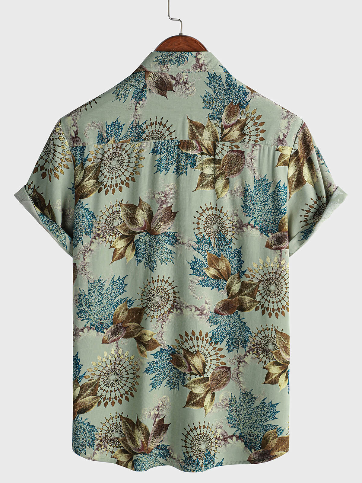 Herren Lässiges Retro-Hemd kurzen Ärmeln und Knopfleiste