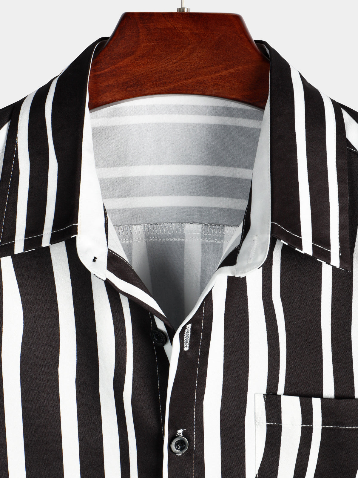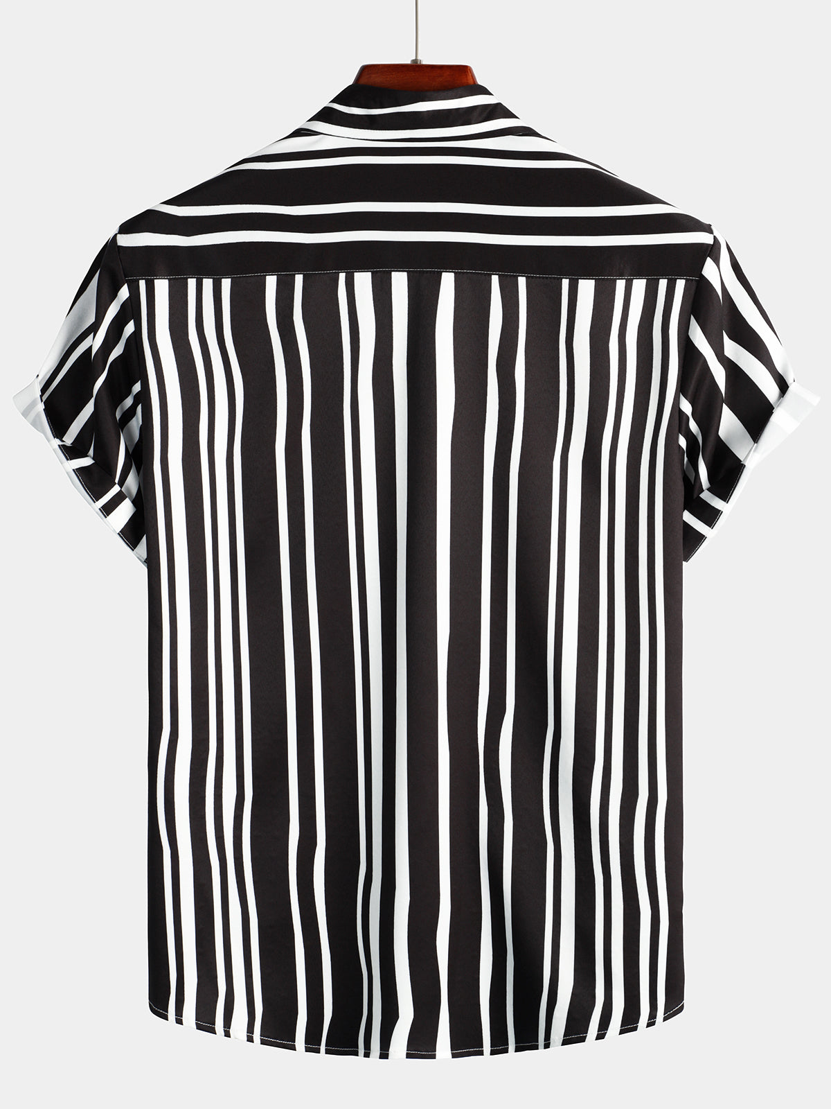 Herren Schwarz Kurzarm Hemd mit Streifenmuster