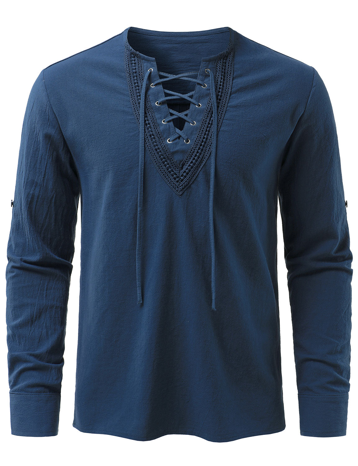 Herren Langärmlige Retro-Hemden mit Schnürung