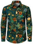 Herren Langärmliges Baumwollhemd mit Weihnachtsbaum-Print Grün