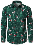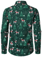 Herren Langarm-Baumwollhemd mit Weihnachtsbaum-Print