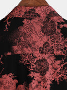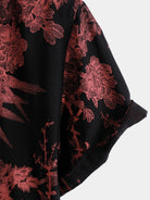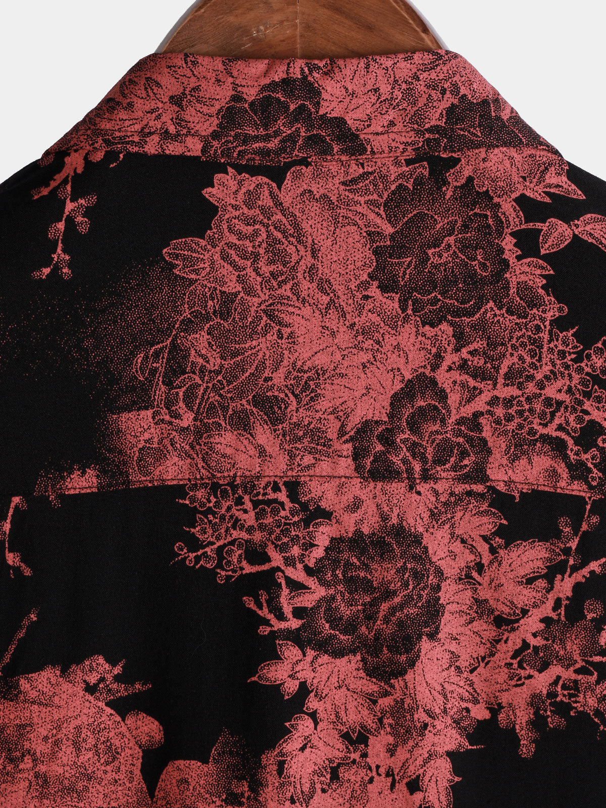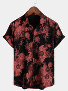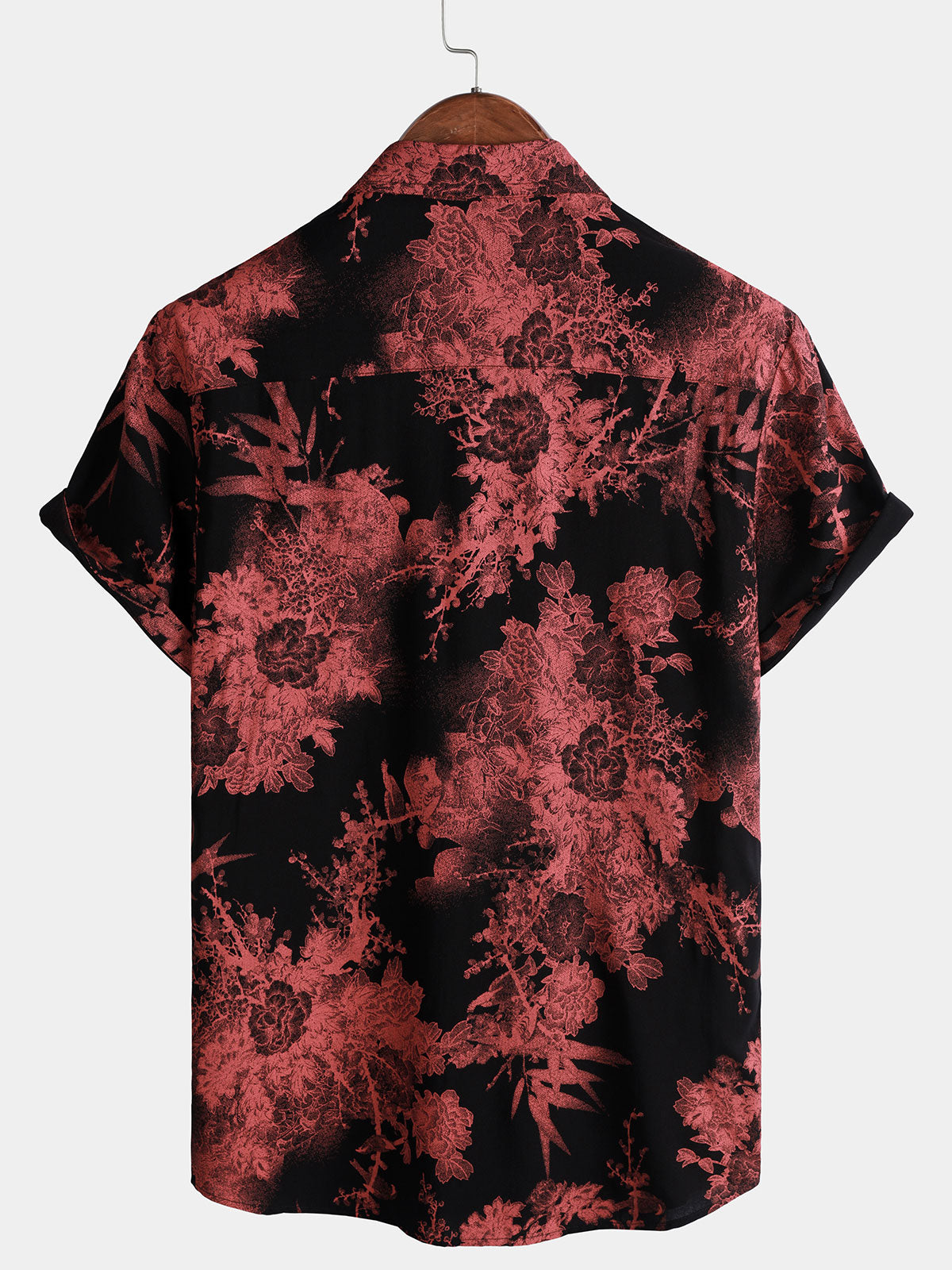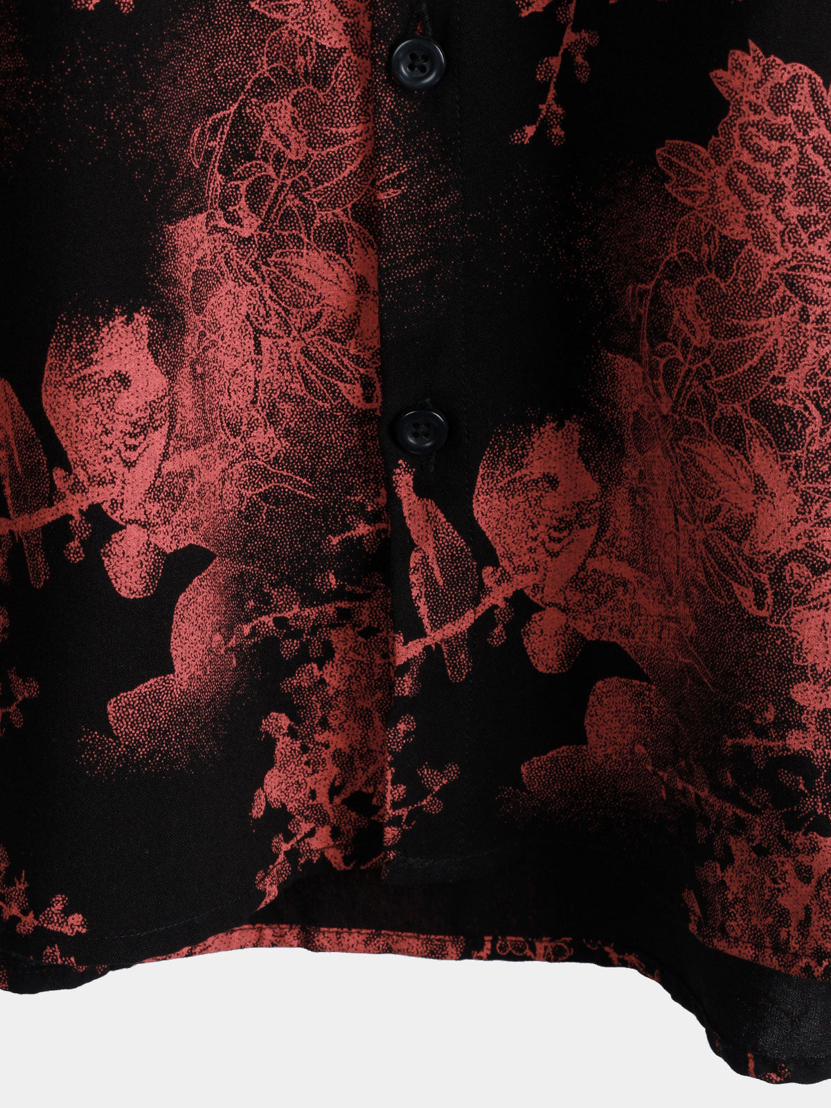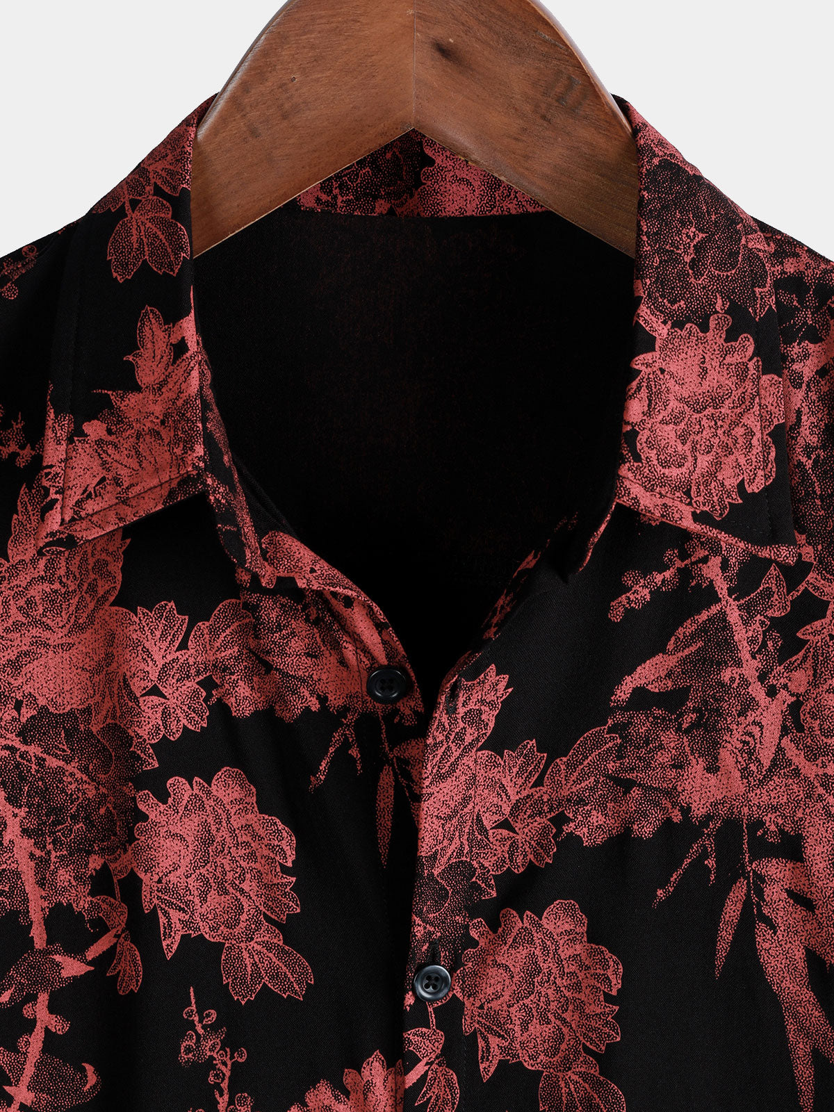 Herren Retro-Blumenmuster und Knöpfen Rot Schwarz Hemd