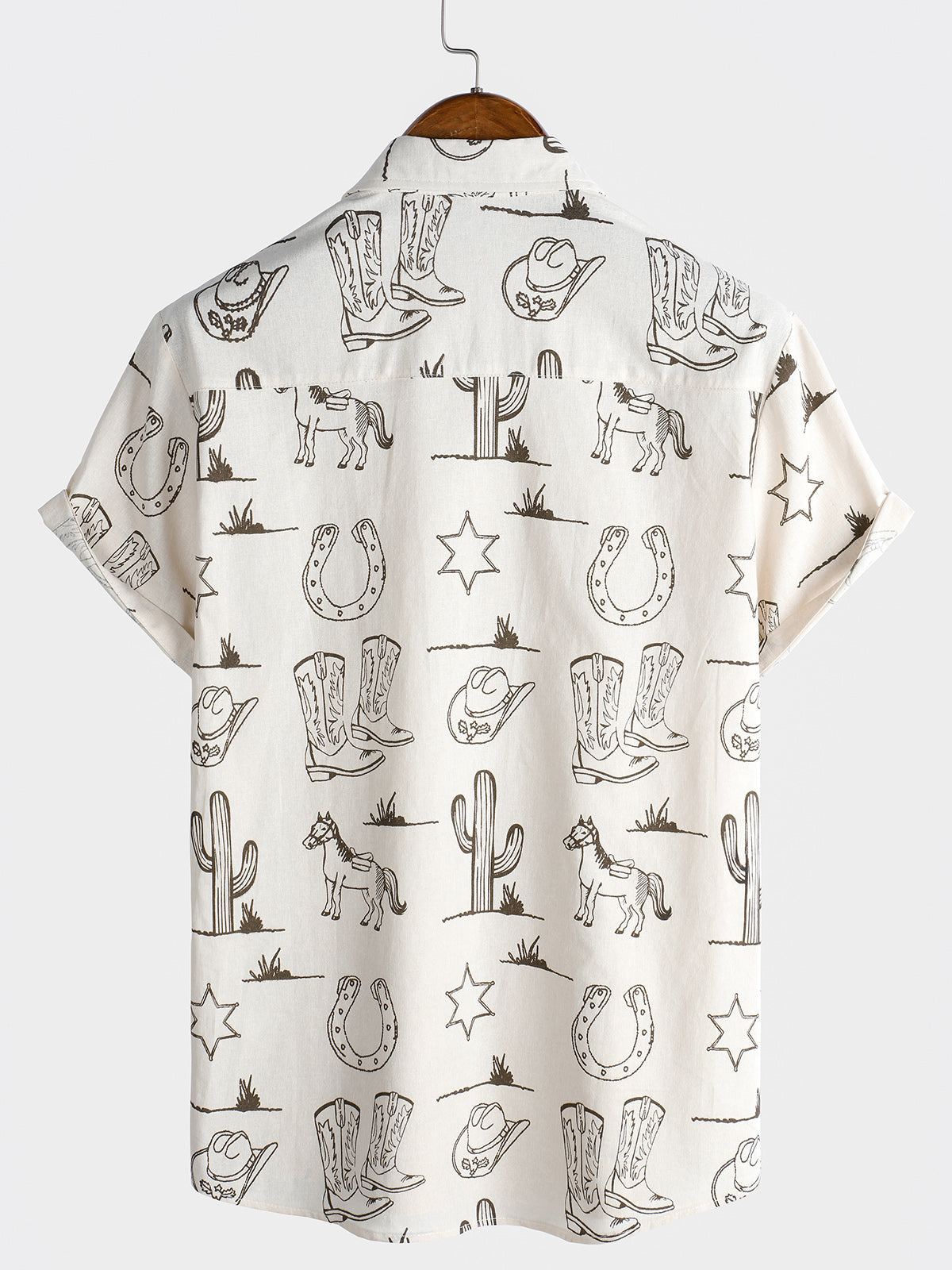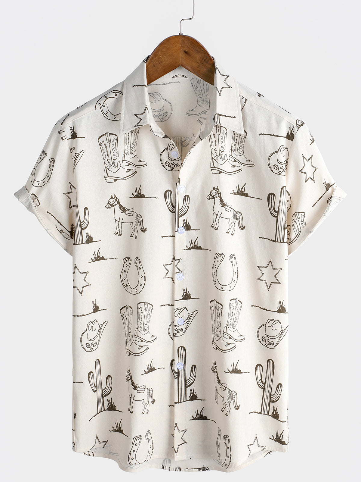 Herren Baumwolle Lässiges Pferdedruck Urlaubshemd