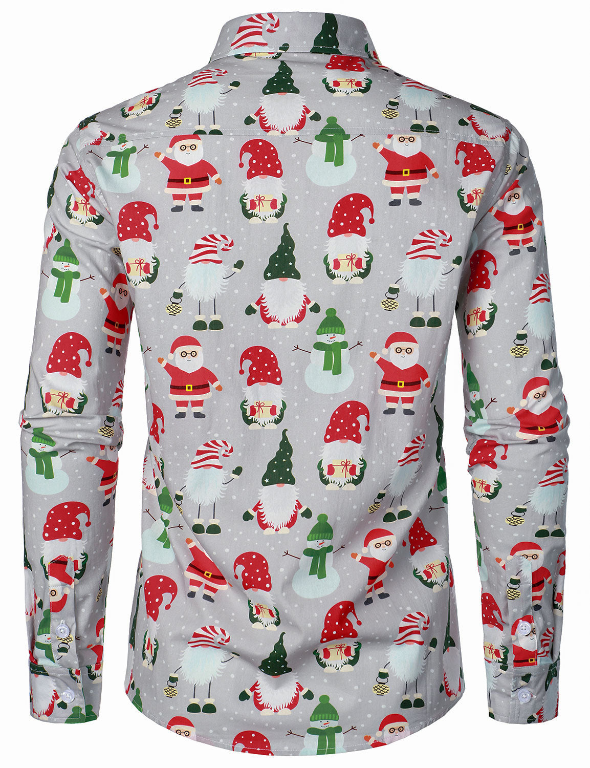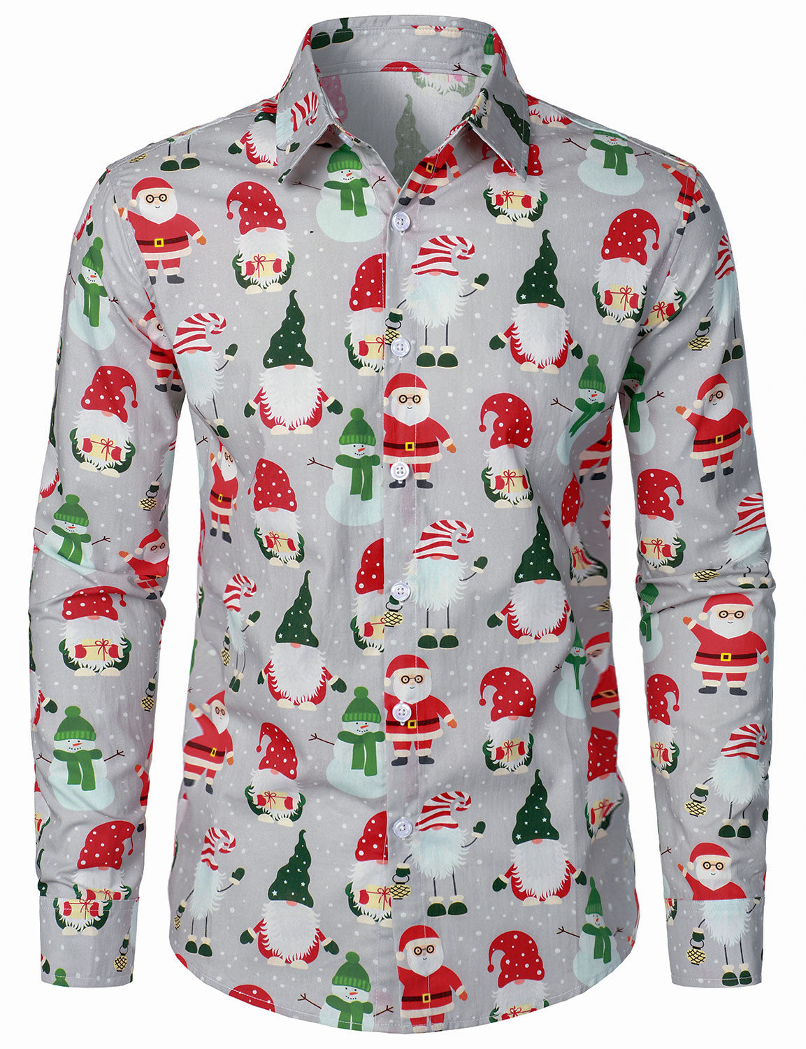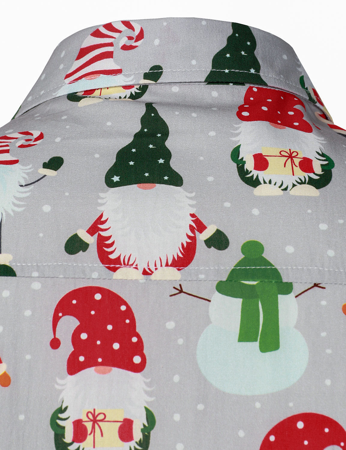 Herren Niedlich Wichtel Weihnachtshemd aus Baumwolle Grau