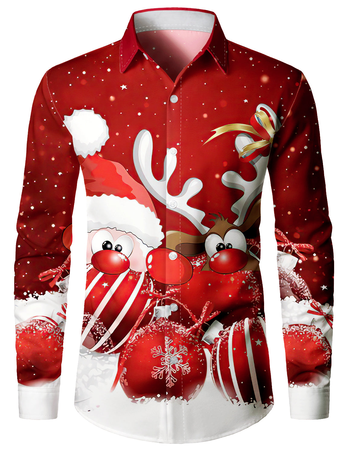 Herren Weihnachtsmann Rentier Weihnachtsshirt Rot