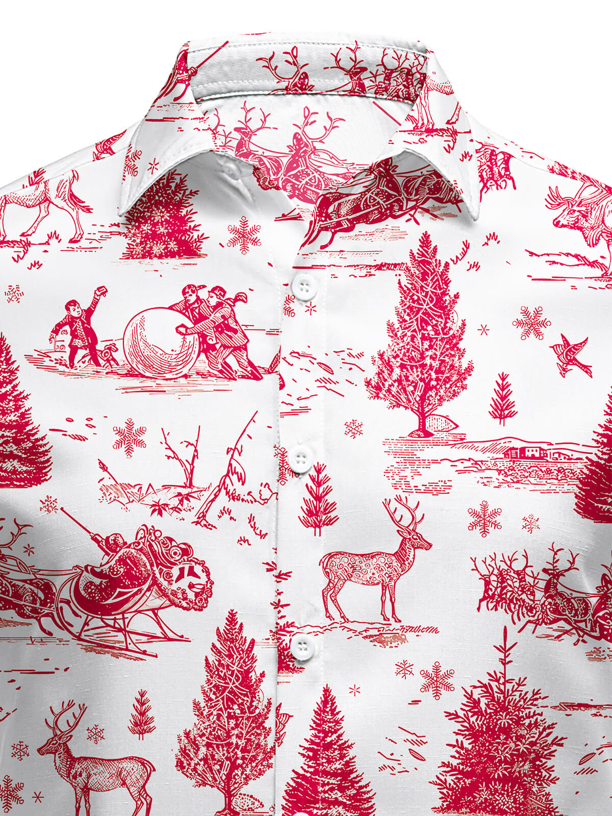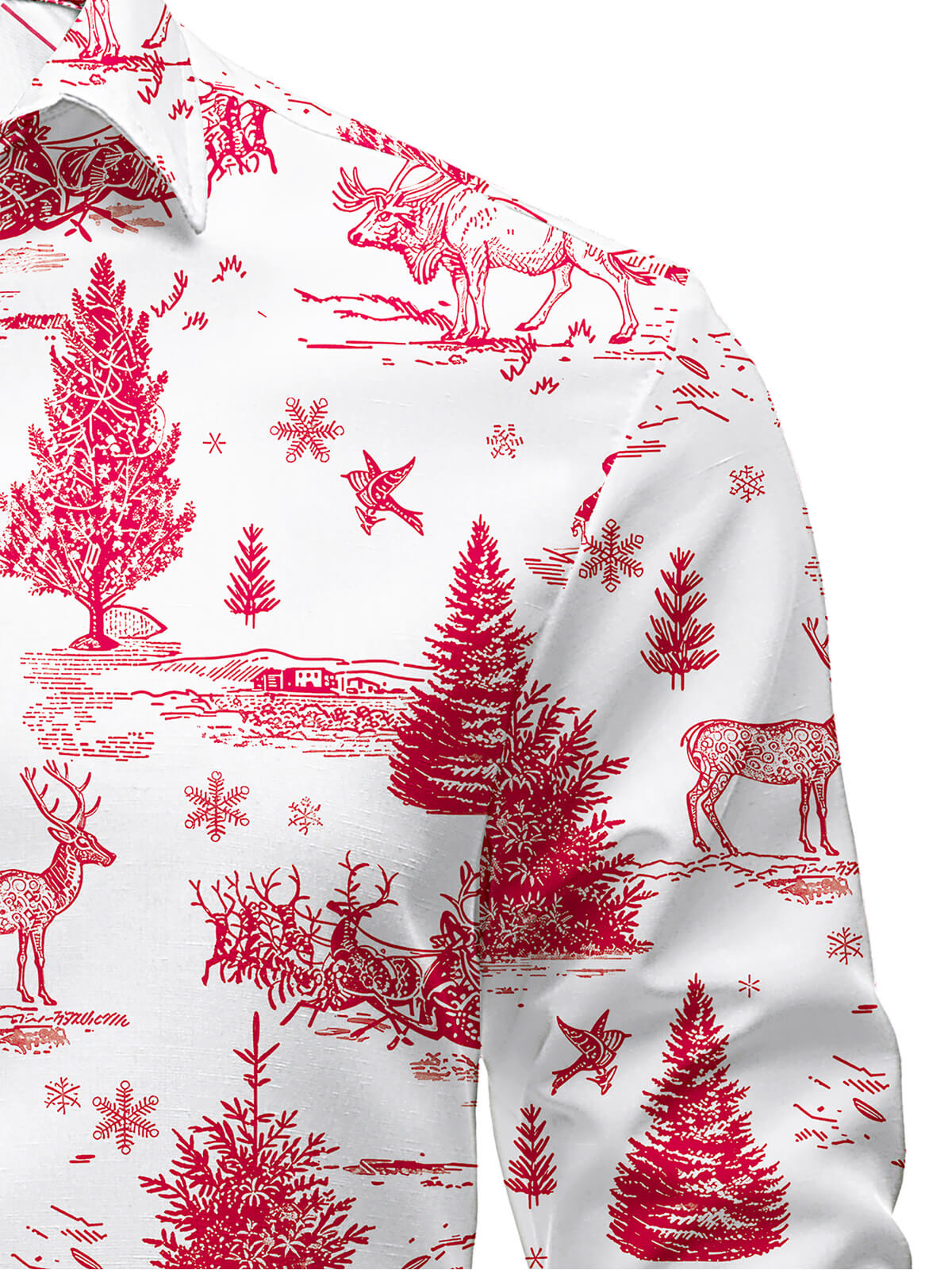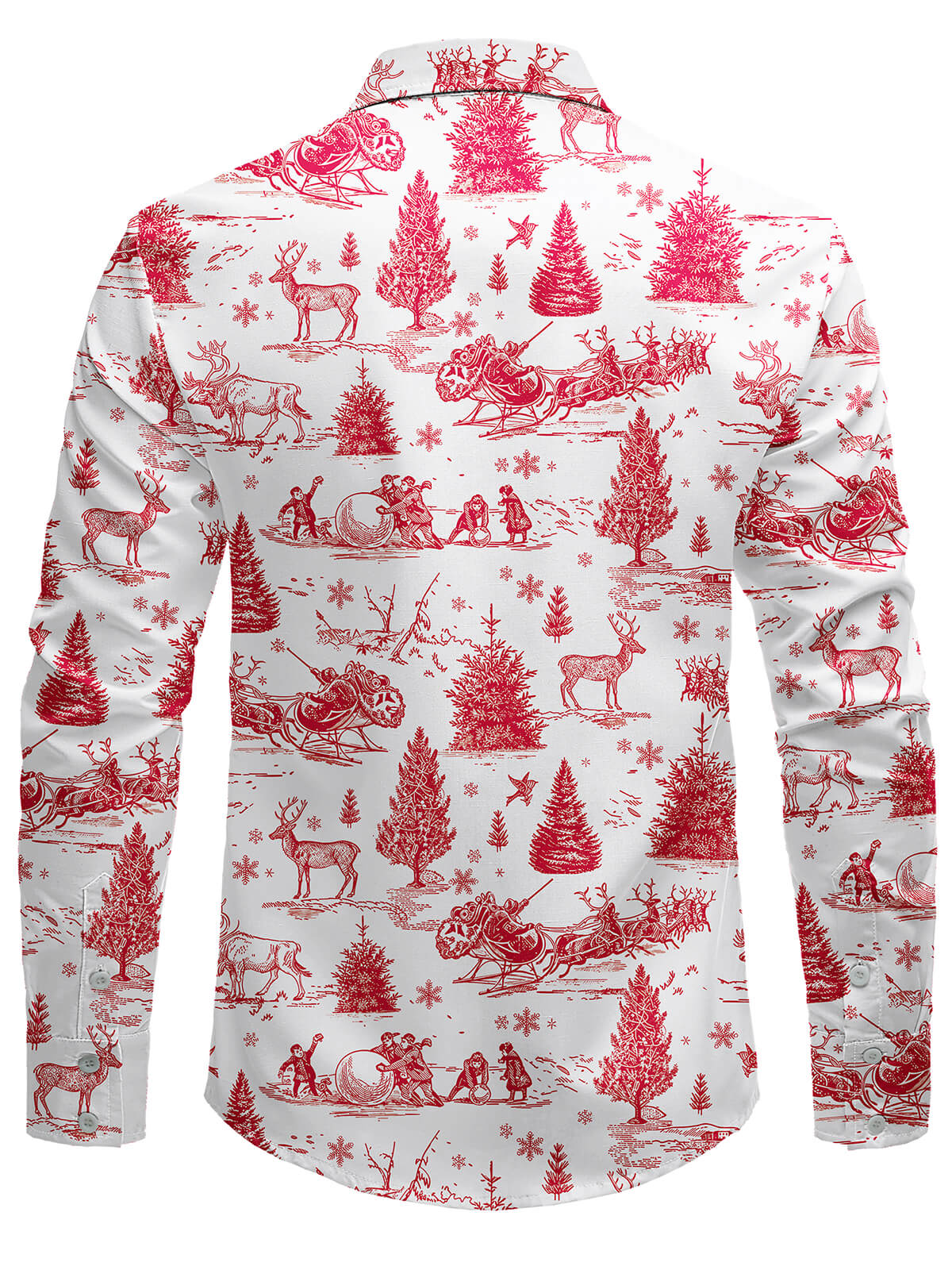 Herren Weihnachts Langarmshirt mit rotem Weihnachtsbaum im Schnee