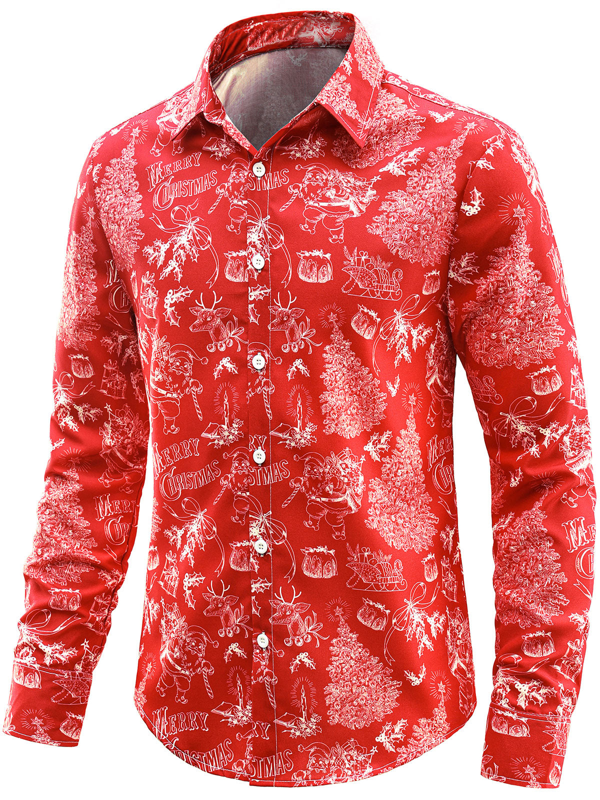 Herren Langarmshirt mit Weihnachtsmotiv Rot