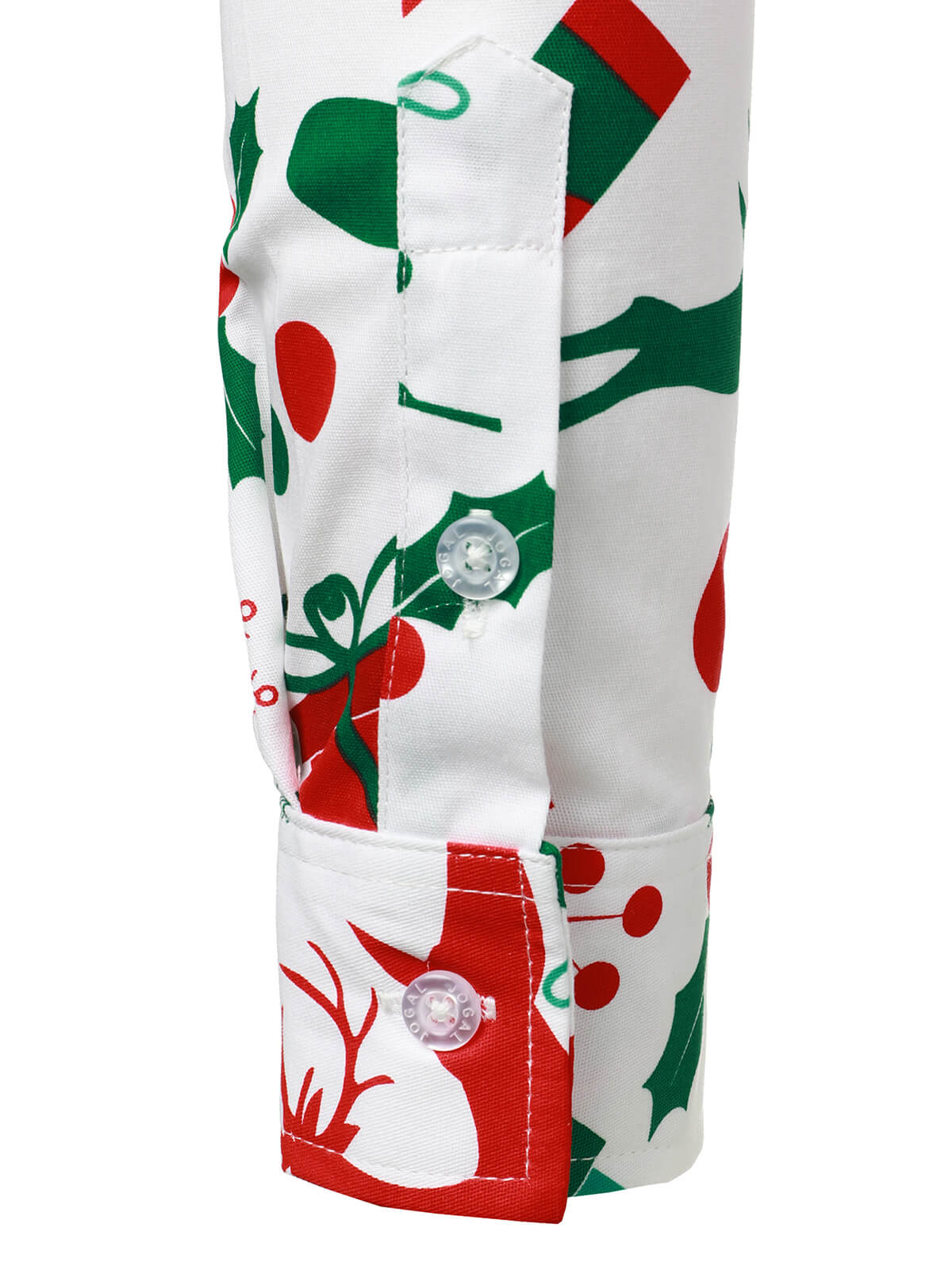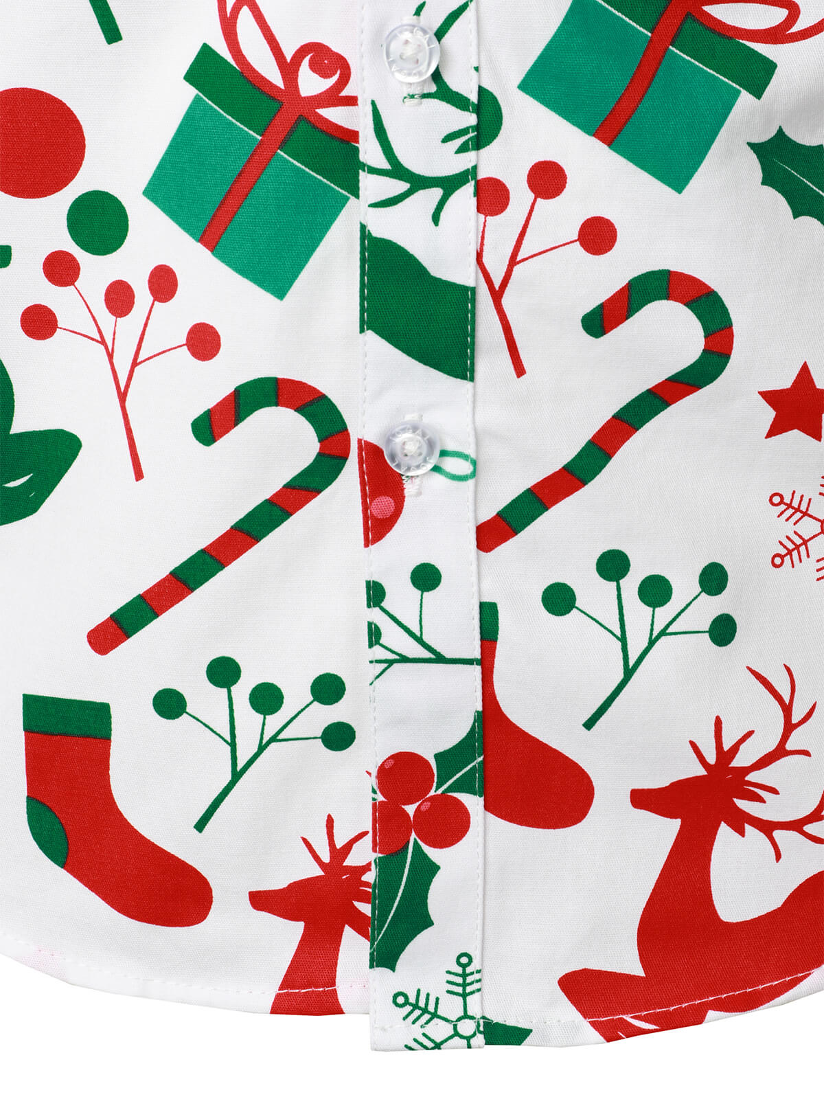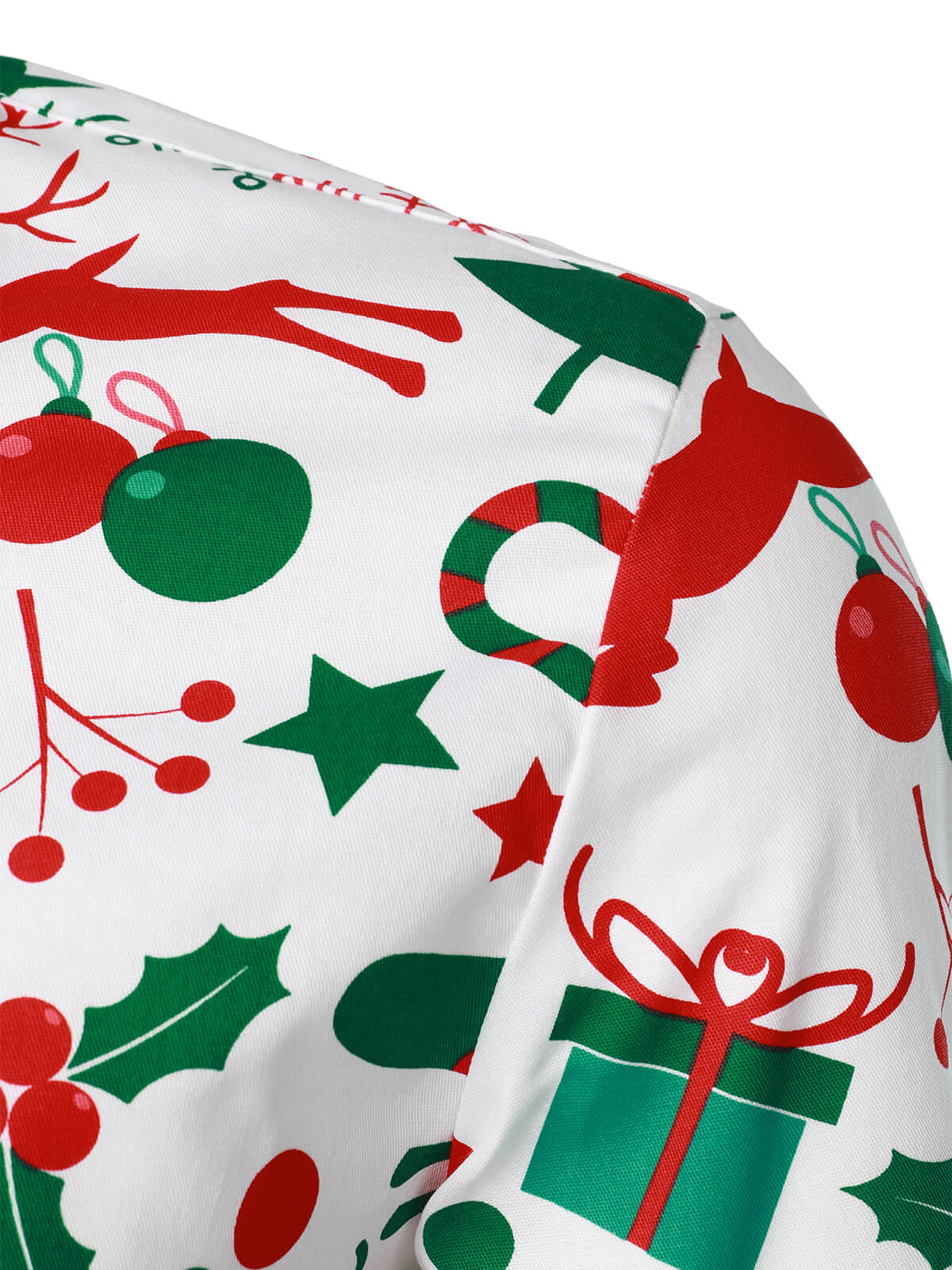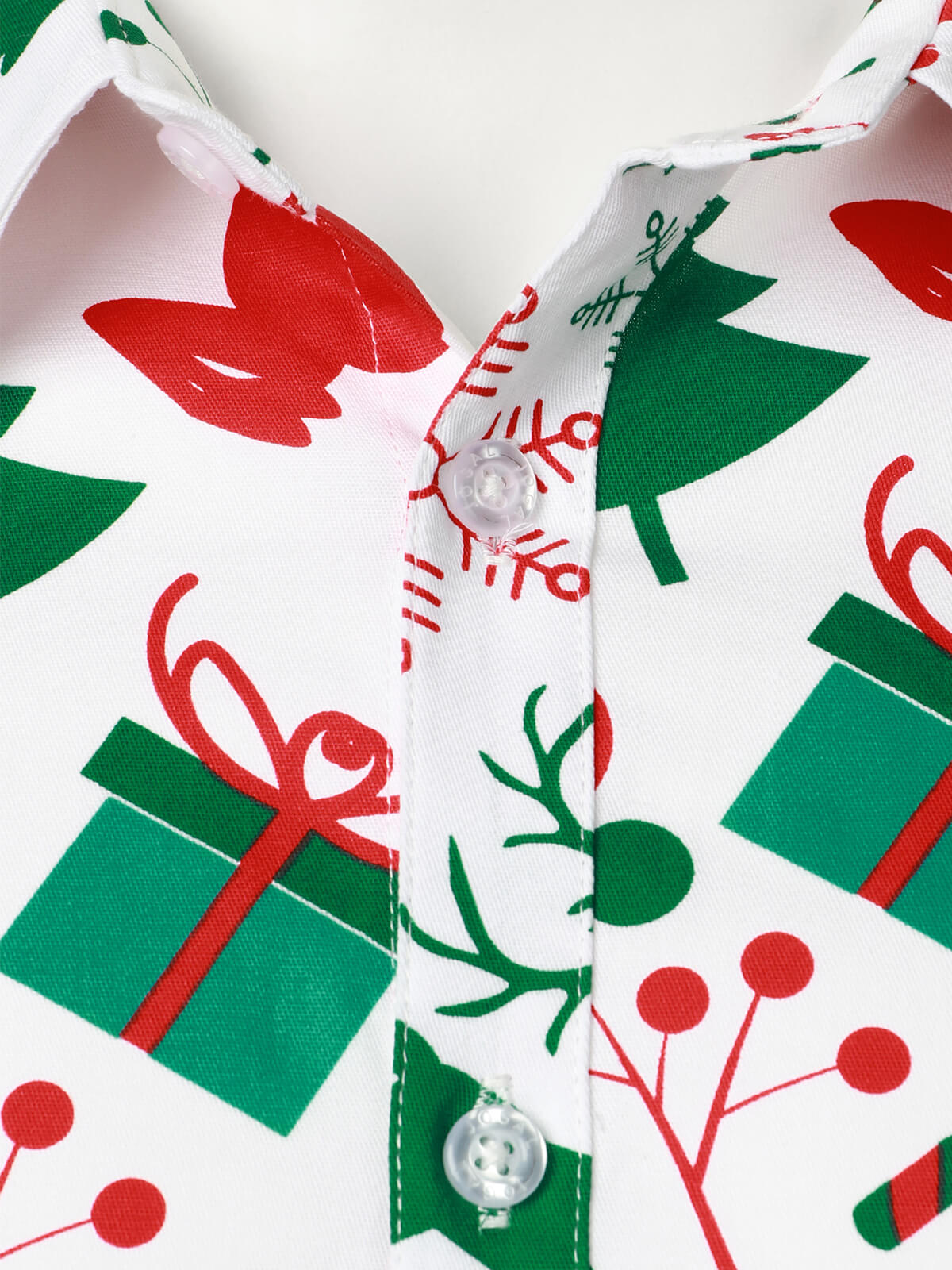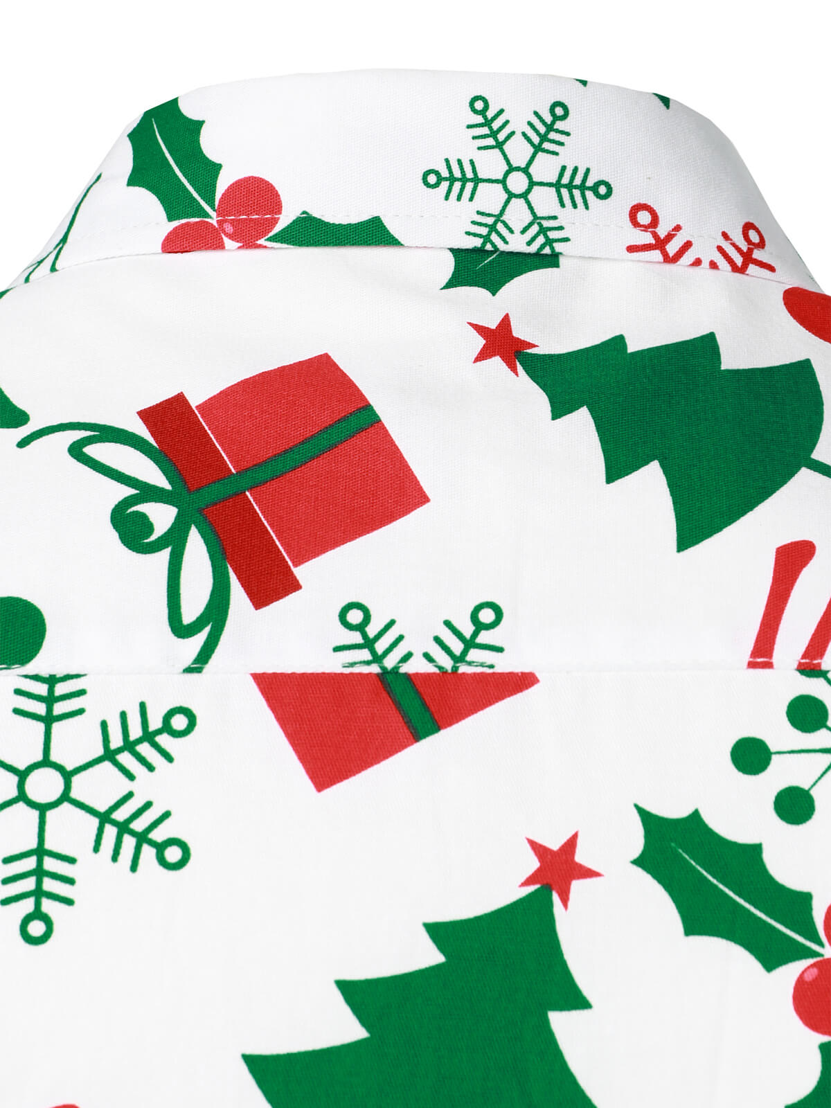 Herren Langarmshirt mit Druck von Weihnachtsbaum und Geschenkornamenten im Button-Up-Stil