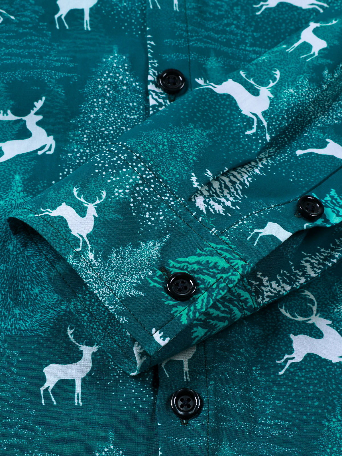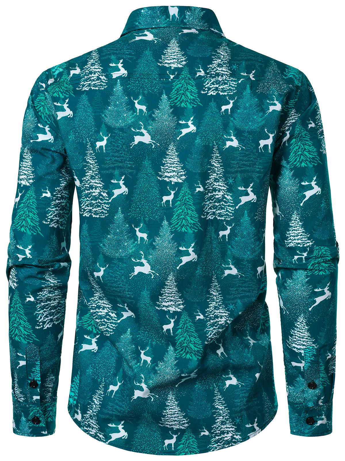 Herren Weihnachts-Langarmhemd aus Baumwolle Blau