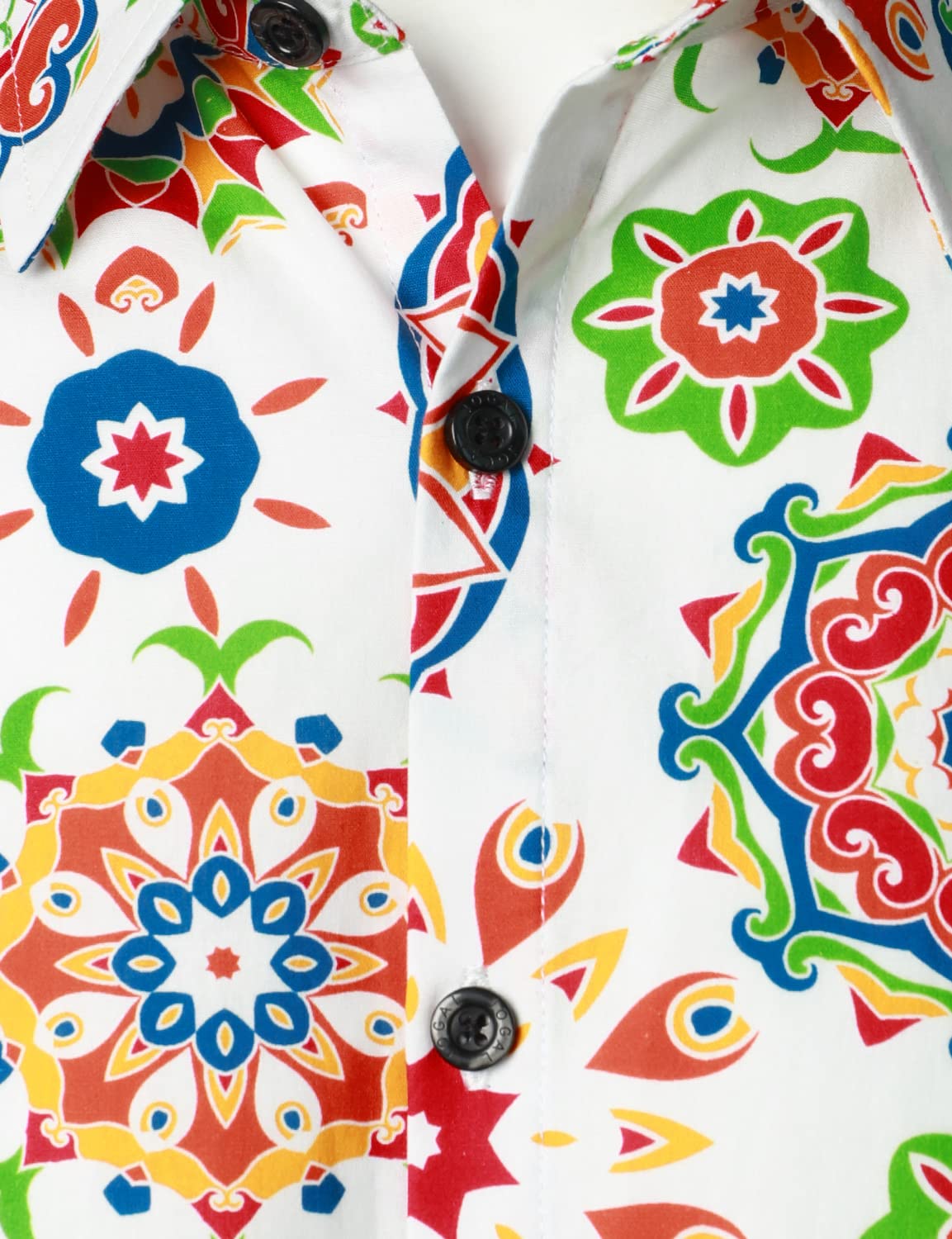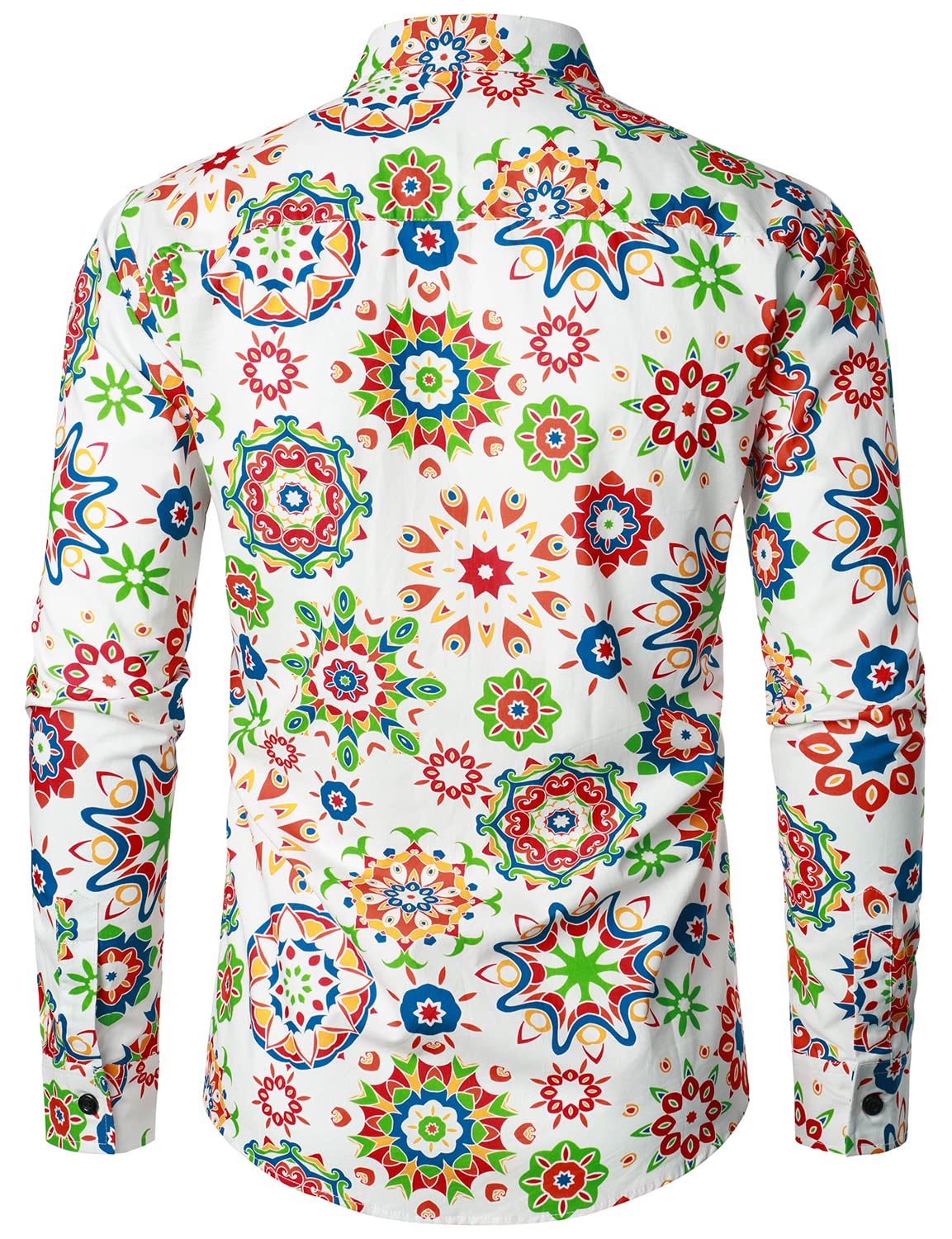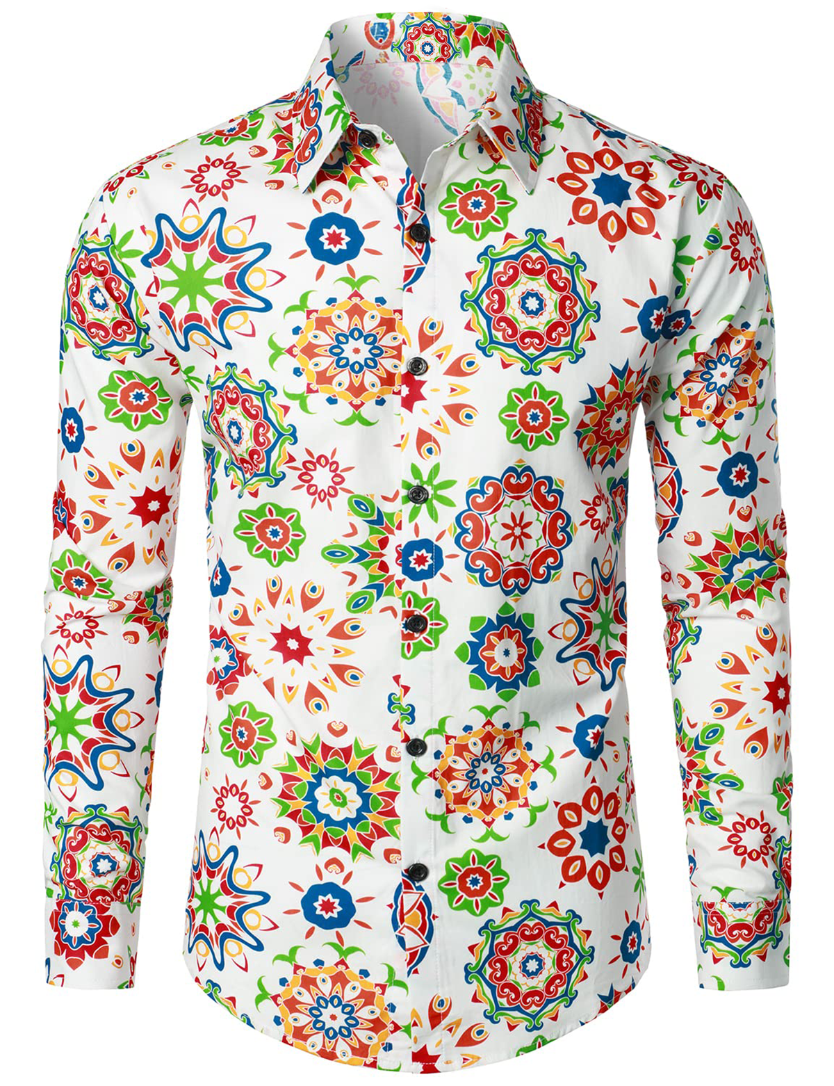 Herren Langarmhemd mit Blumenmuster und Knöpfen aus Baumwolle
