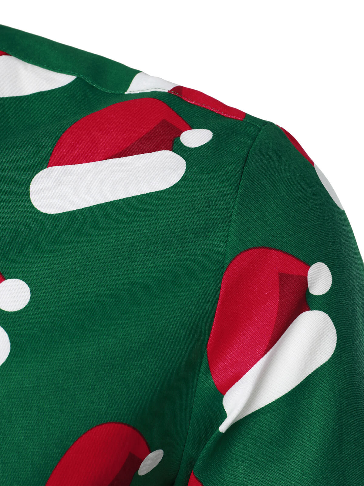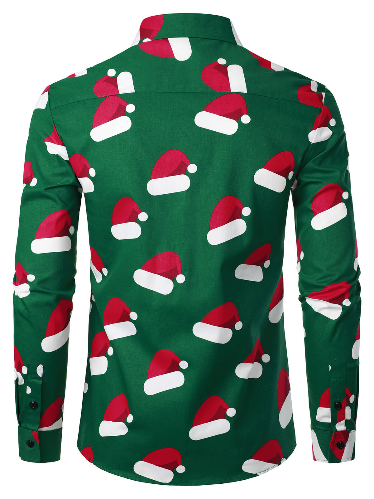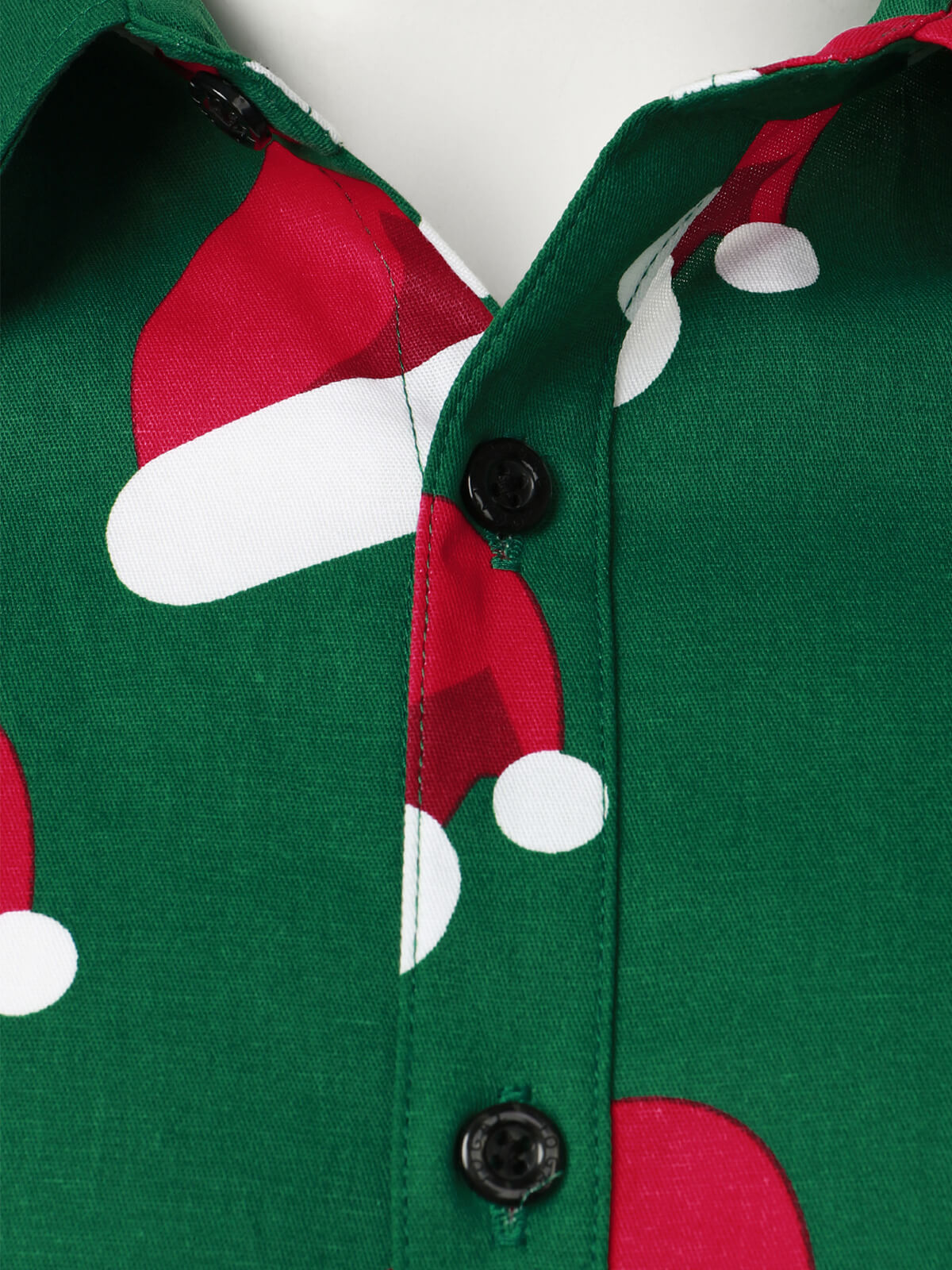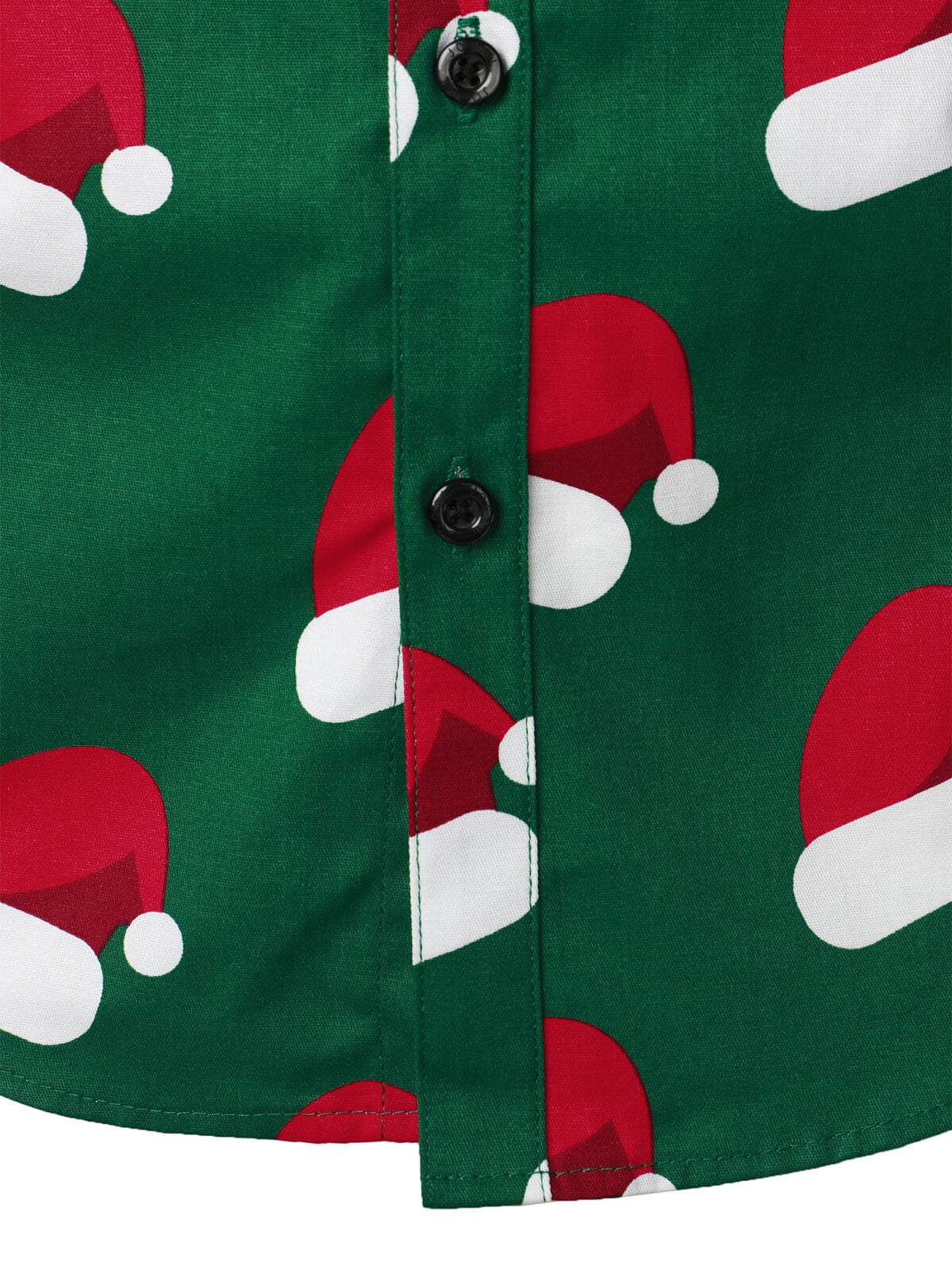 Herren grünes Weihnachts Hemd mit Weihnachtsmannmütze im Button-Up-Stil und langen Ärmeln