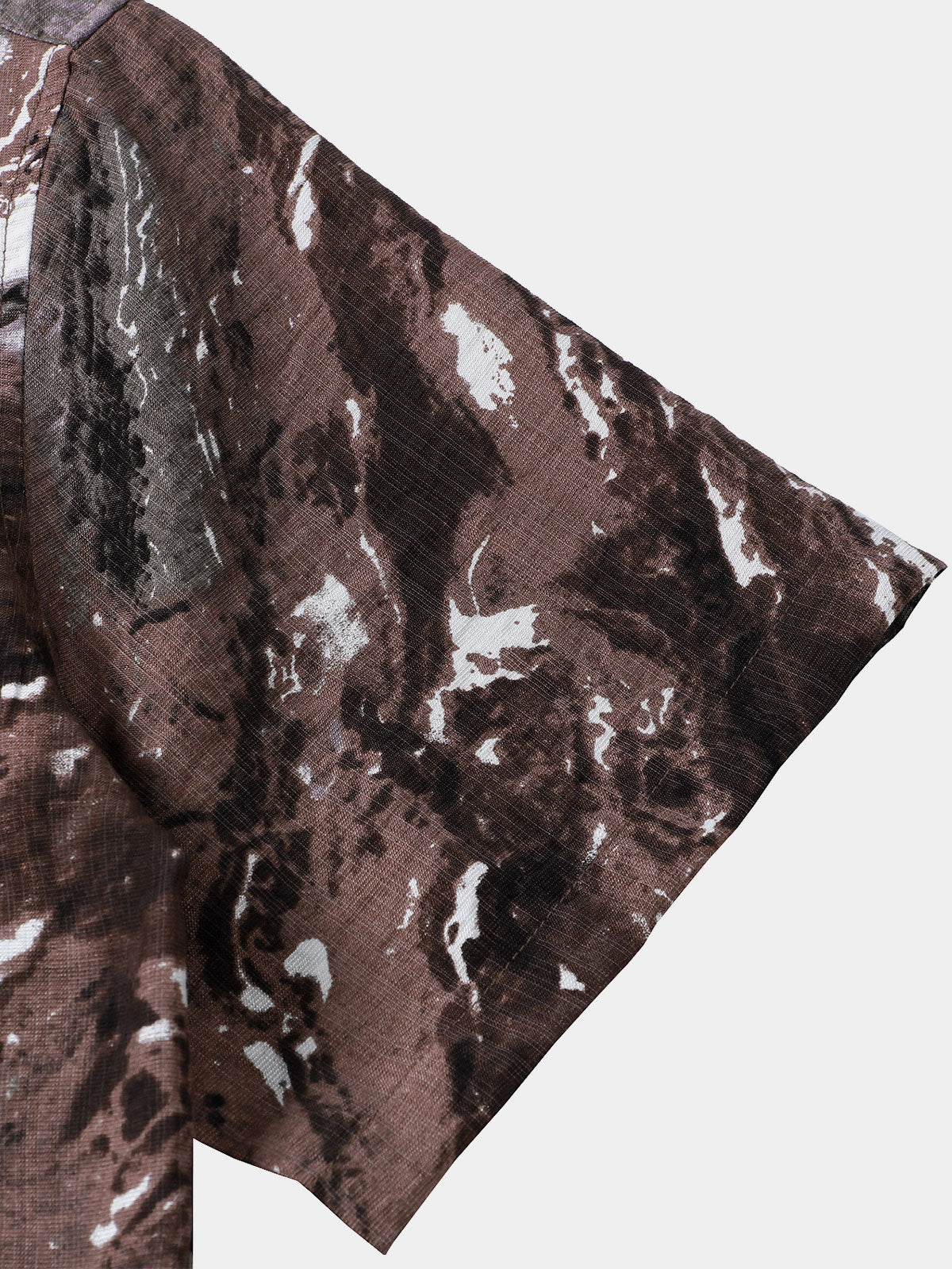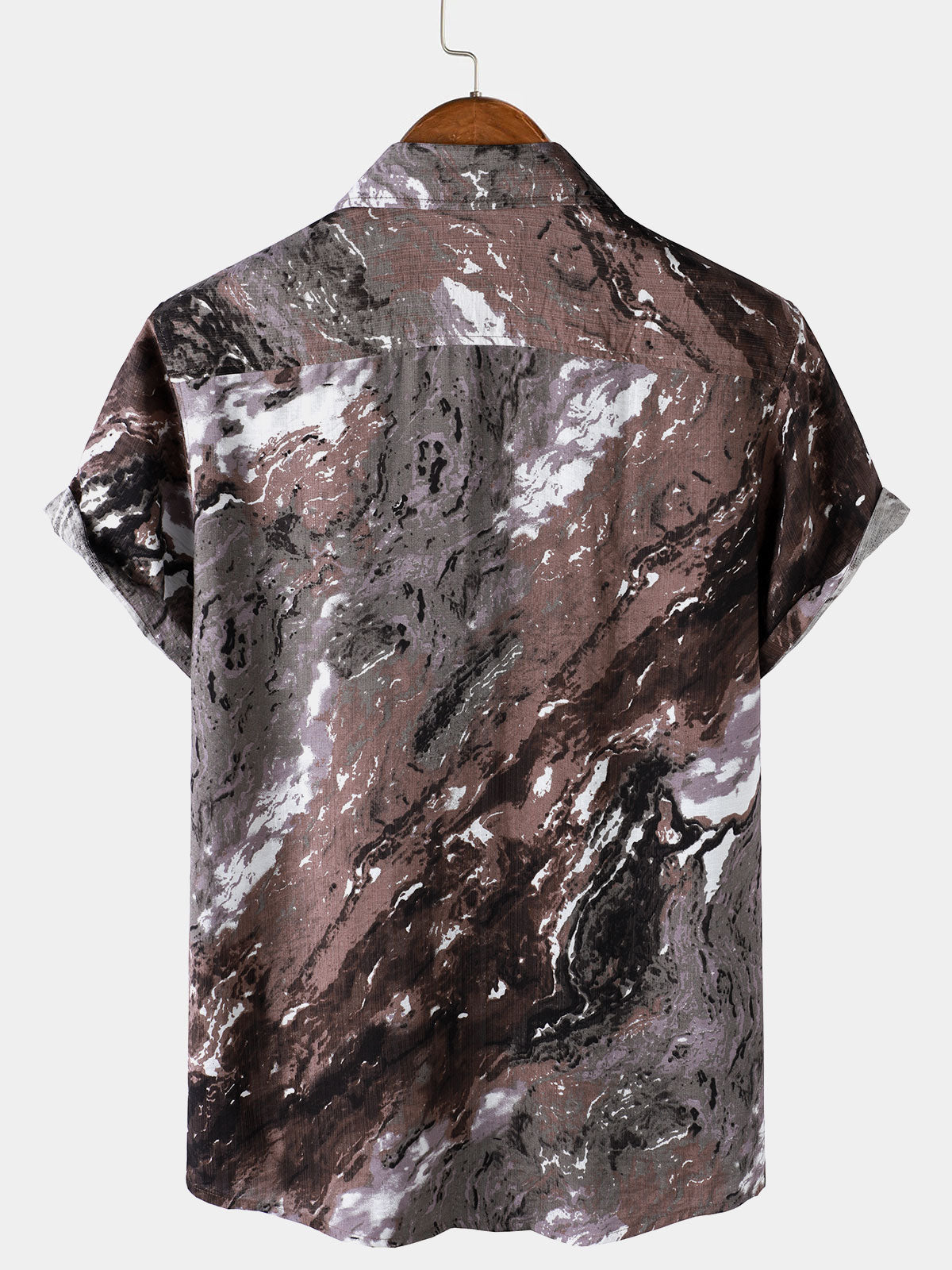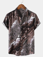Herren Braunes Urlaub Abstraktem Kunstmotiv Kurzarmhemd