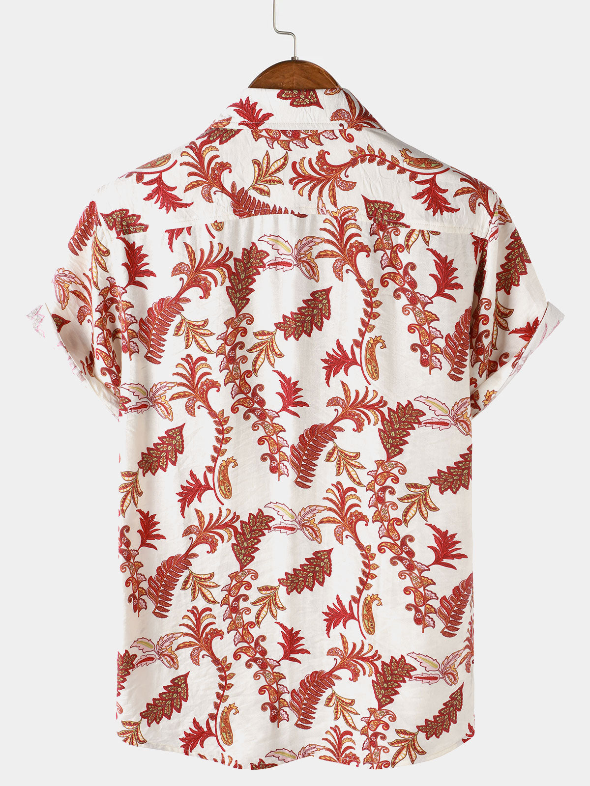 Herren Paisley-Blumenmuster Urlaub Kurzarmhemd