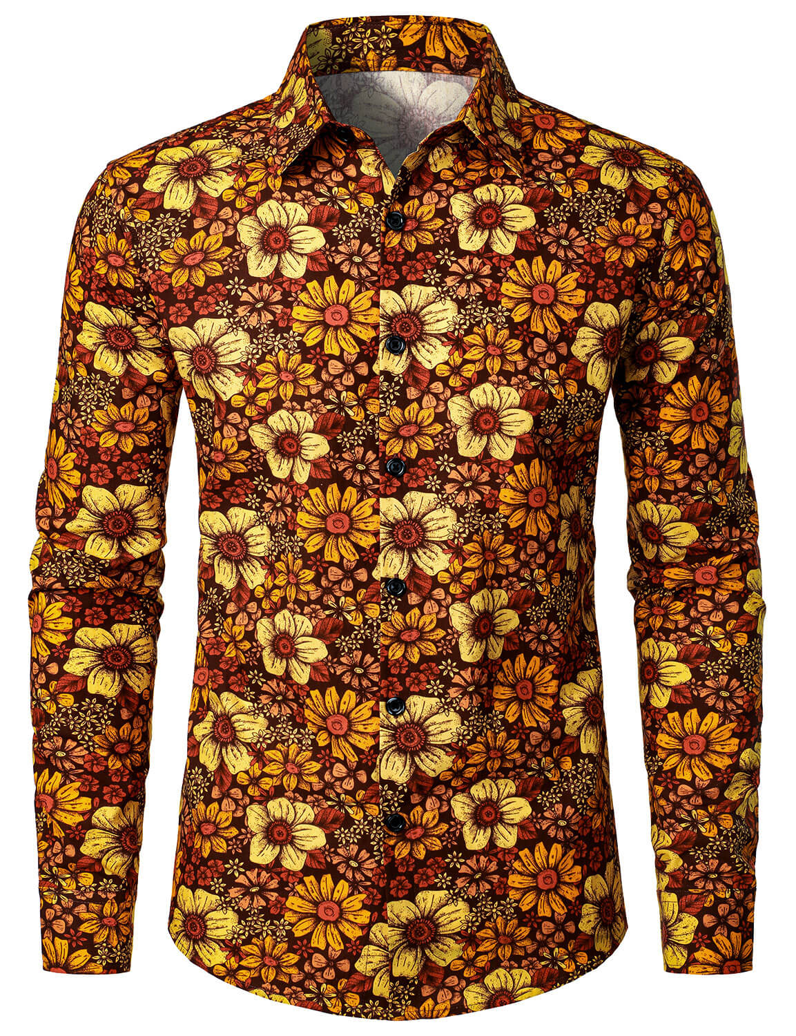 Herren Langärmliges Baumwollhemd mit Vintage-Blumenmuster