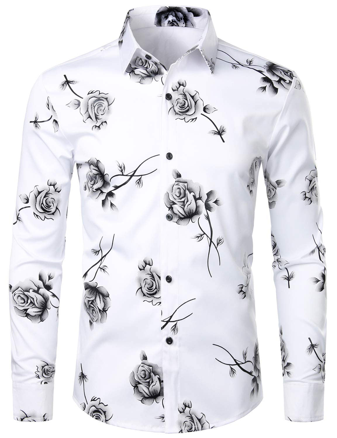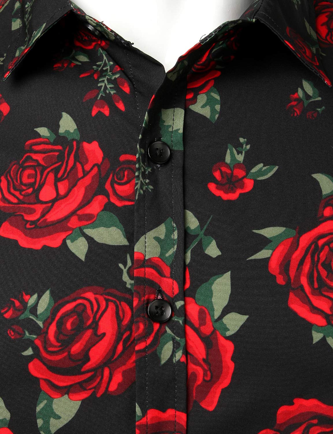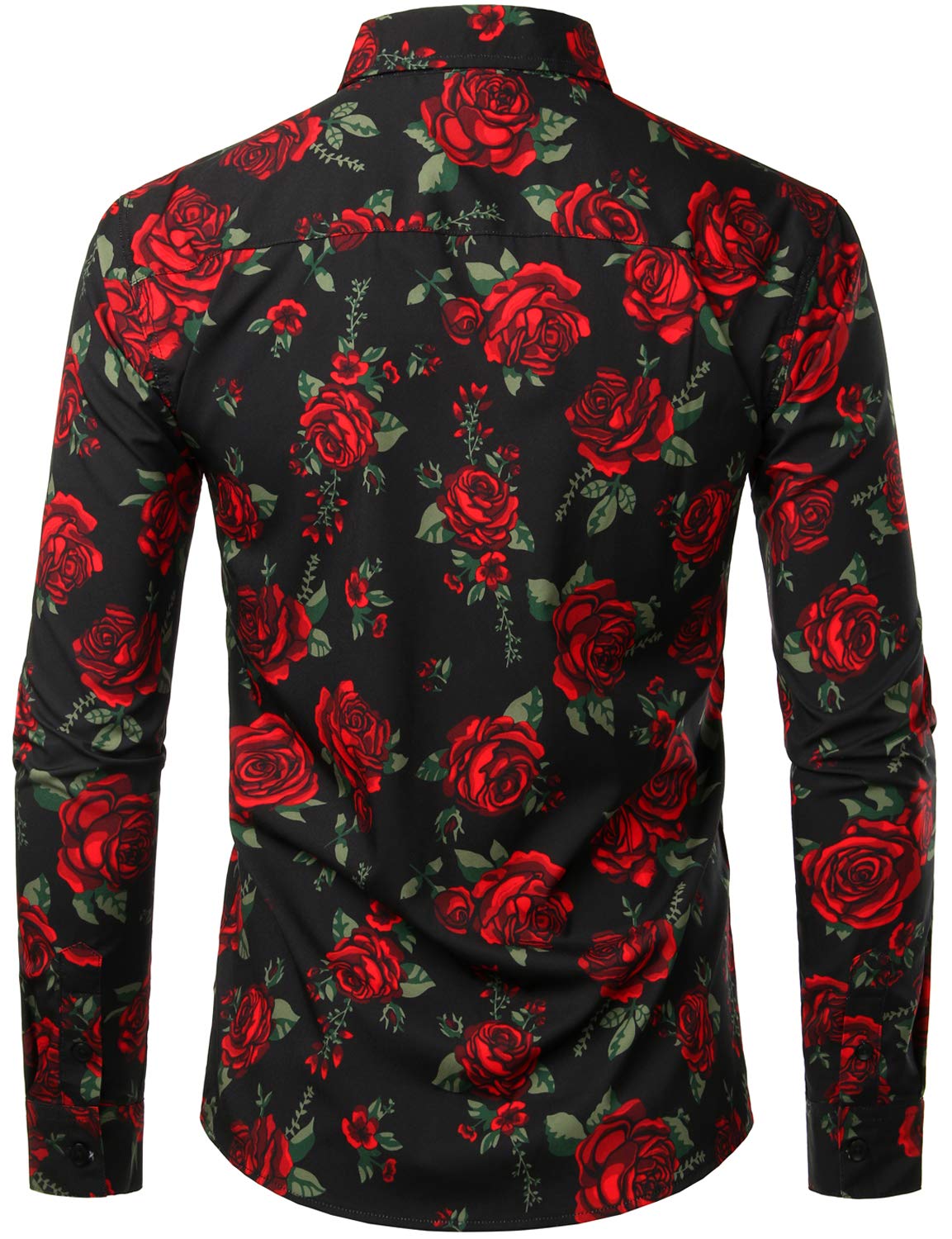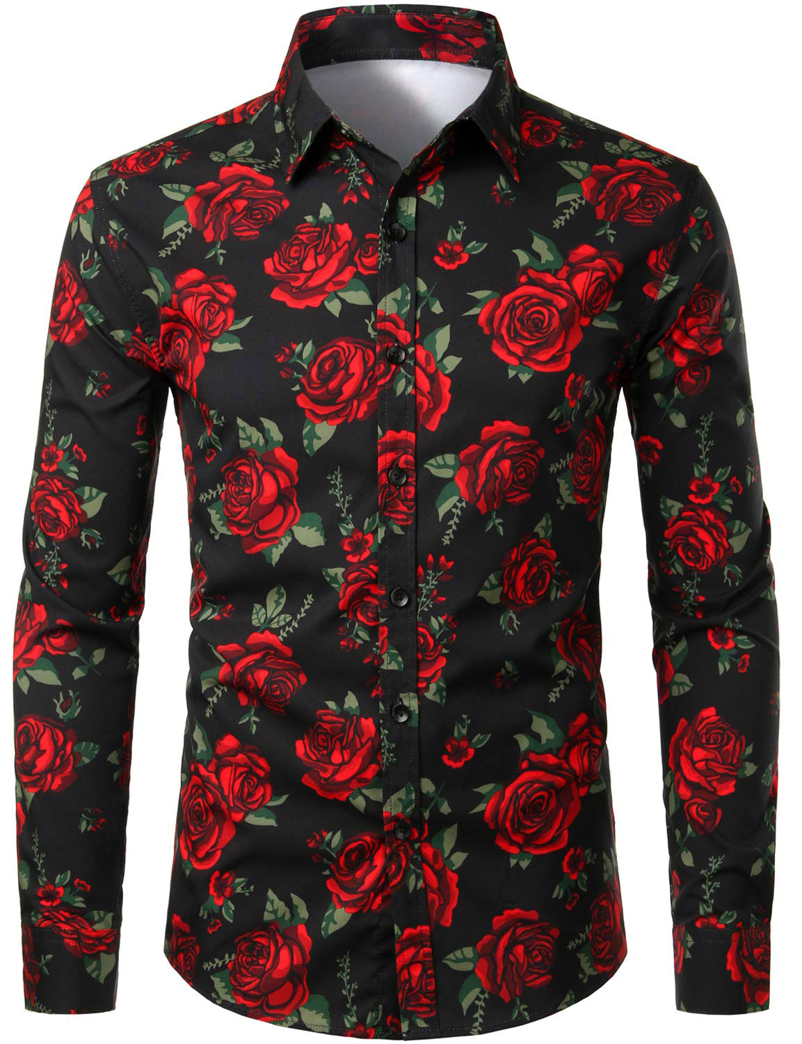 Herren-Langarmhemd mit Rosen-Blumenmuster