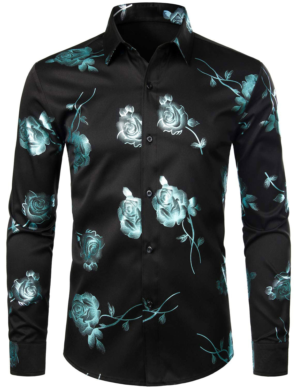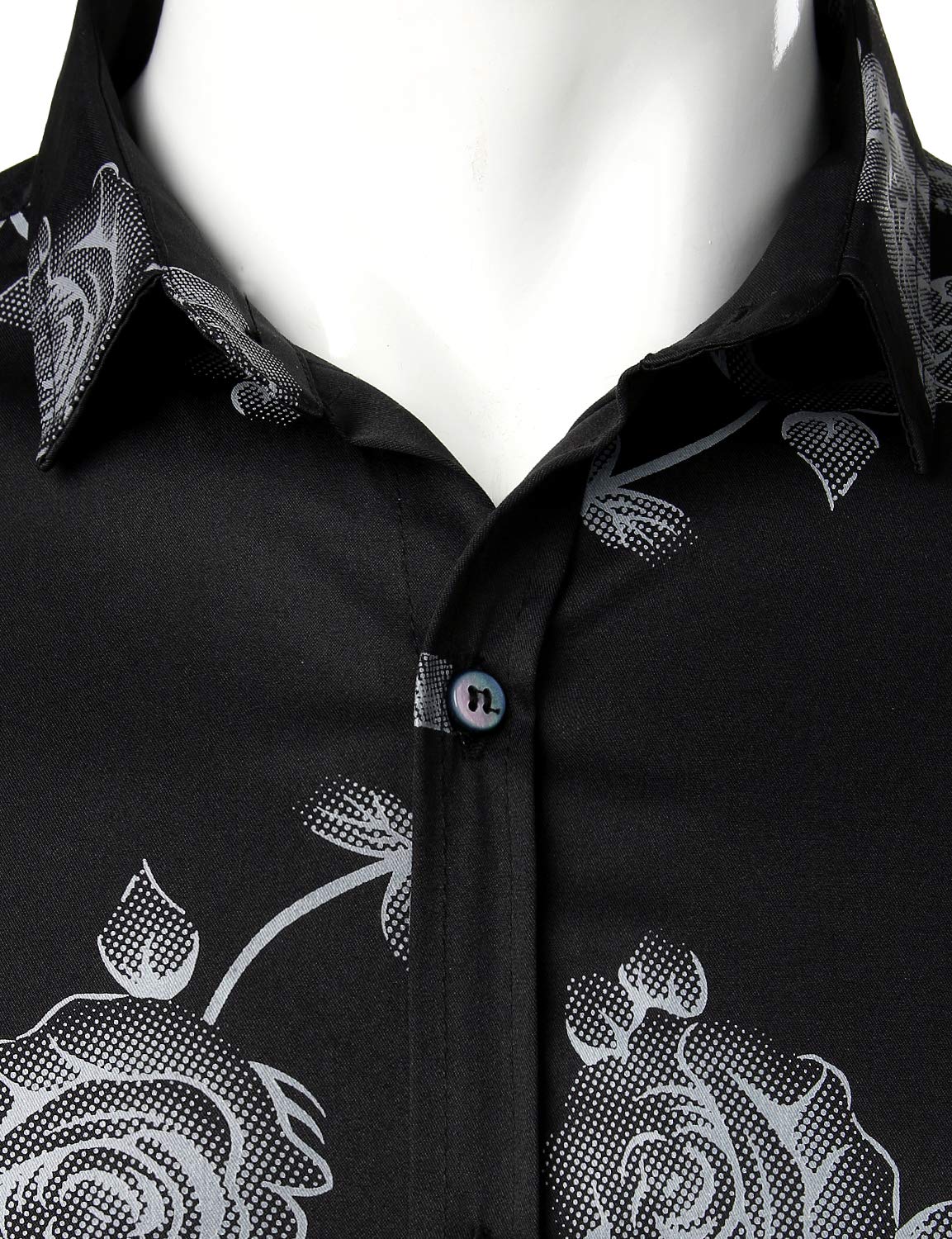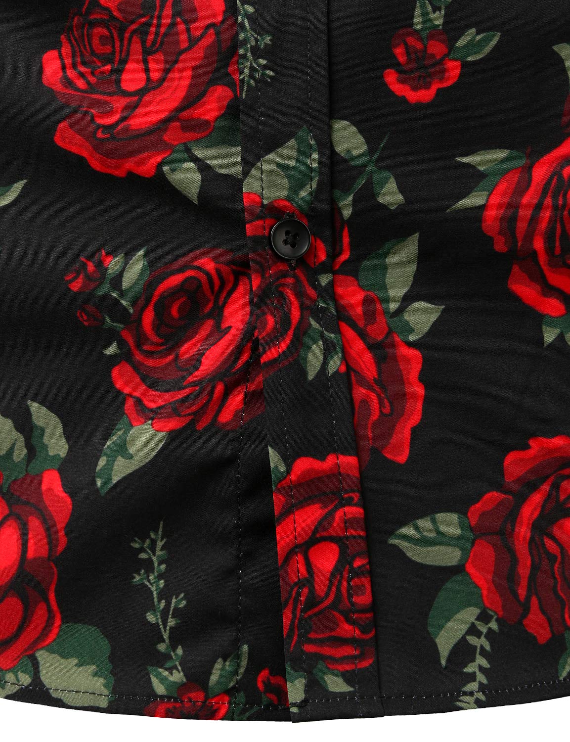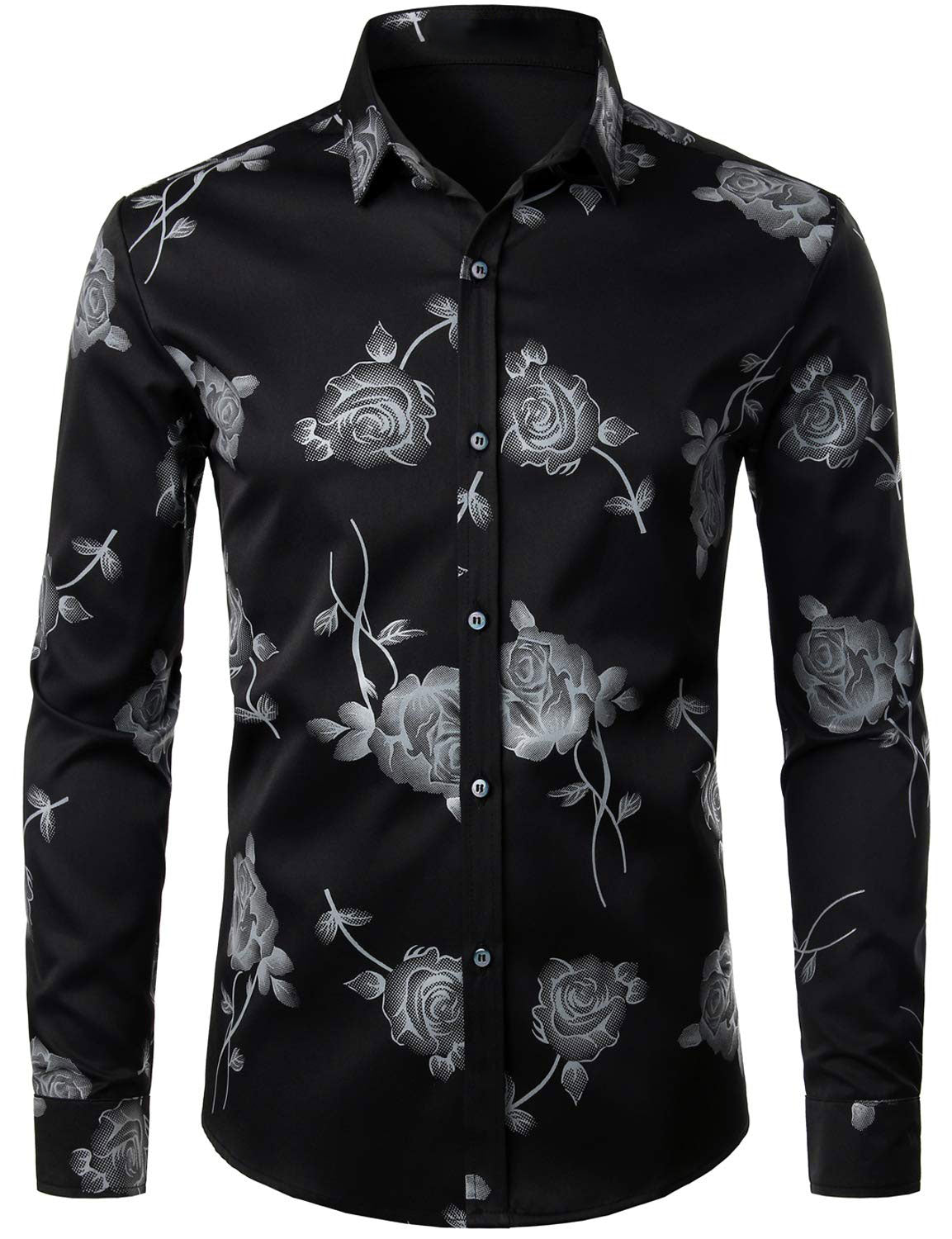 Herren-Langarmhemd mit Rosen-Blumenmuster