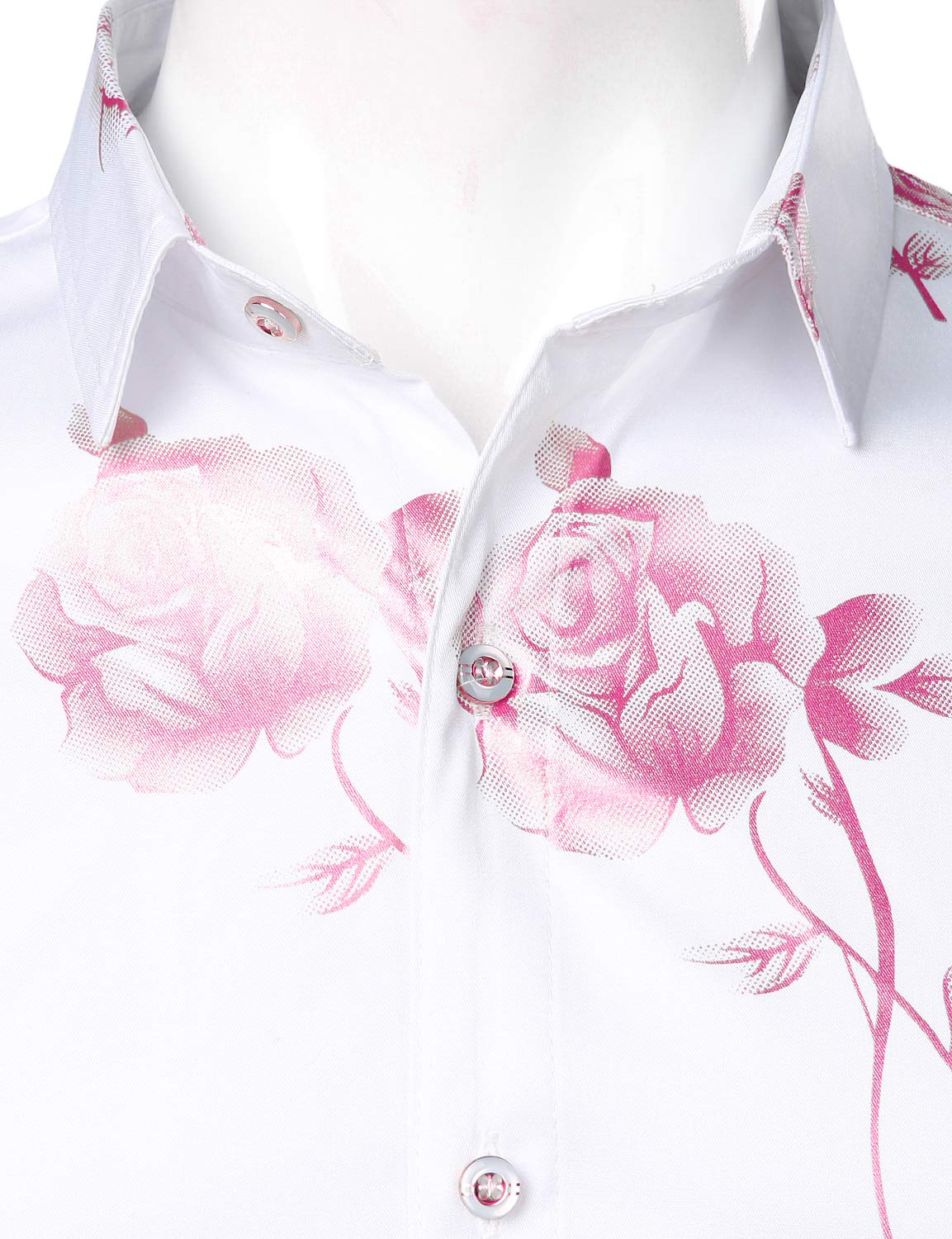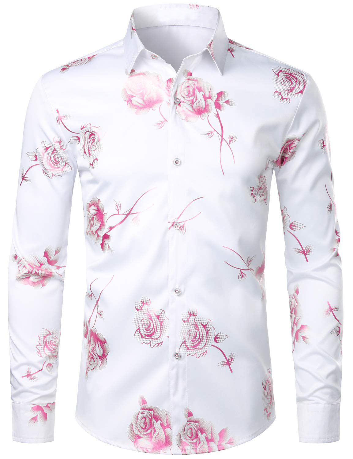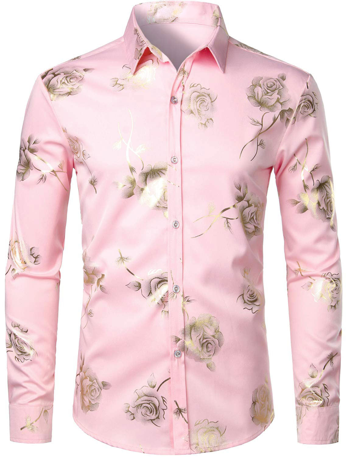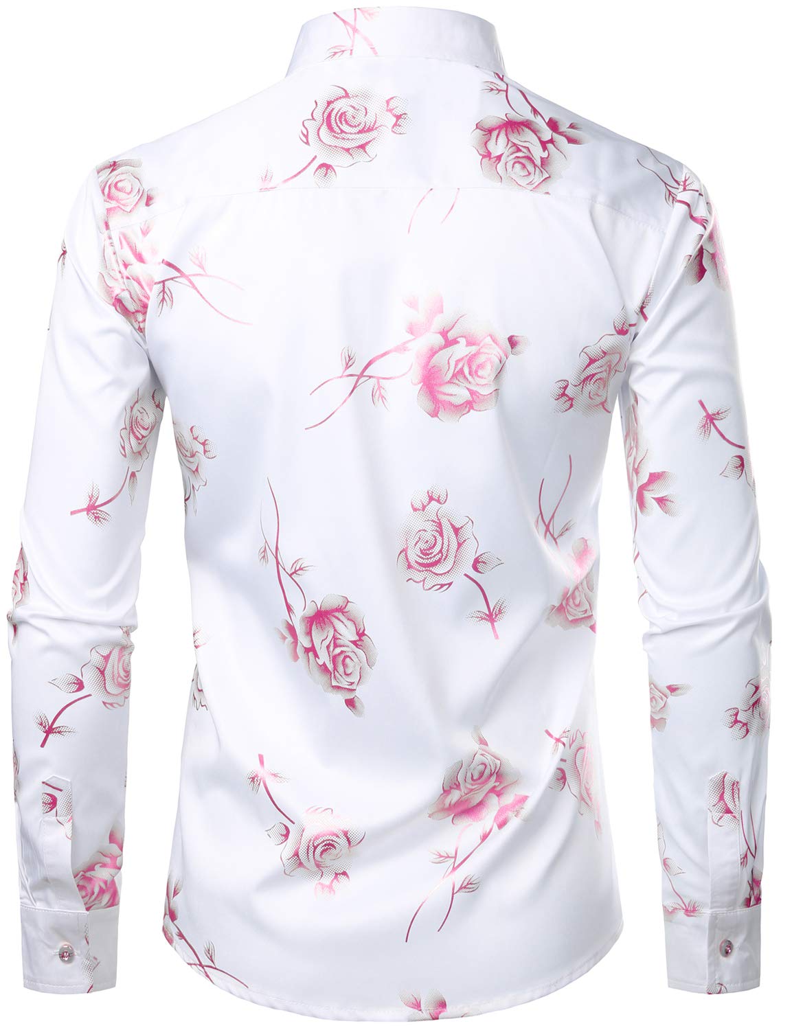 Herren Lässiges Langarmhemd Rosa Rosen-Blumendruck
