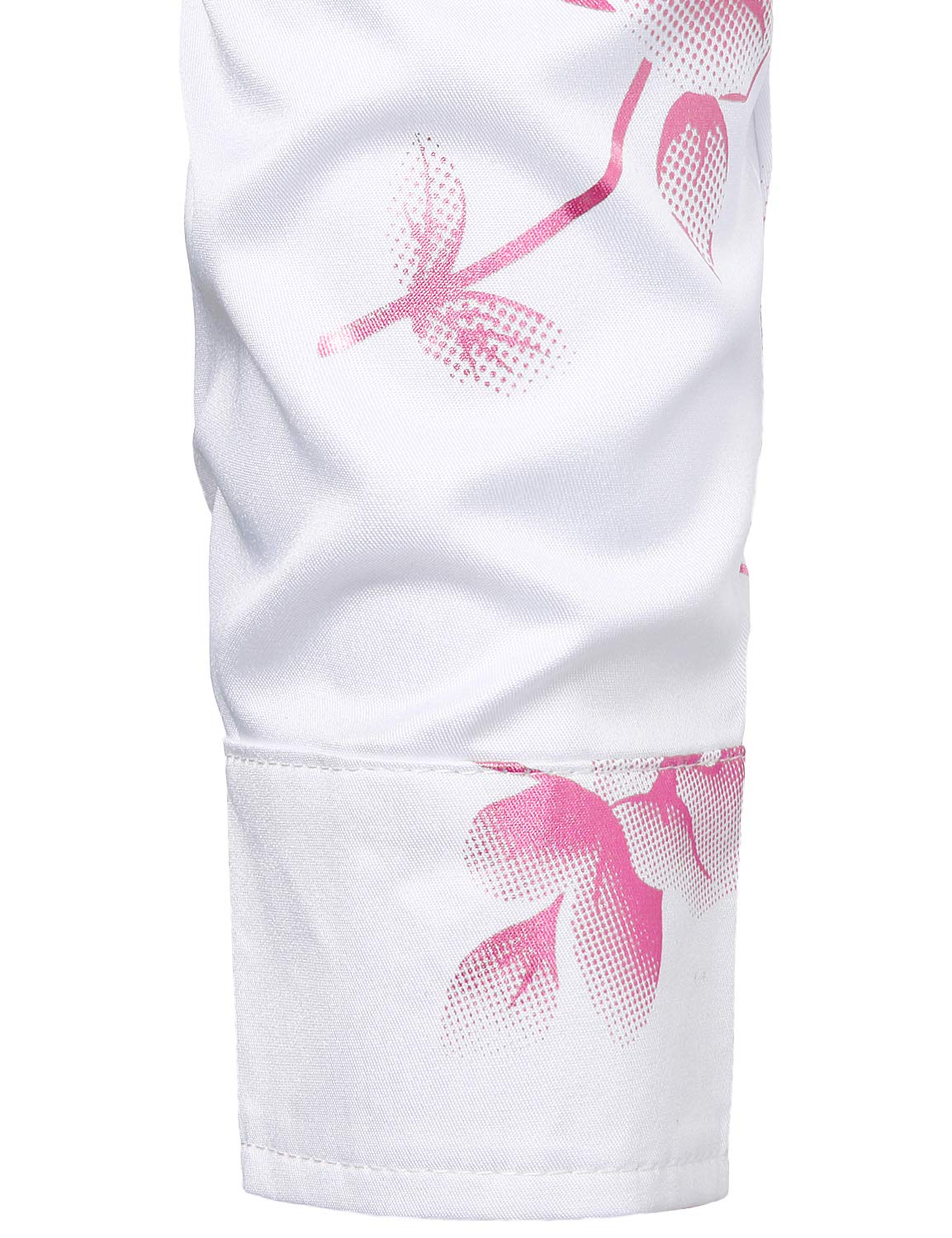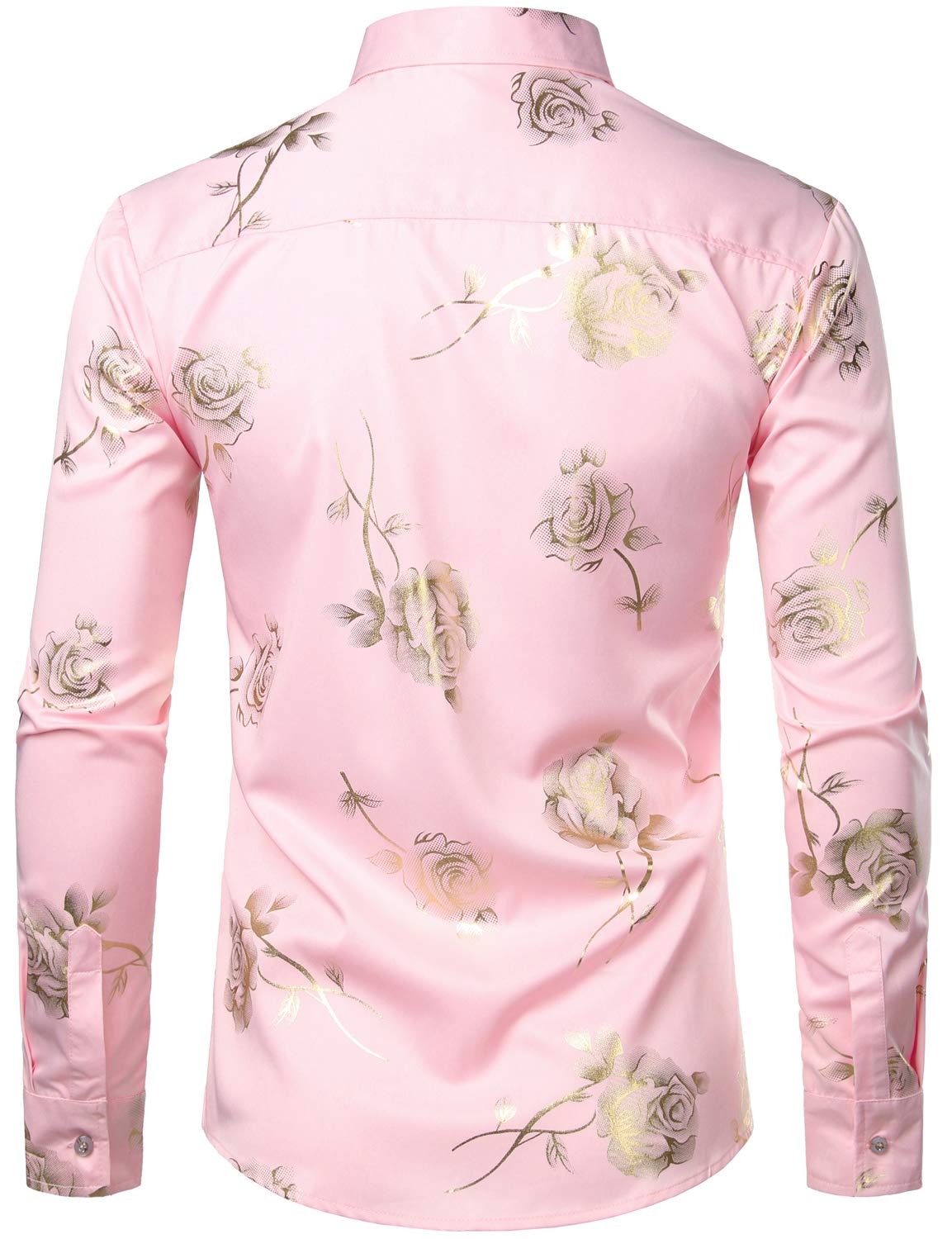 Herren Langärmliges Hemd mit Rosen-Blumendruck Rosa
