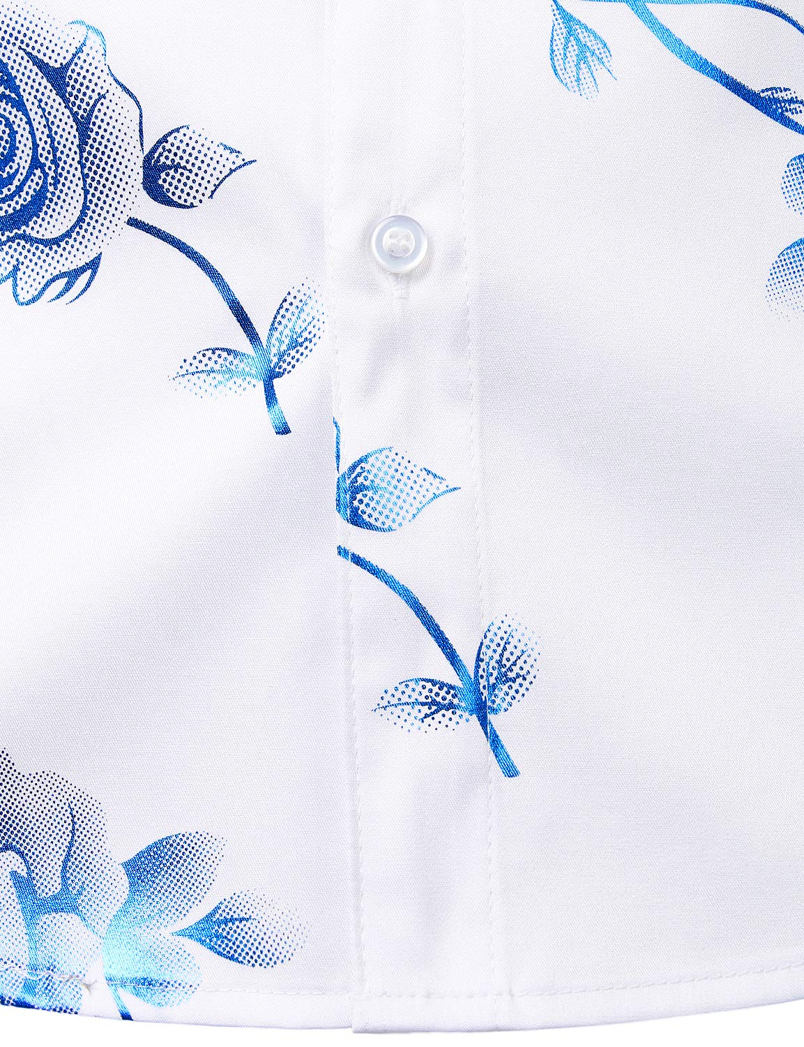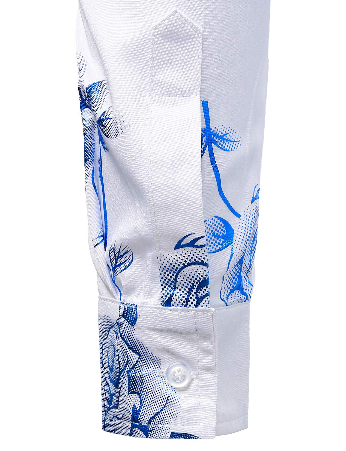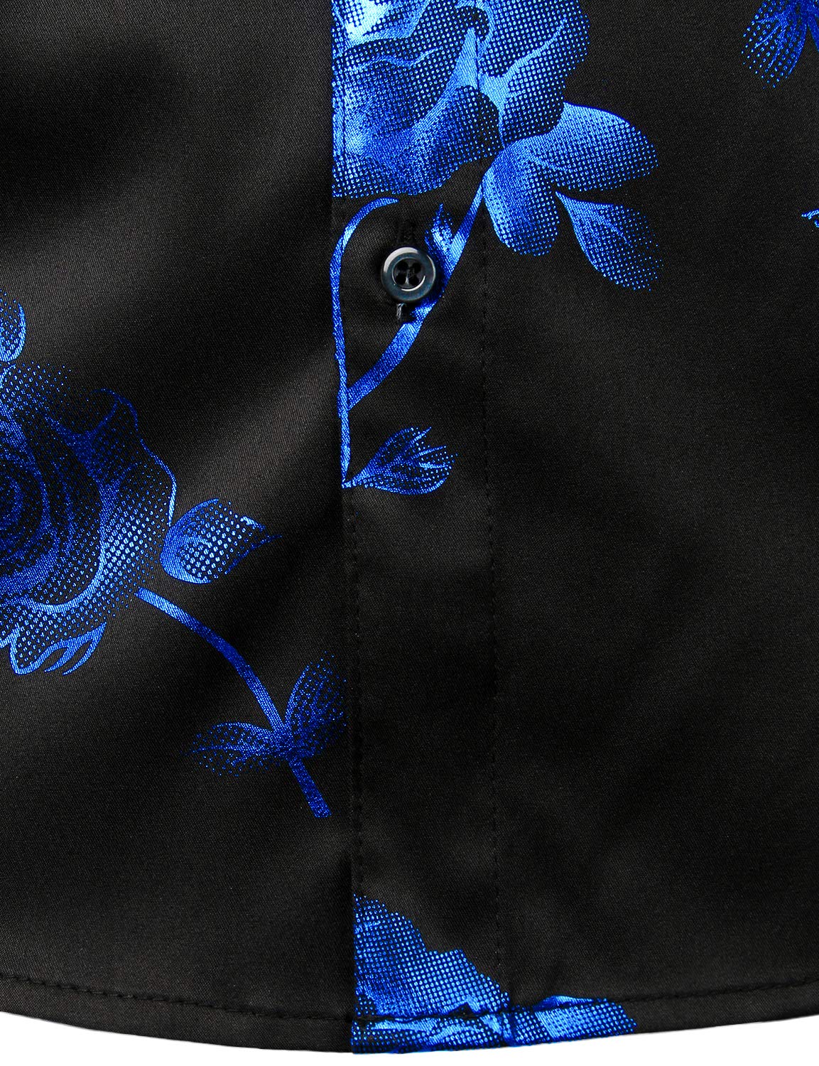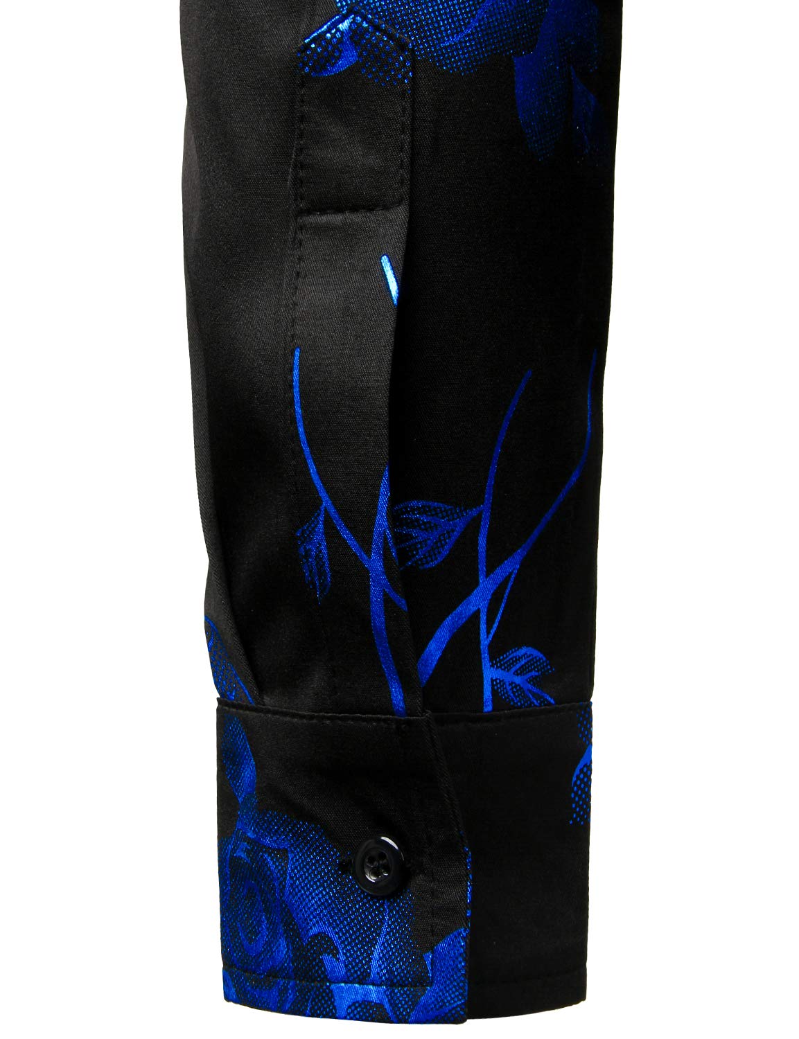 Herren Langärmliges Hemd mit Blumenmuster und blauen Rosen