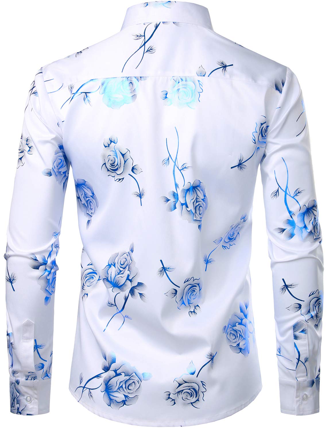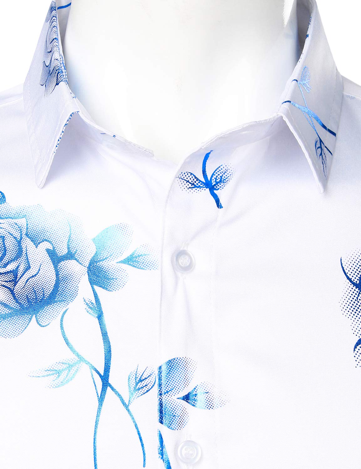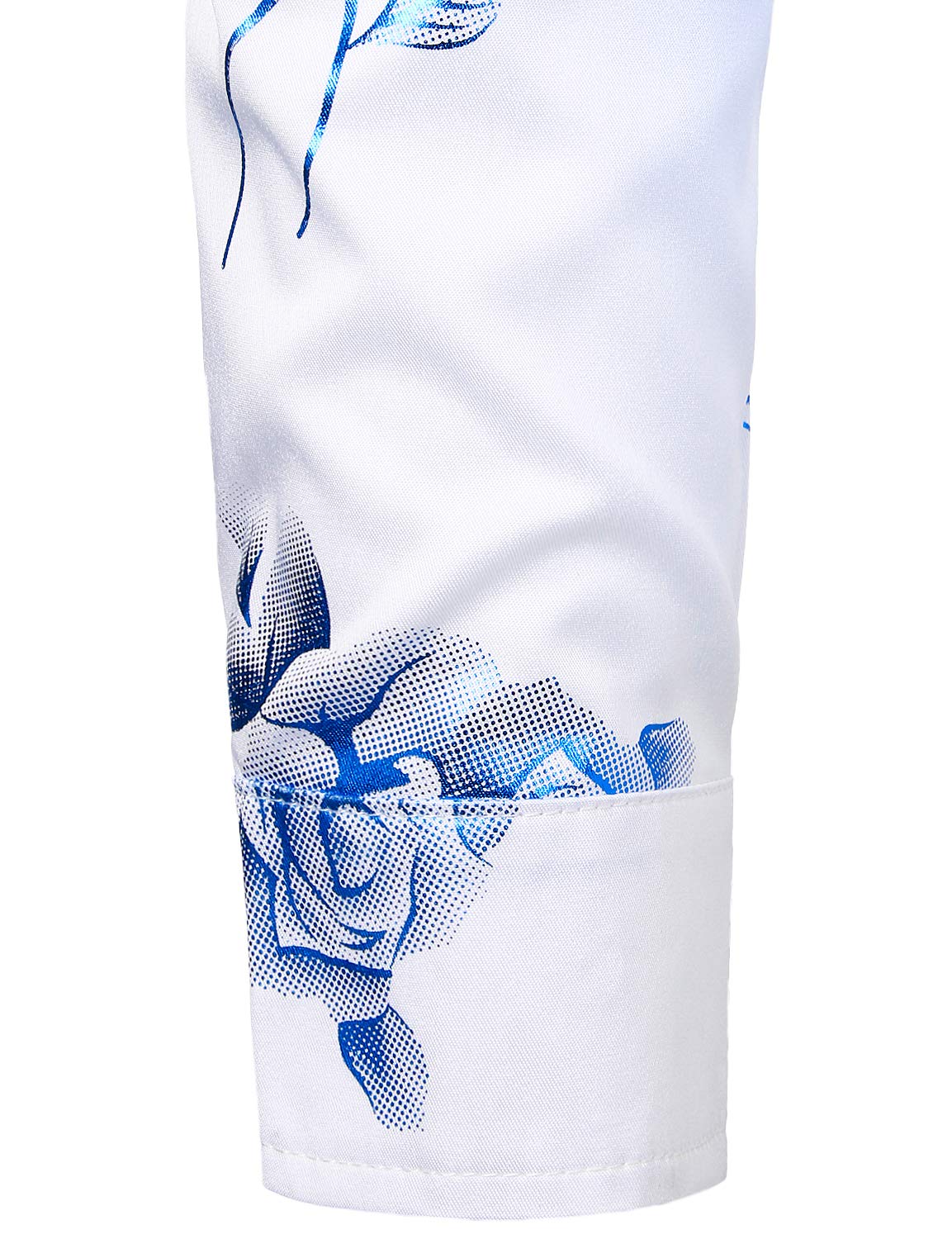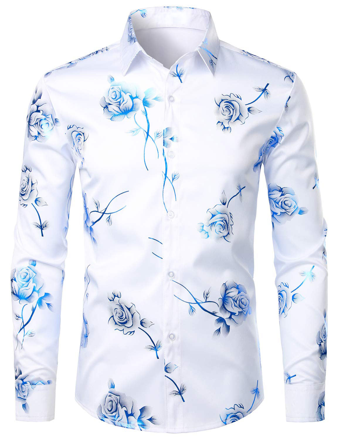 Herren Langärmliges Hemd mit Blumenmuster und blauen Rosen