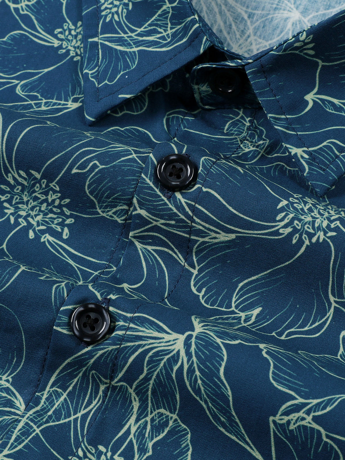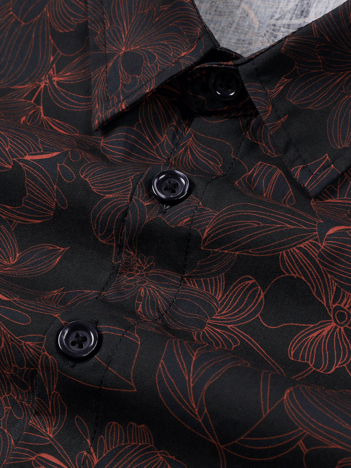 Herren Langarmhemd mit Blumenmuster und Knöpfen aus Baumwolle