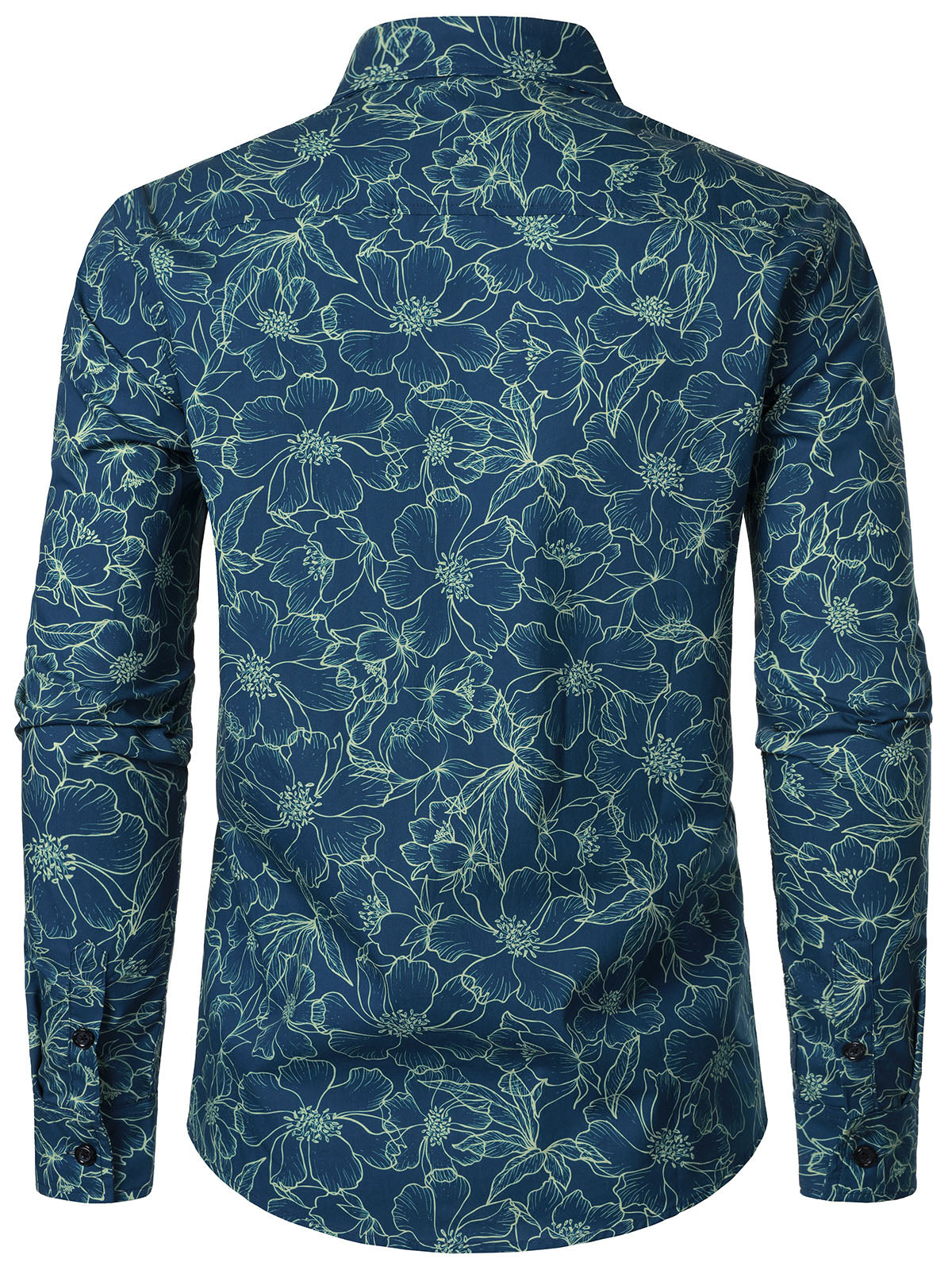 Herren Blau Baumwolle Blumenmuster Langarmhemd