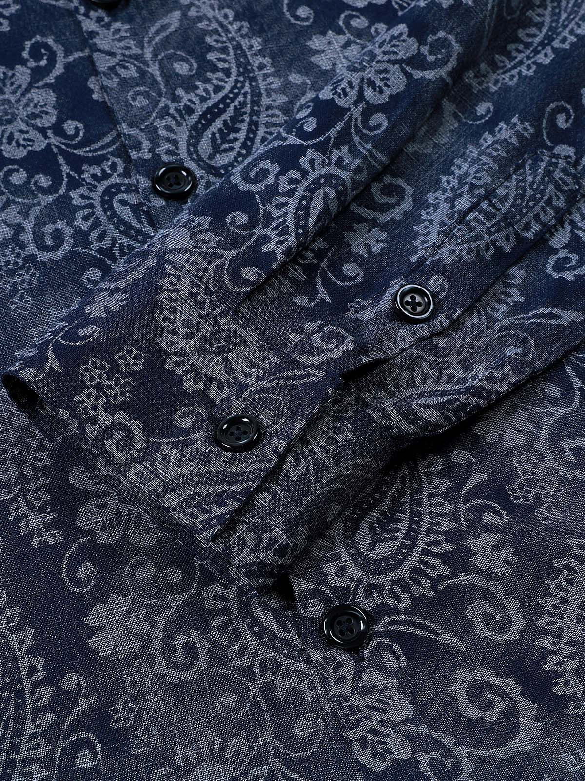 Herren Baumwolle Vintage Paisley-Blumenmuster Langarmhemd