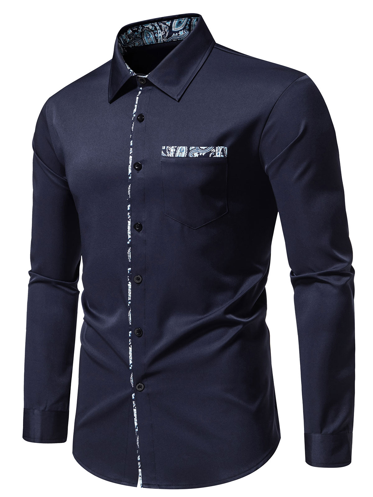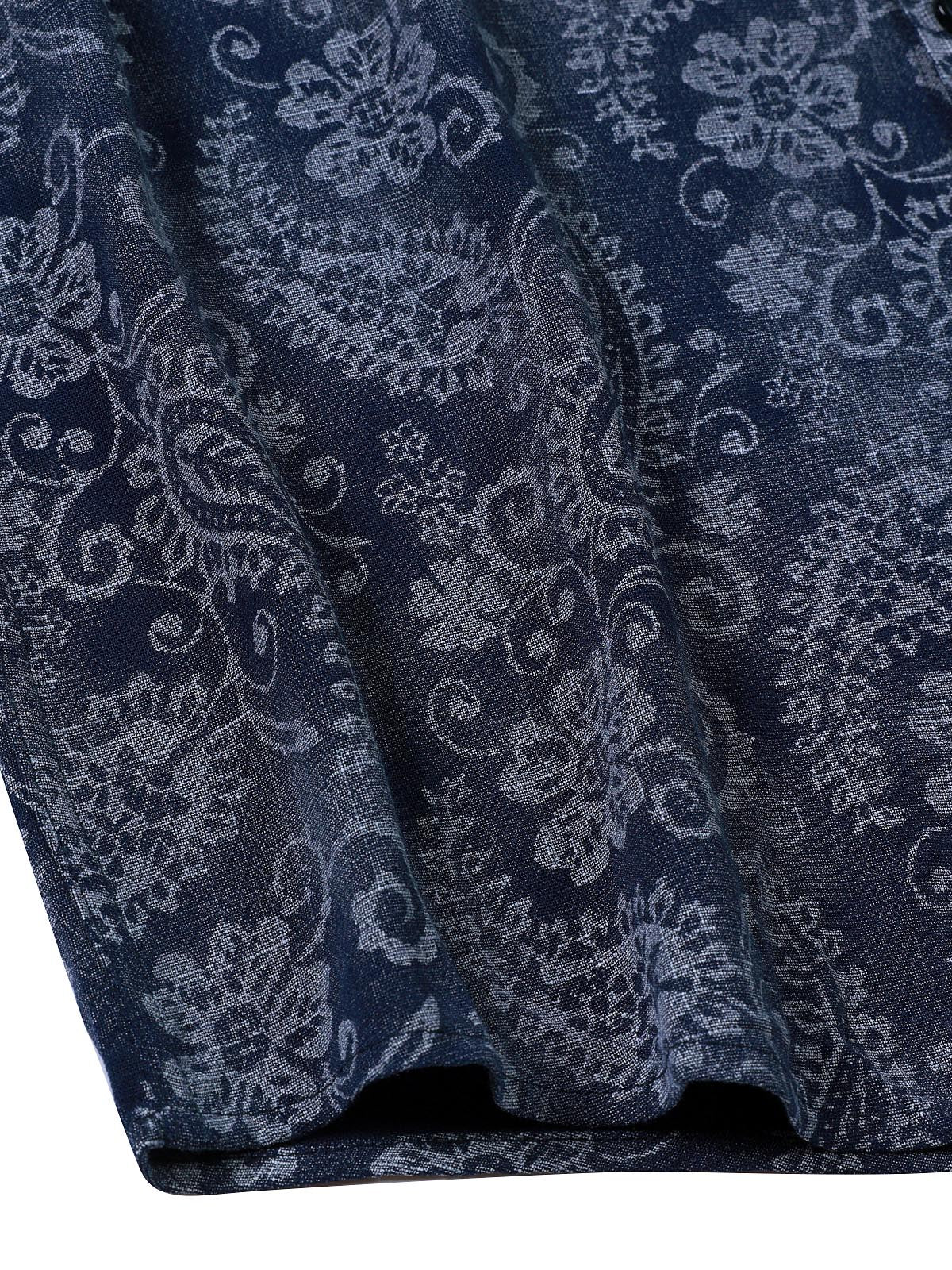 Herren Paisley Geblümt Baumwolle Langarm Hemd Blau