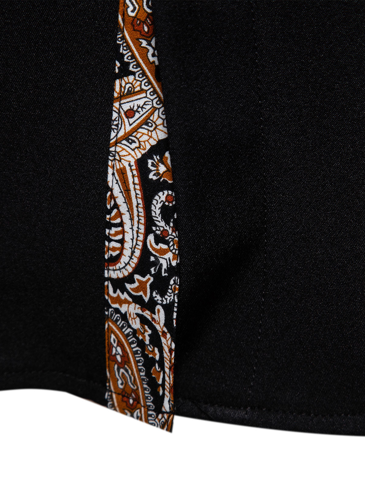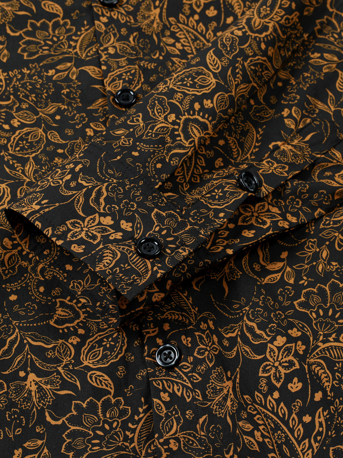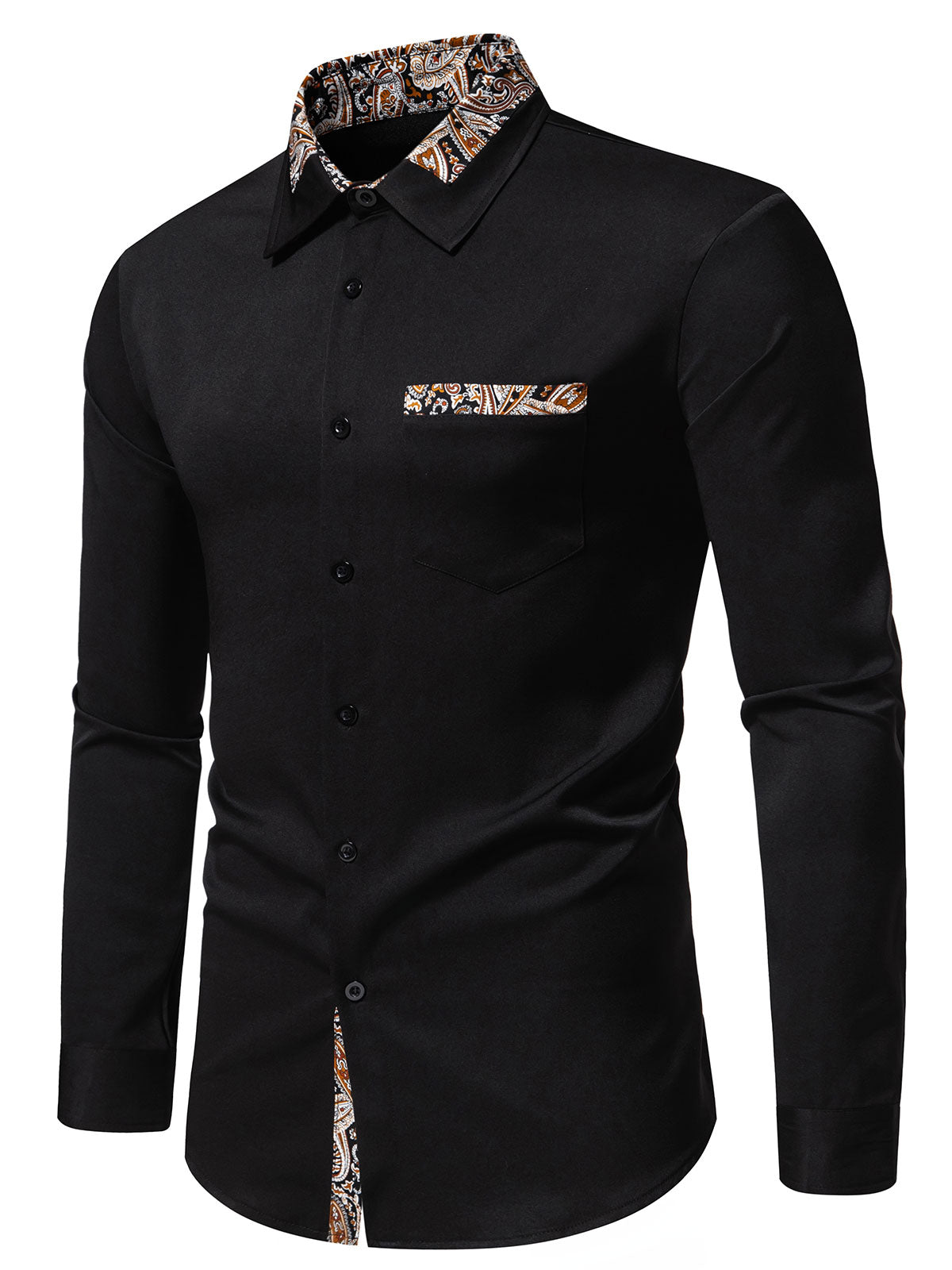 Herren Paisley Geblümt Langarm Hemd Schwarz