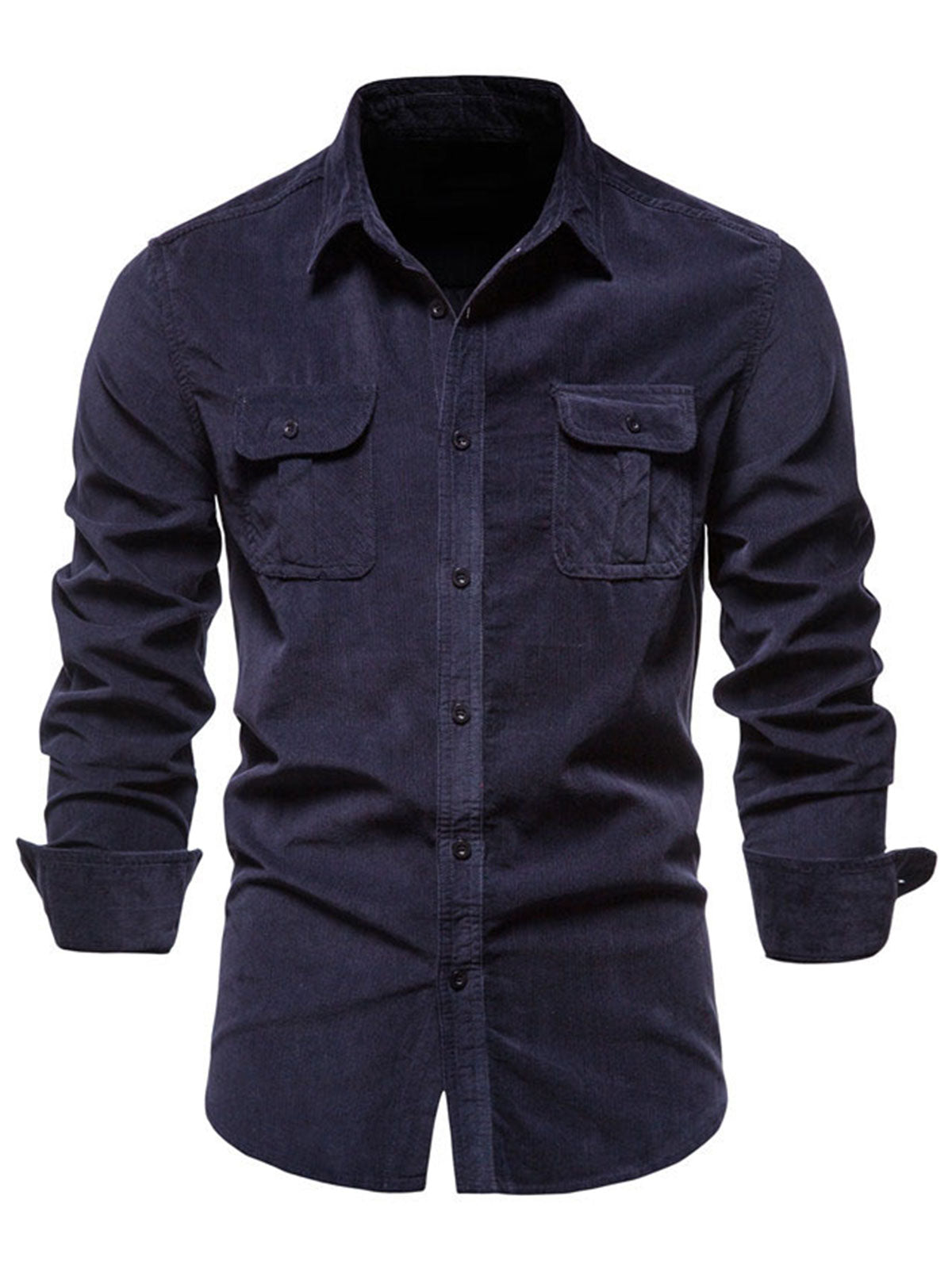 Herren Casual Langarmhemd Marineblau
