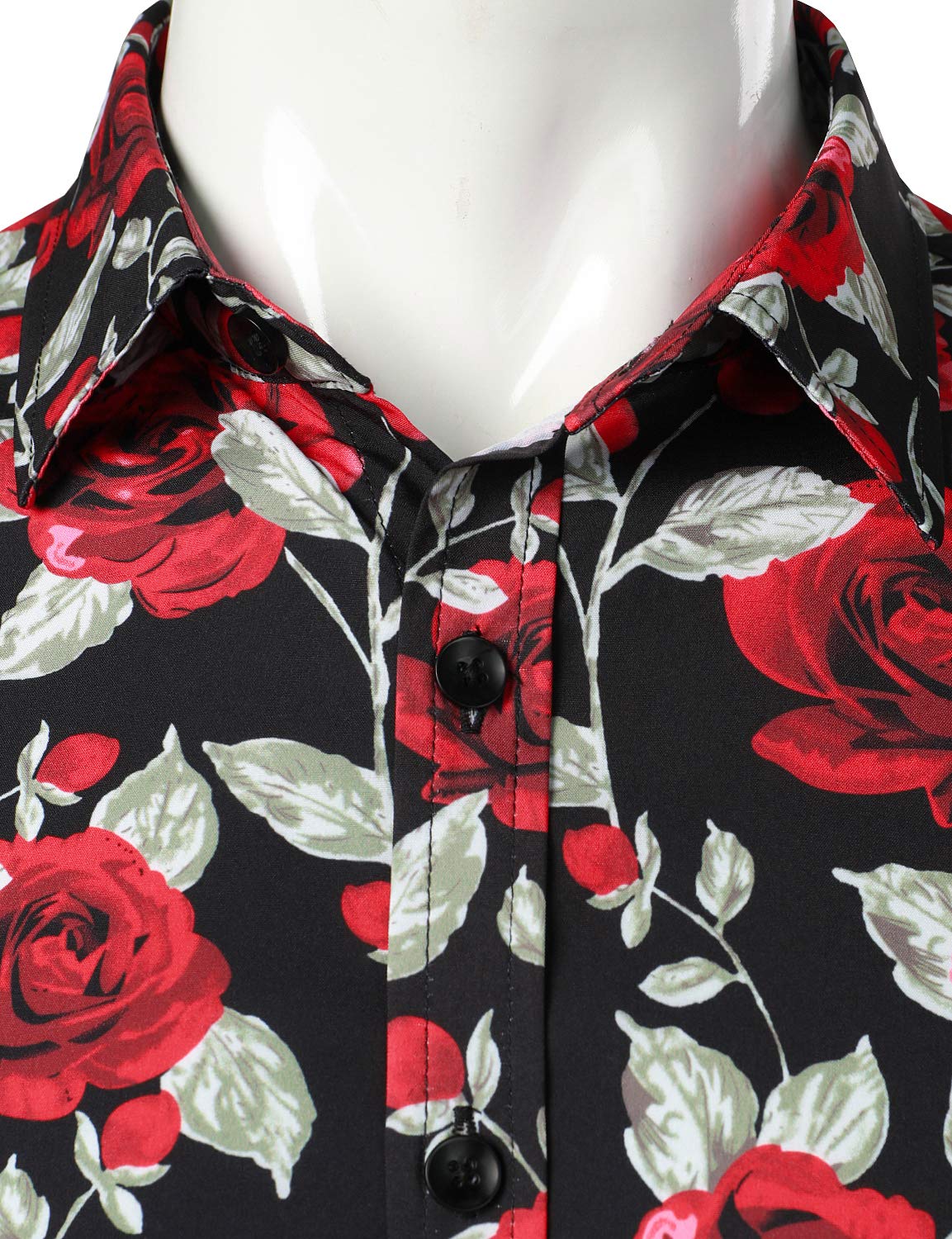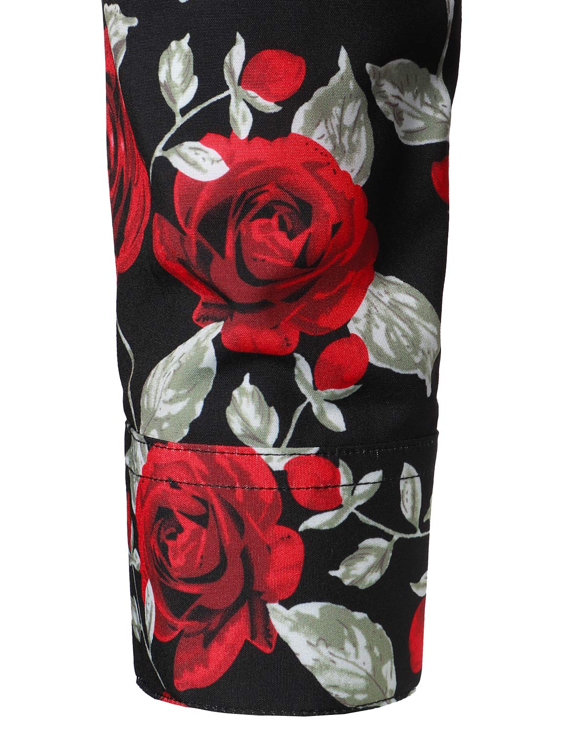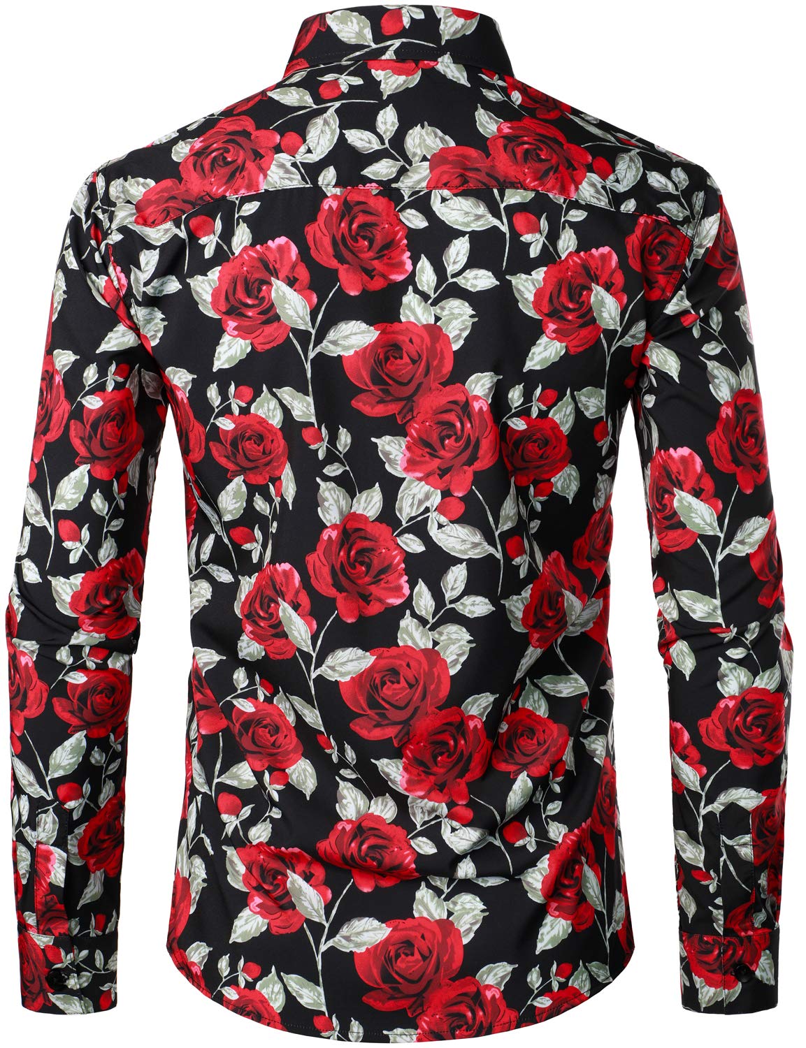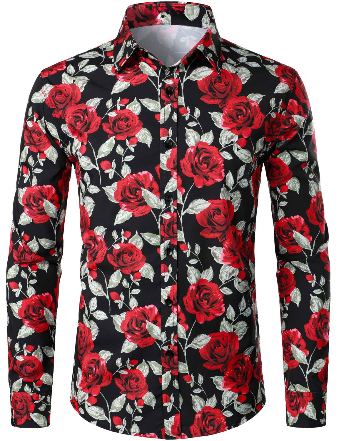 Herren-Langarmhemd mit Rosen-Blumenmuster