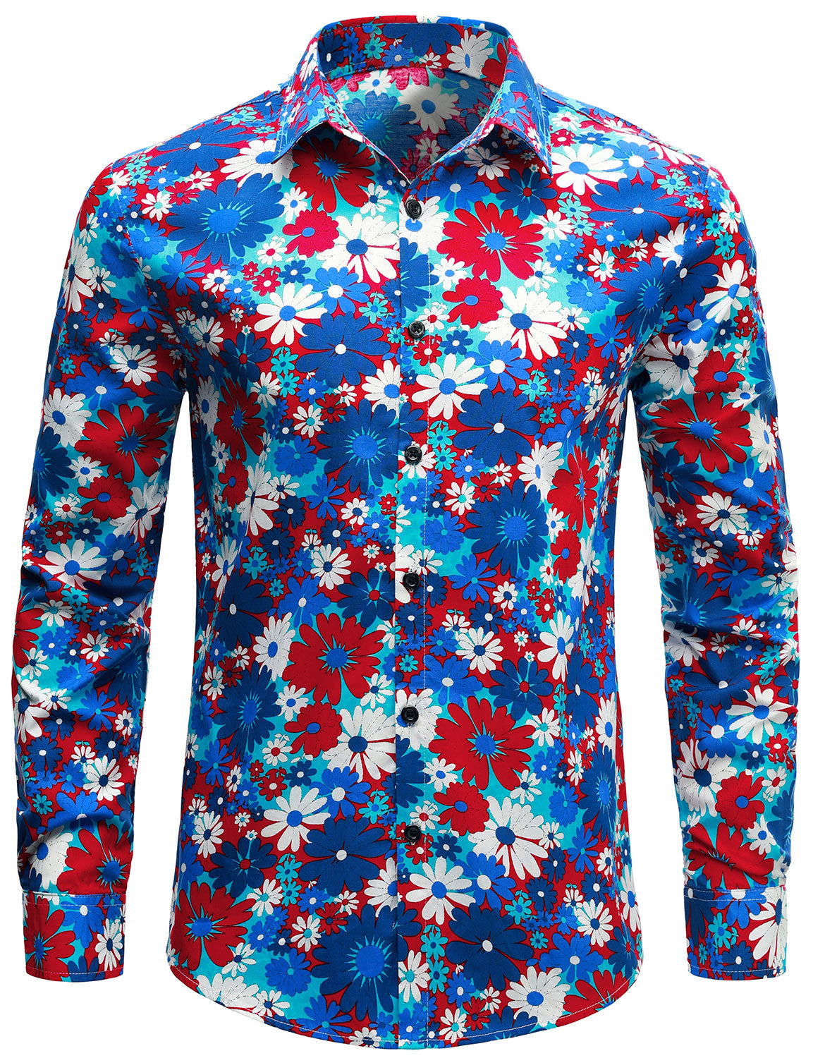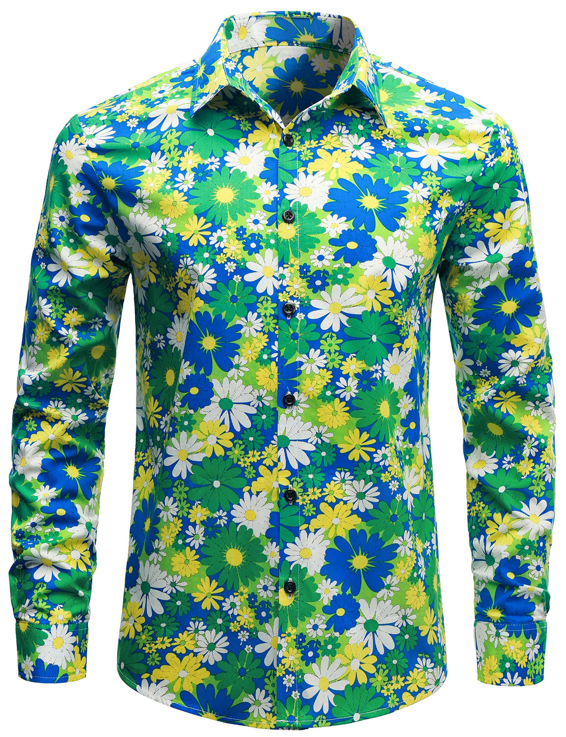 Herren Langärmliges Baumwollhemd mit Vintage-Blumenmuster