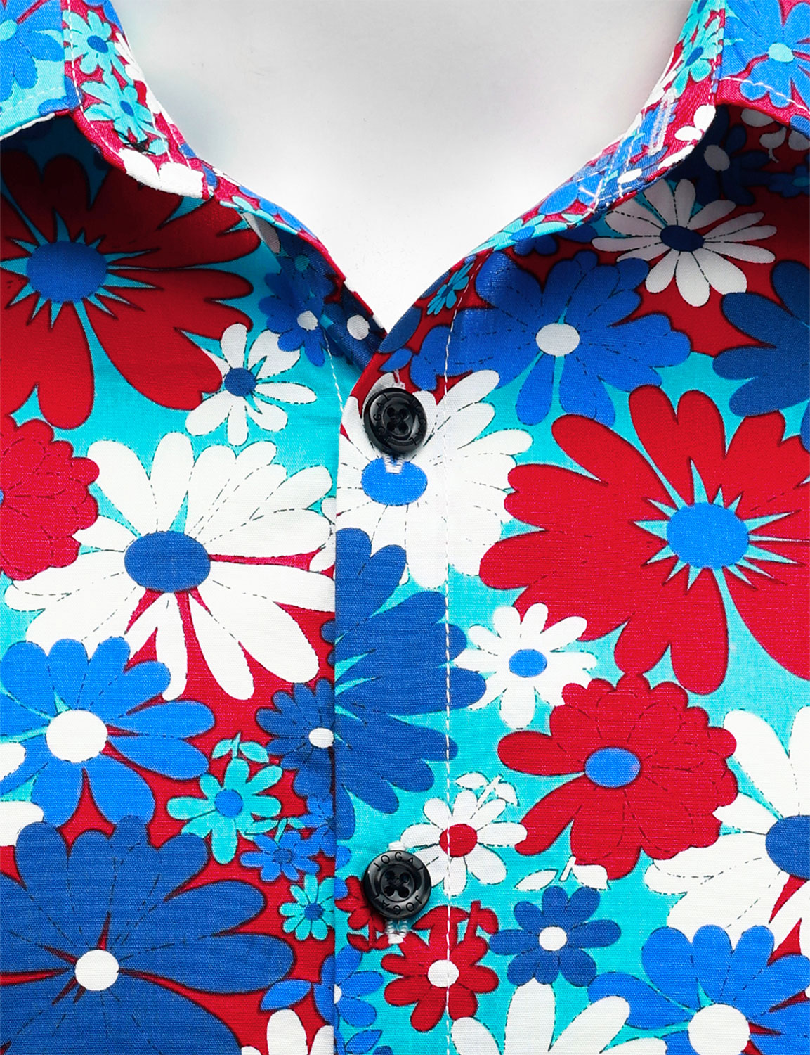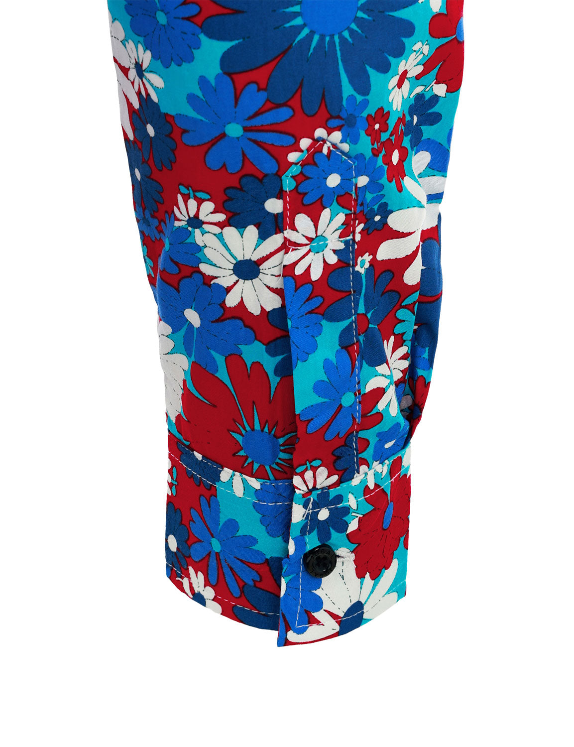 Herren Langärmliges Hemd mit Blumenmuster und blauen Rosen