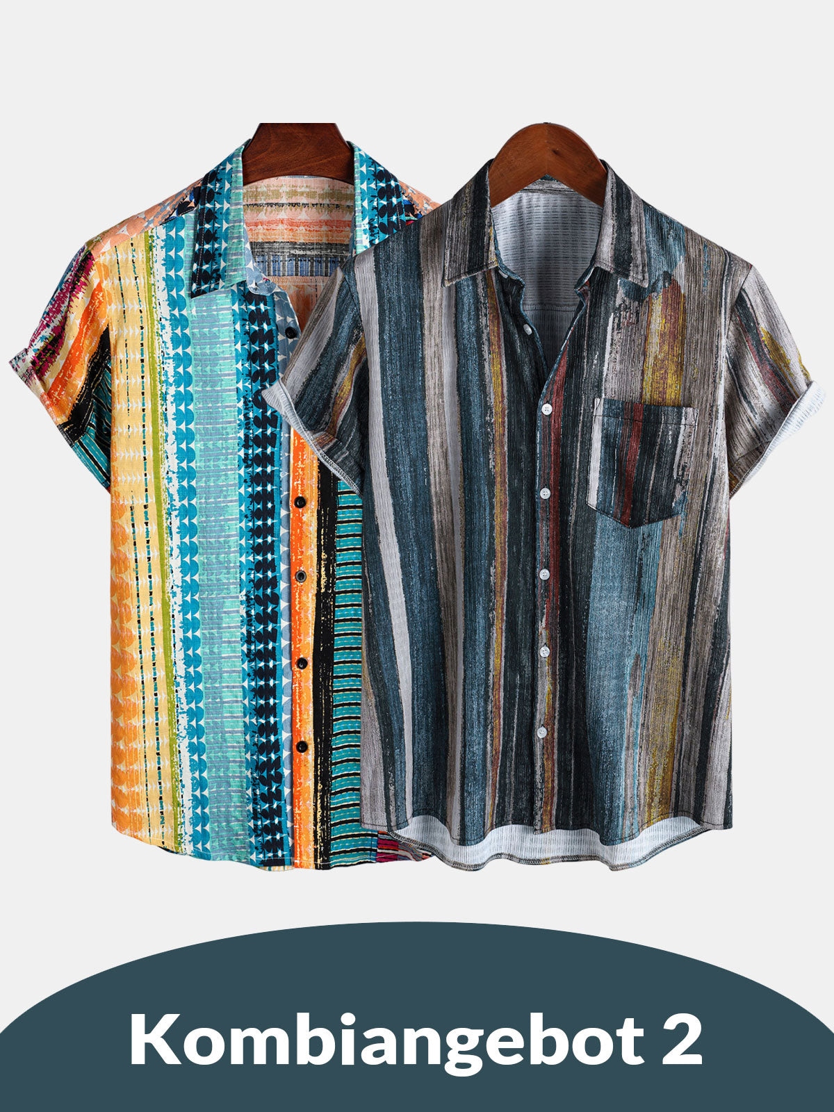 Kombiangebot 2 | Herren Bunt gestreifte Kurzarmhemden
