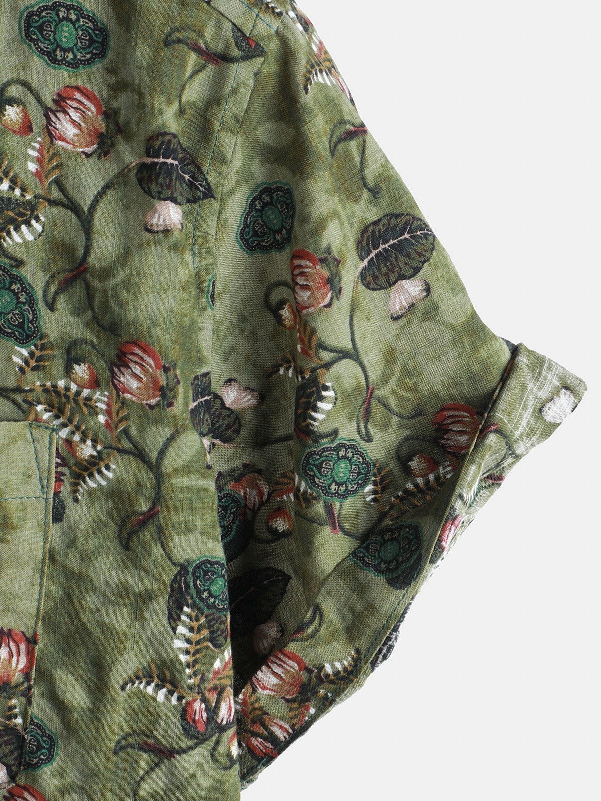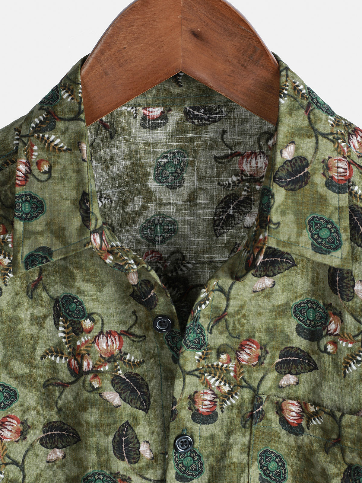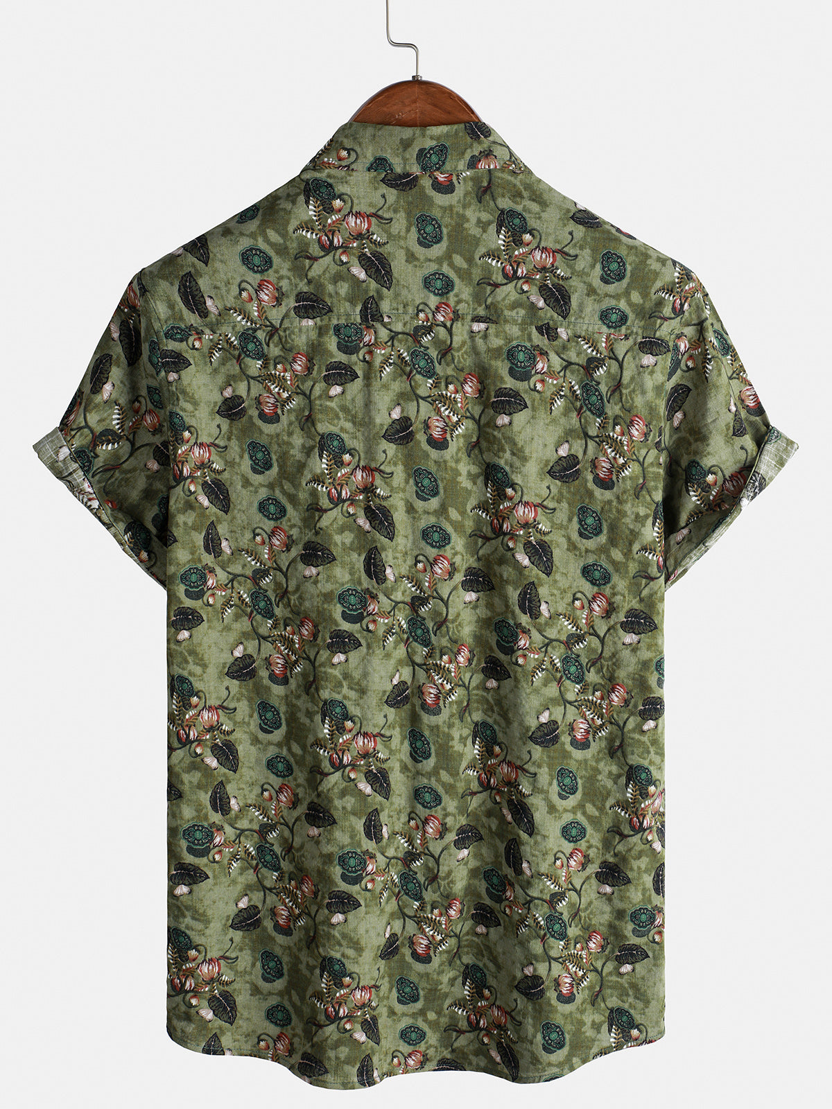 Herren Grünes Kurzarmhemd aus Baumwolle mit Blumenmuster