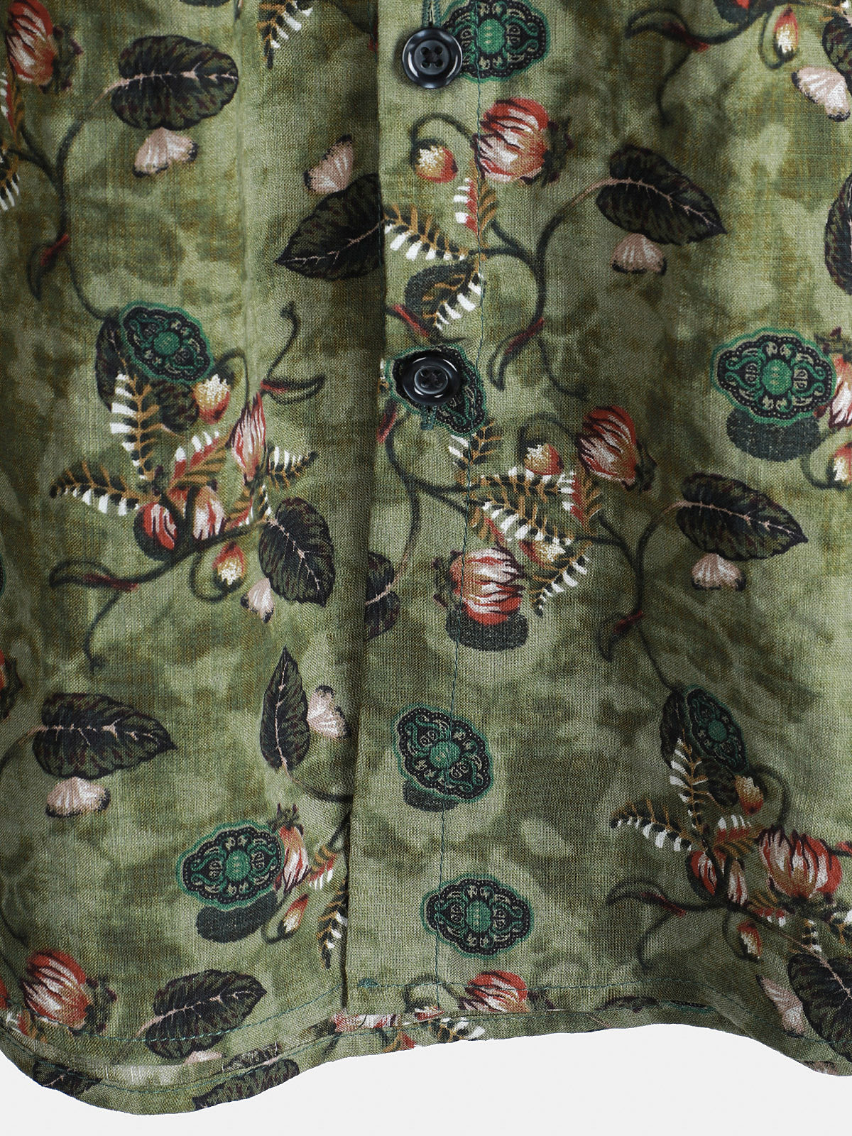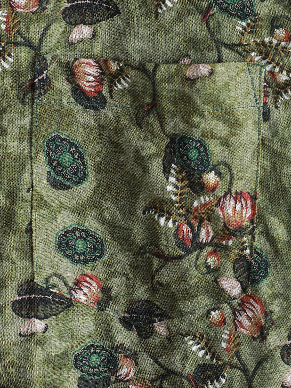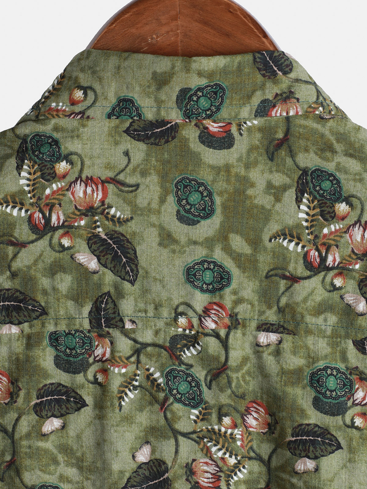 Herren Grünes Kurzarmhemd aus Baumwolle mit Blumenmuster