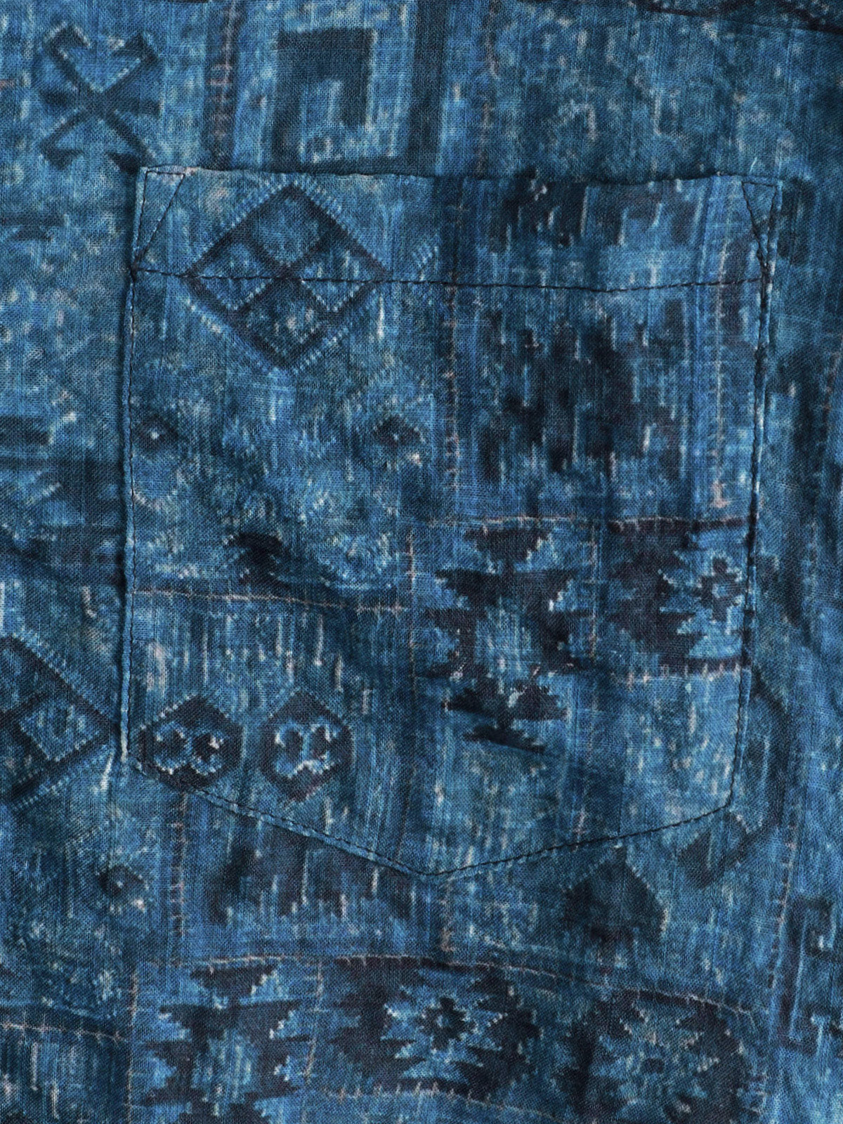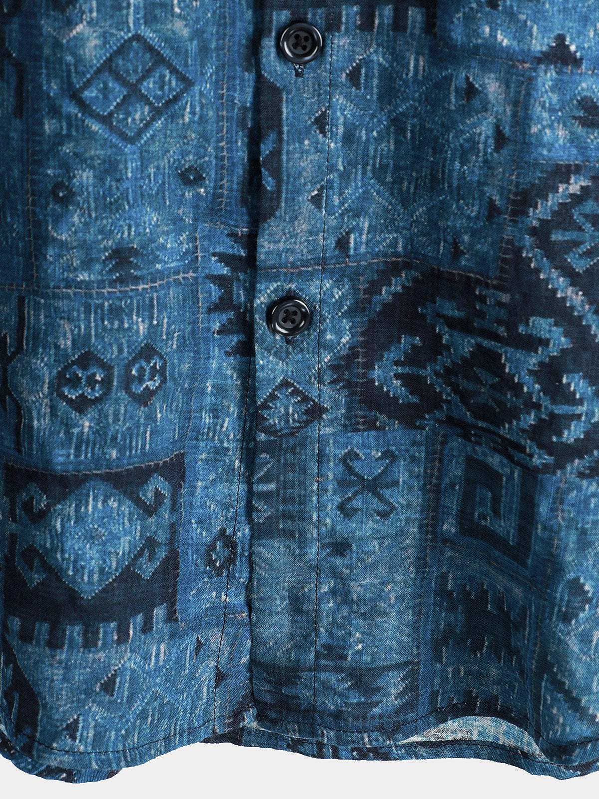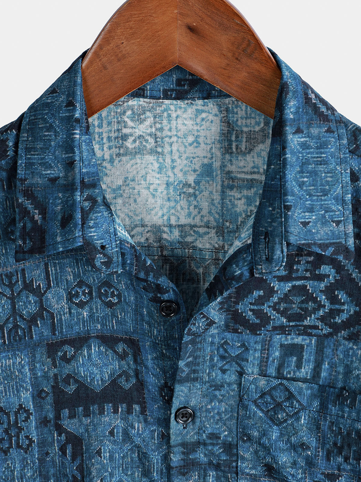 Herren Blaues Urlaubs-Kurzarmhemd mit Retro-Print