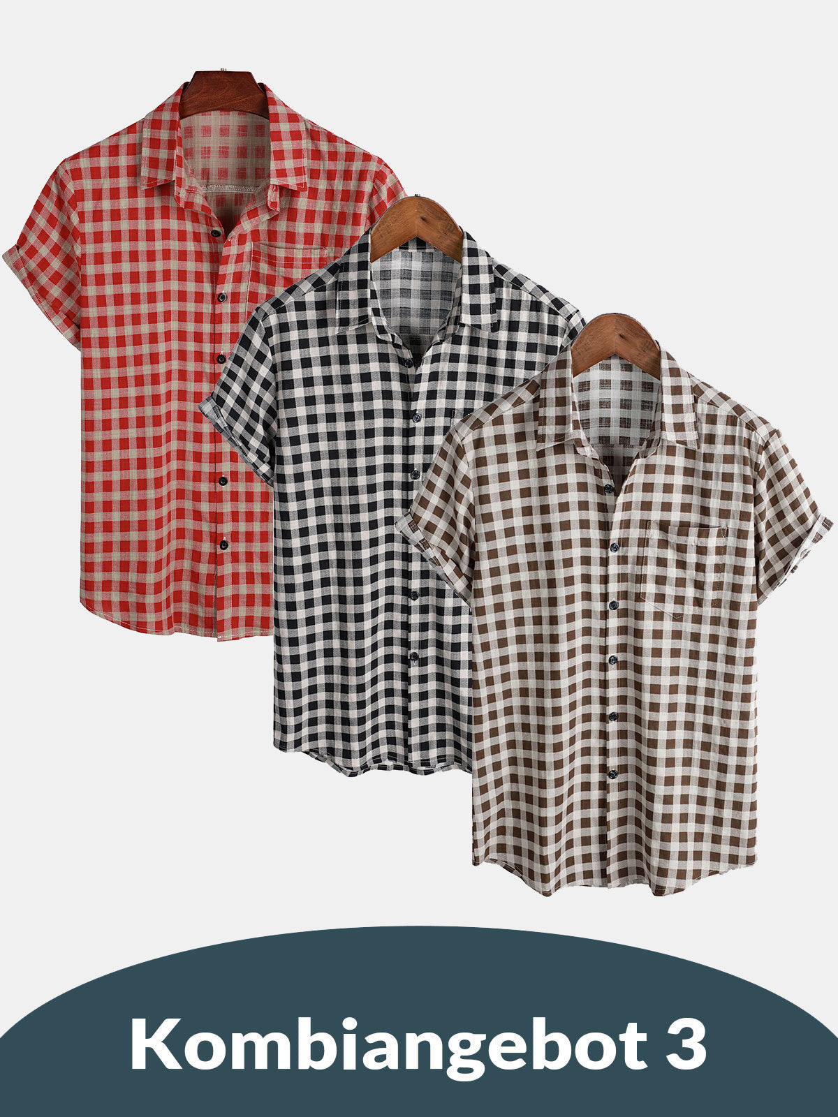 Kombiangebot 3 | Herrenhemden aus Baumwolle mit Karomuster und Tasche