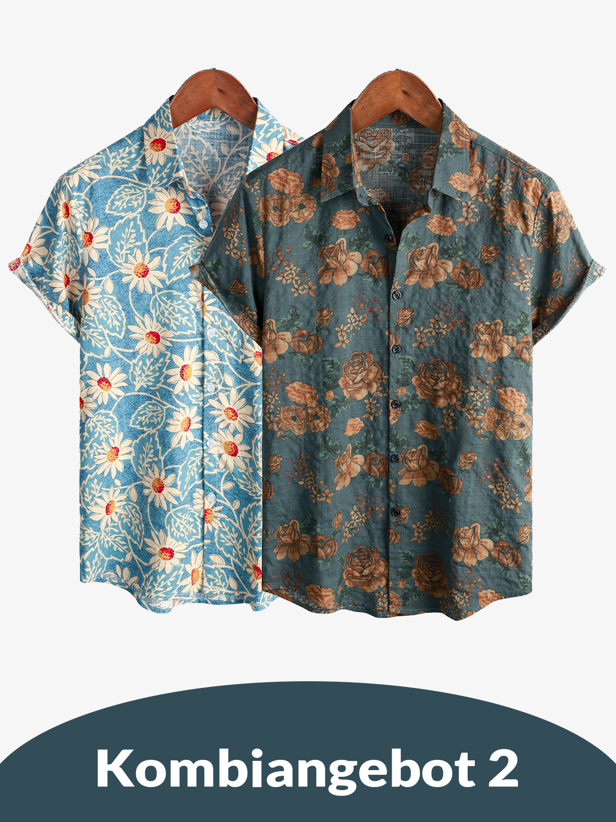 Kombiangebot 2 | Herren Retro Urlaub Kurzarm Hemd