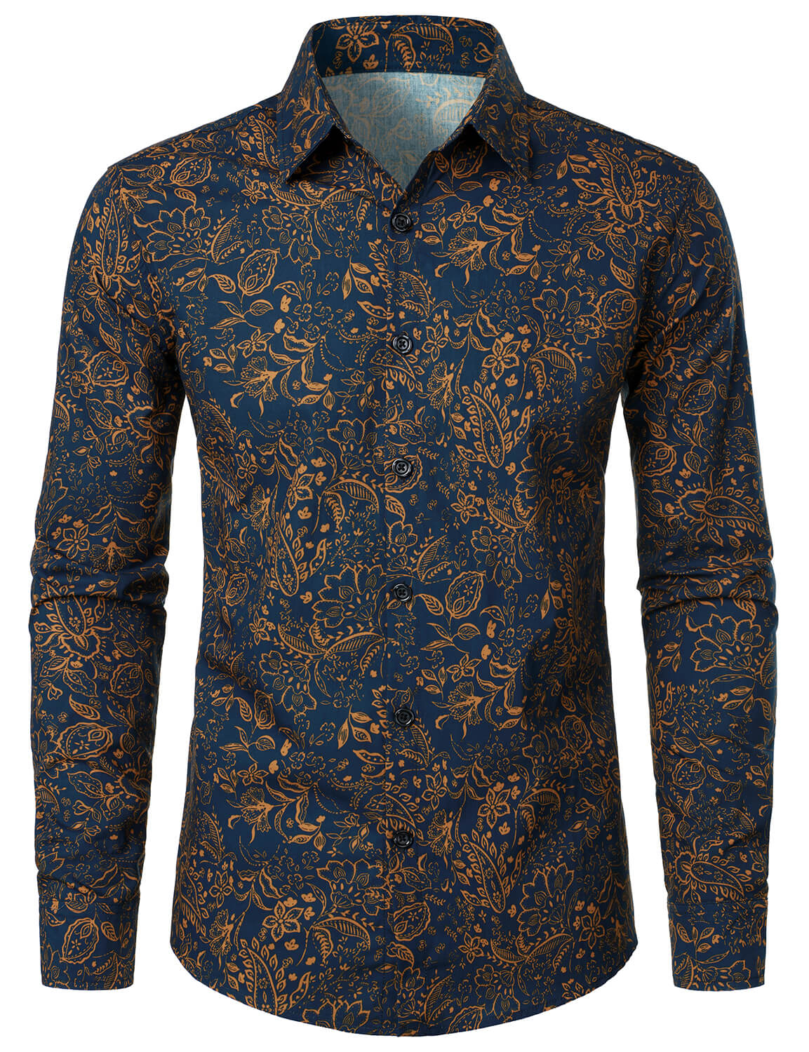 Kombiangebot 2 | Herren Langarmhemd mit Vintage-Blumenmuster