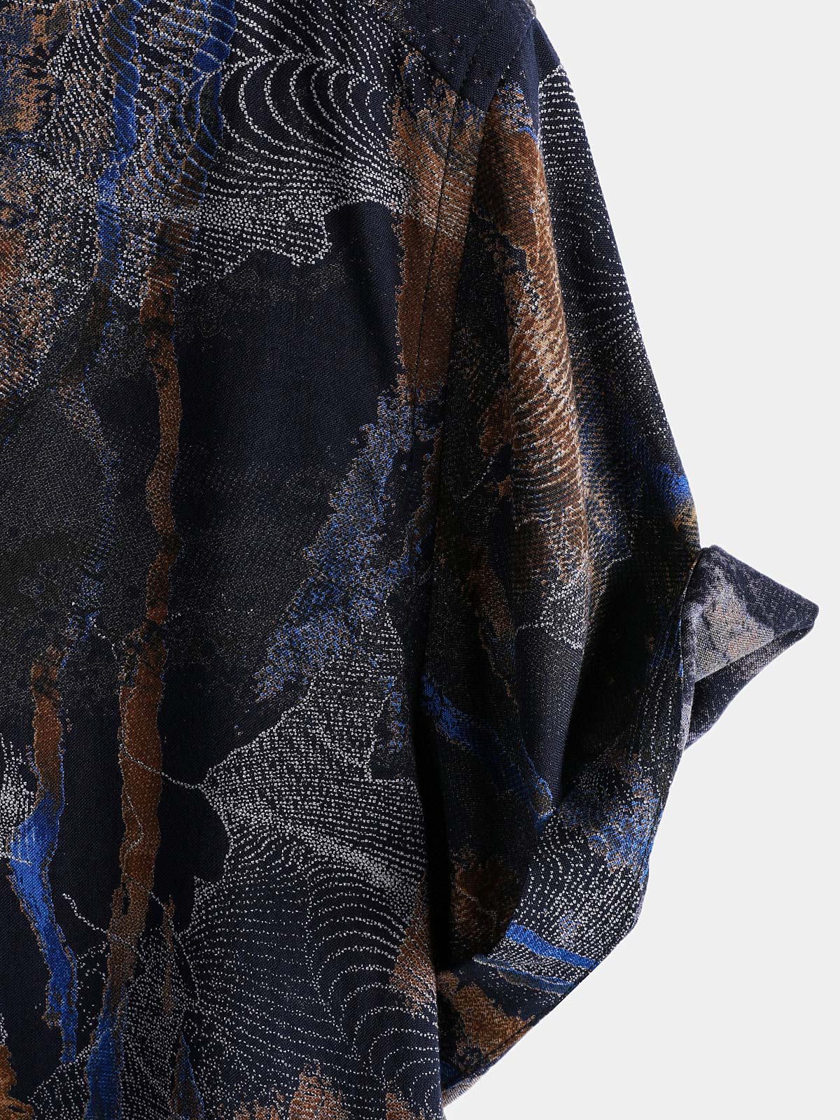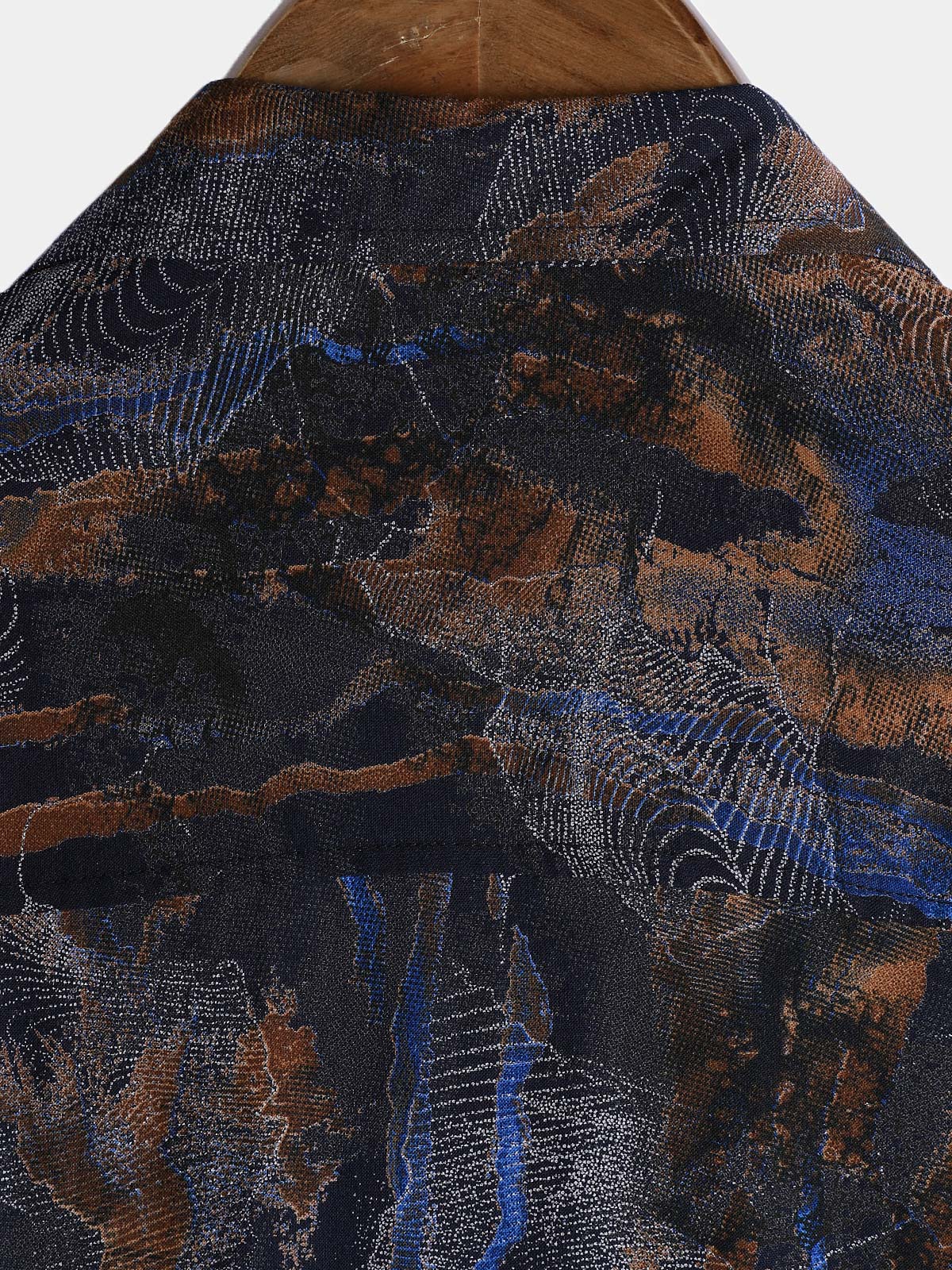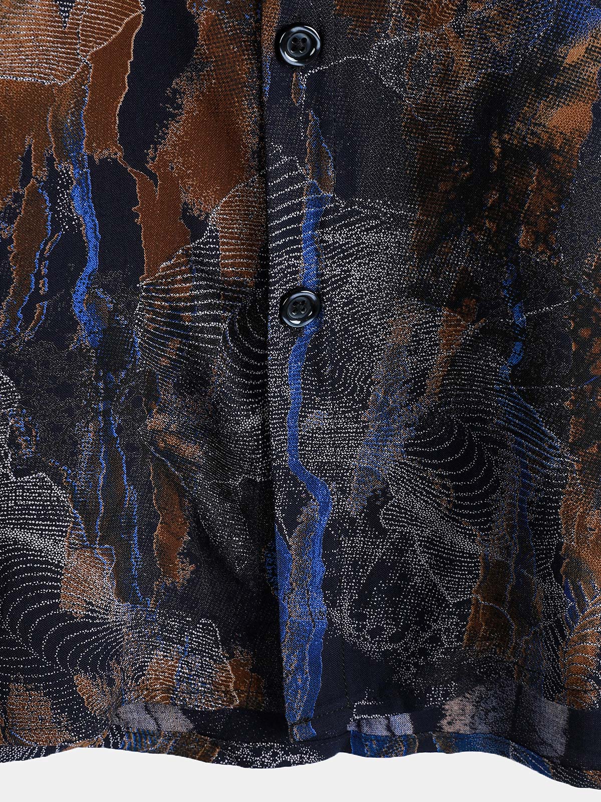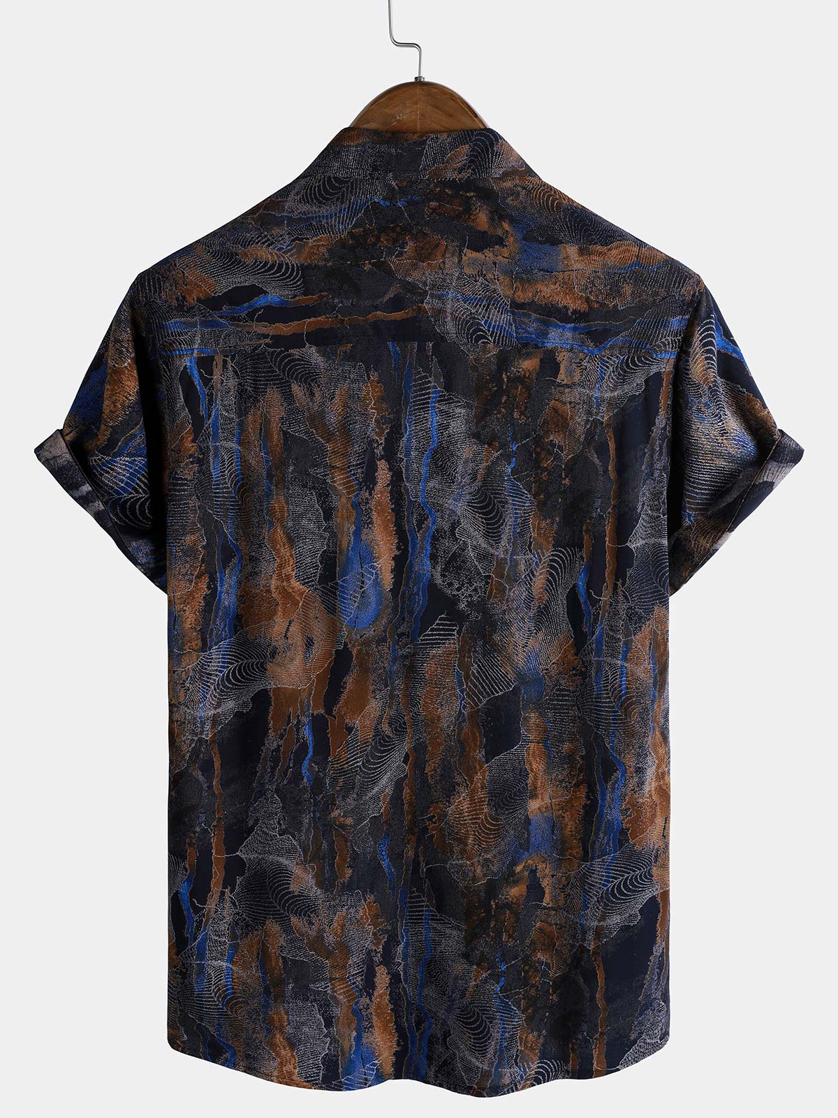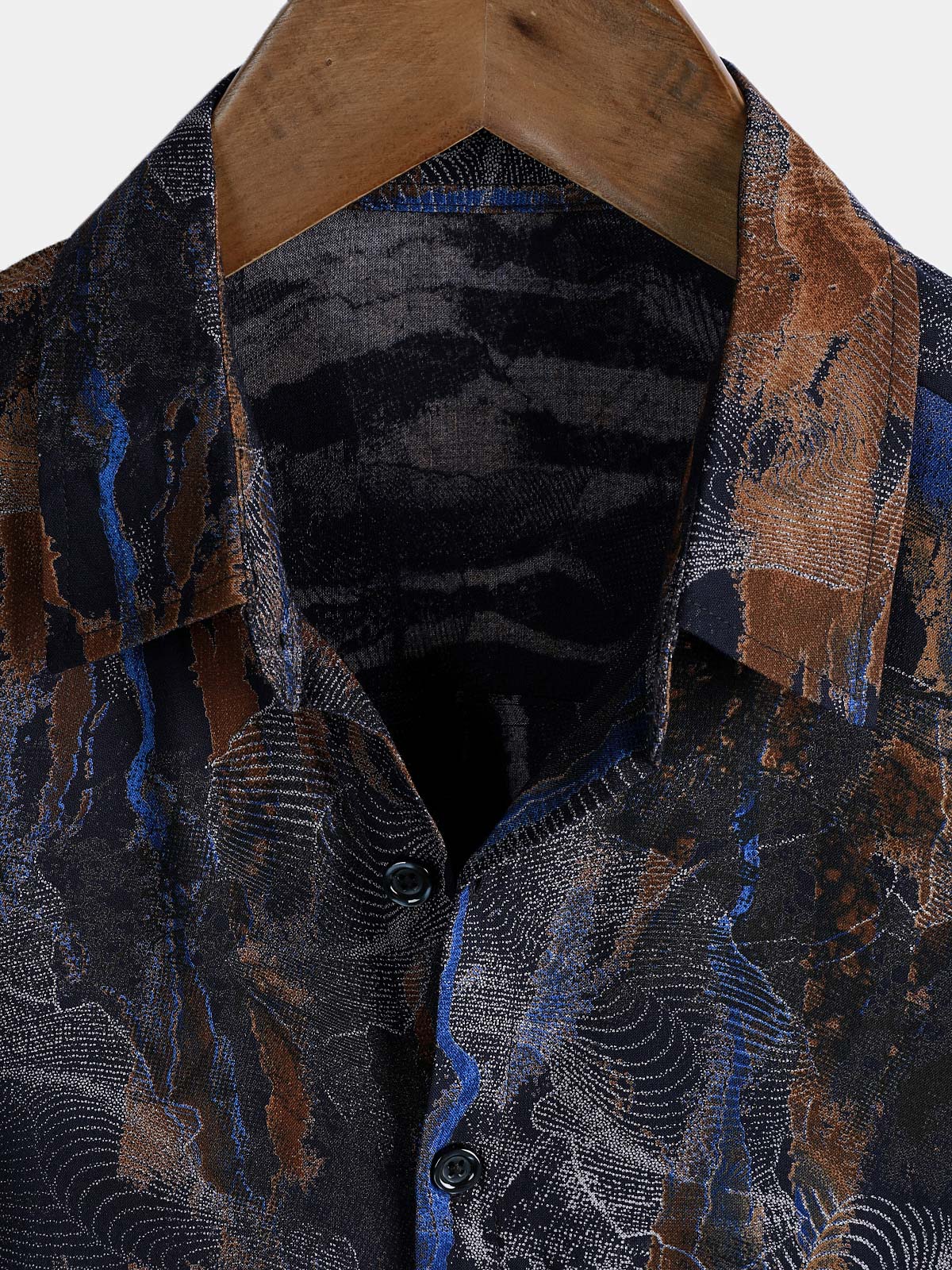 Herren Lässiges Retro-Blumenhemd Schwarz