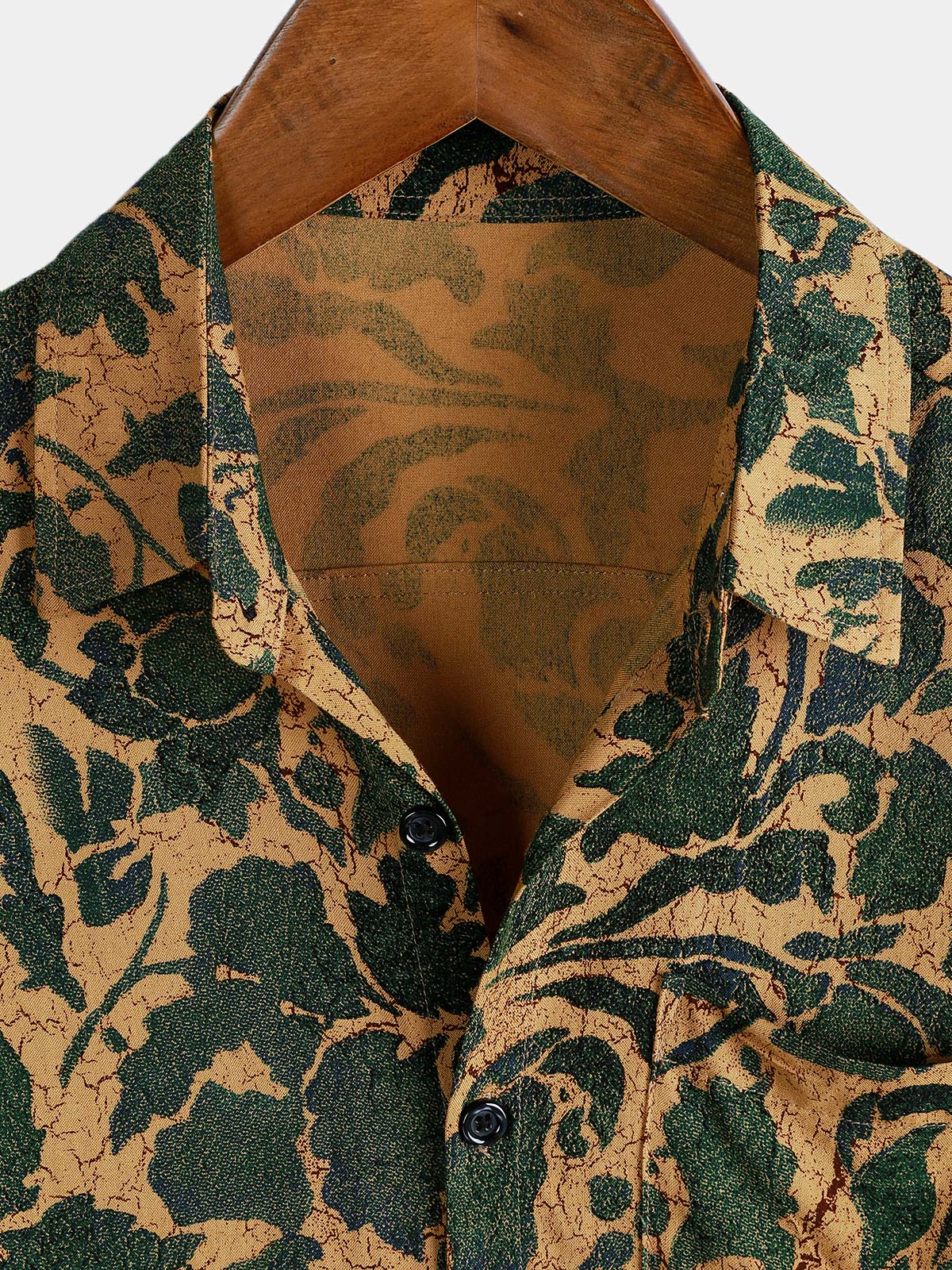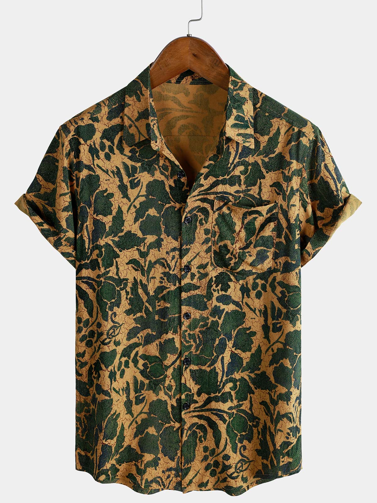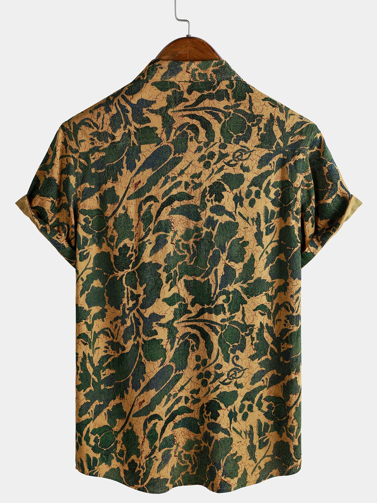 Herren Freizeit Kurzarm Retro Blumenmuster Hemd