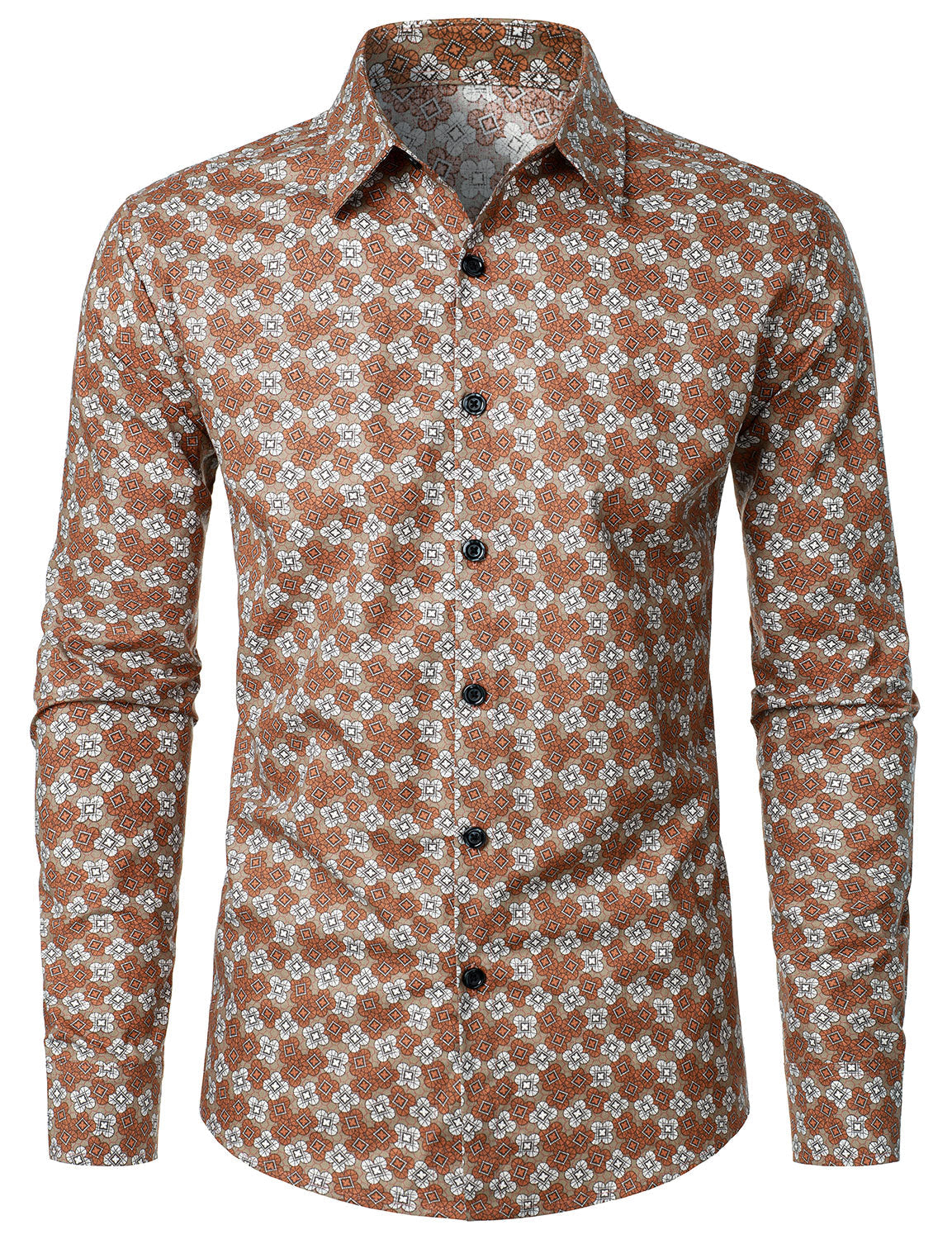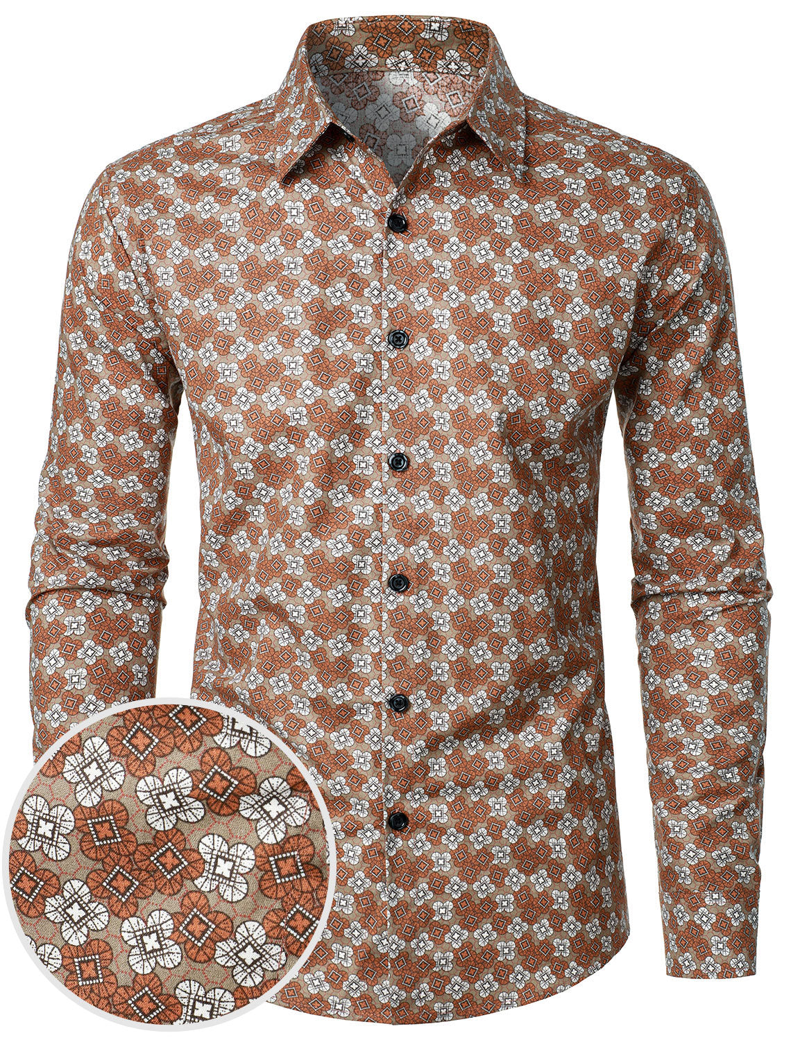 Herren Langarmhemd aus Baumwolle mit Blumenprint im Vintage-Stil